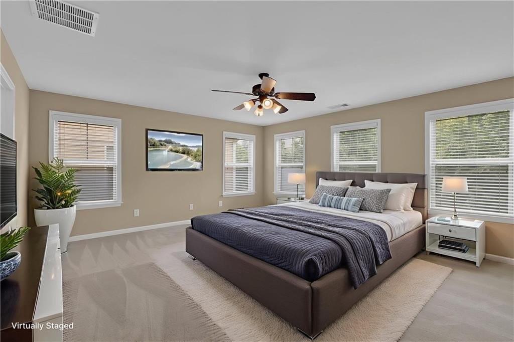 Welcome to this charming end-unit townhome in the highly sought-after, peaceful community of Village Grove. This move-in ready home features ALL NEW “spillsafe” carpet and fresh interior paint, making it feel brand new. As you step inside, you’re greeted by gleaming hardwood floors, a spacious family room and dining area that flows seamlessly into the kitchen with a cozy eat-in nook. Upstairs, you’ll find two generously sized bedrooms, each with its own en-suite bathroom, including a relaxing master retreat with double vanities, separate tub and shower and walk in closet. The finished terrace level is perfect for a roommate or in-law suite with its private bedroom, full bath, and office area. Situated in the award-winning North Gwinnett school district, this home is just minutes from Downtown Suwanee’s shops, restaurants, and Town Center Park, plus close access to the Suwanee Greenway Trail. Don’t miss your chance to live in one of Suwanee’s most desirable communities—this home is truly ready for you!