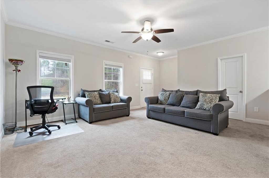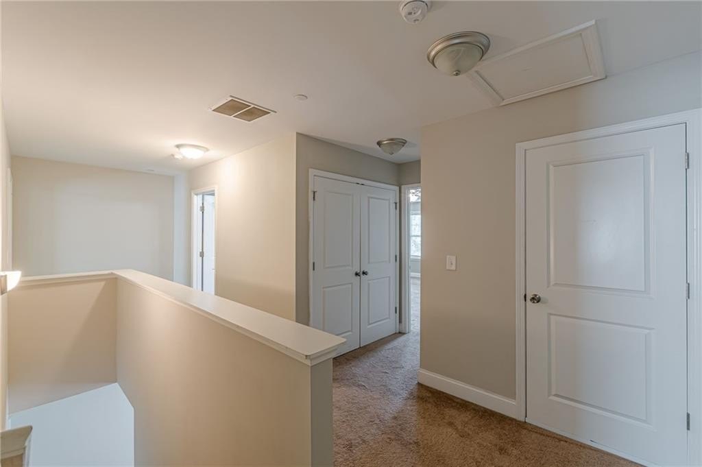 The upper-level laundry (washer & dryer included) adds convenience, while the two-car garage, security system, and ample storage round out the functionality. This particular unit is one of a kind in the community—it’s positioned next to open green space, offers both front and back access, and is the only unit with guest parking directly in front. Located in a private section of the neighborhood, it offers a quiet and accessible setting just minutes from major highways, Atlanta Airport, MARTA stations, and shopping centers.