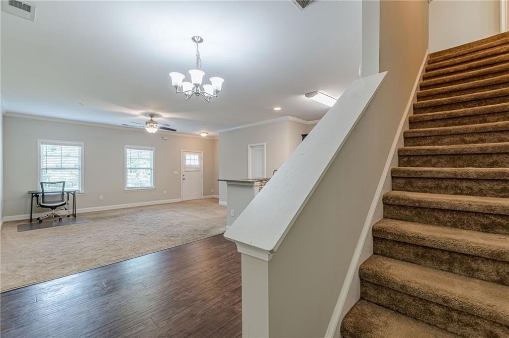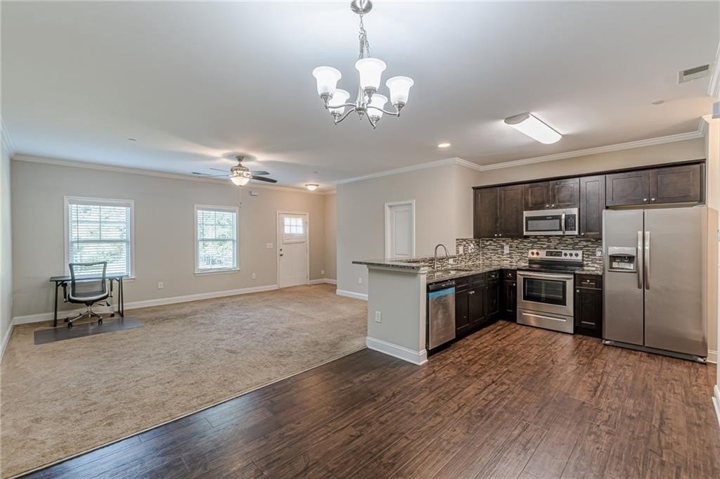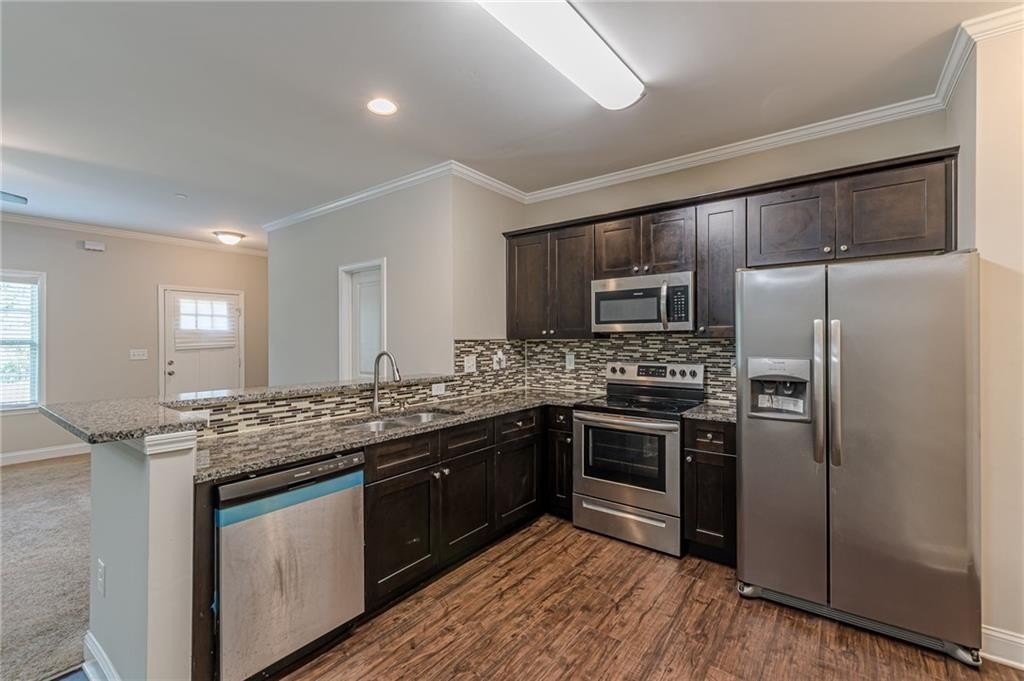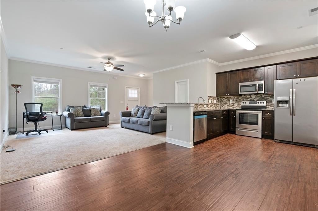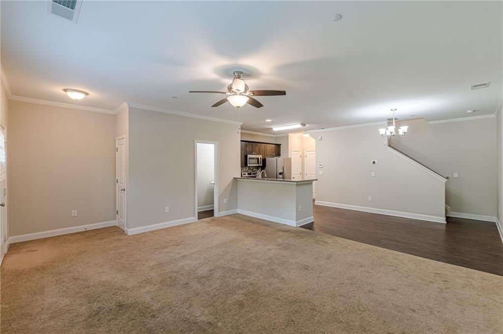 The heart of Stockbridge, GA! This beautifully maintained 3-bedroom, 2.5-bathroom townhome offers 1,674 square feet of stylish, modern living in a community with no rental restrictions—making it a rare find for Airbnb or long-term rental investors. Built in 2018 and featuring a brand-new HVAC system, this home combines turnkey comfort with long-term peace of mind. Inside, you'll love the granite countertops, stainless steel appliances, and a mix of water-resistant laminate flooring, plush carpeting, and vinyl. The open-concept main floor is enhanced by 9-foot ceilings, tray ceilings, and double vanities, giving the home a spacious and luxurious feel.