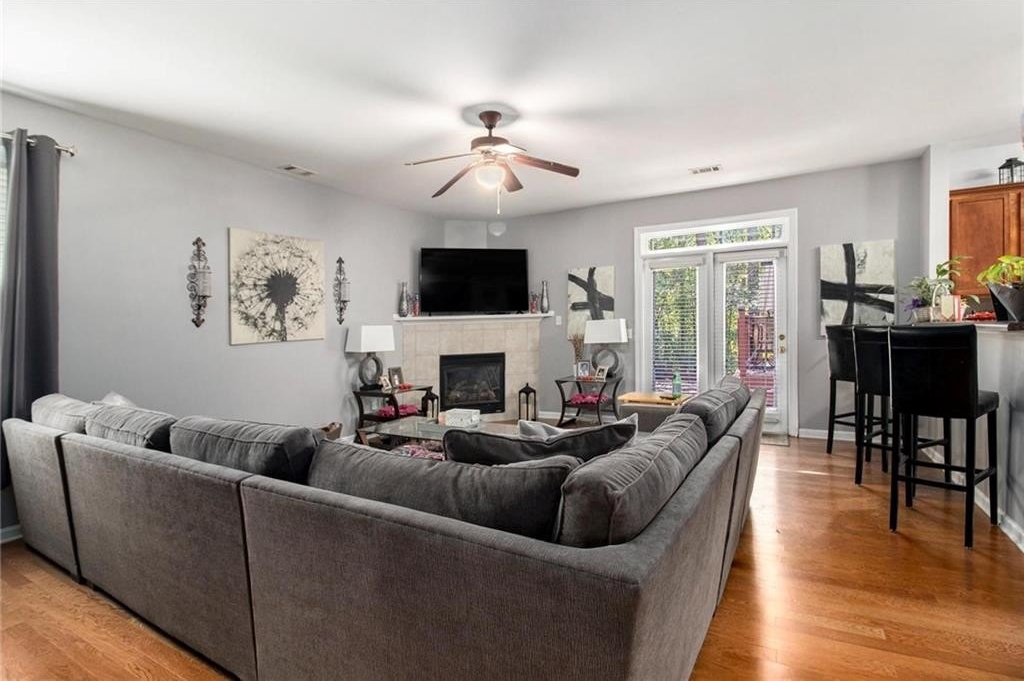 The main level boasts an inviting open floor plan, where natural light pours in through large windows, creating a warm and airy atmosphere. The living room is generously sized, perfect for hosting gatherings or simply relaxing with loved ones. Adjacent is the eat-in kitchen, featuring modern appliances, ample cabinetry, and a breakfast bar – an ideal space for cooking and casual dining.