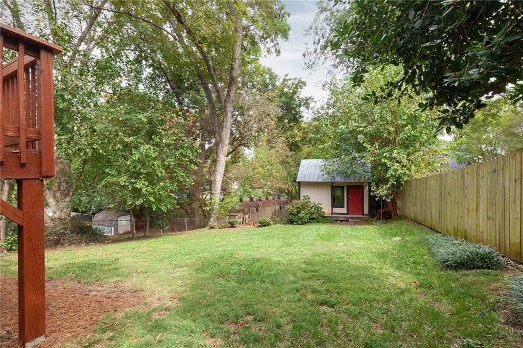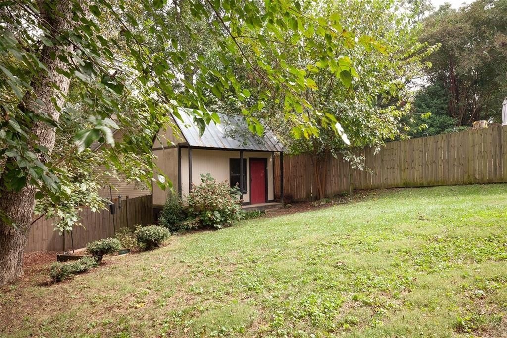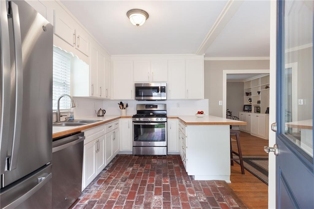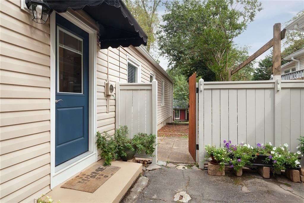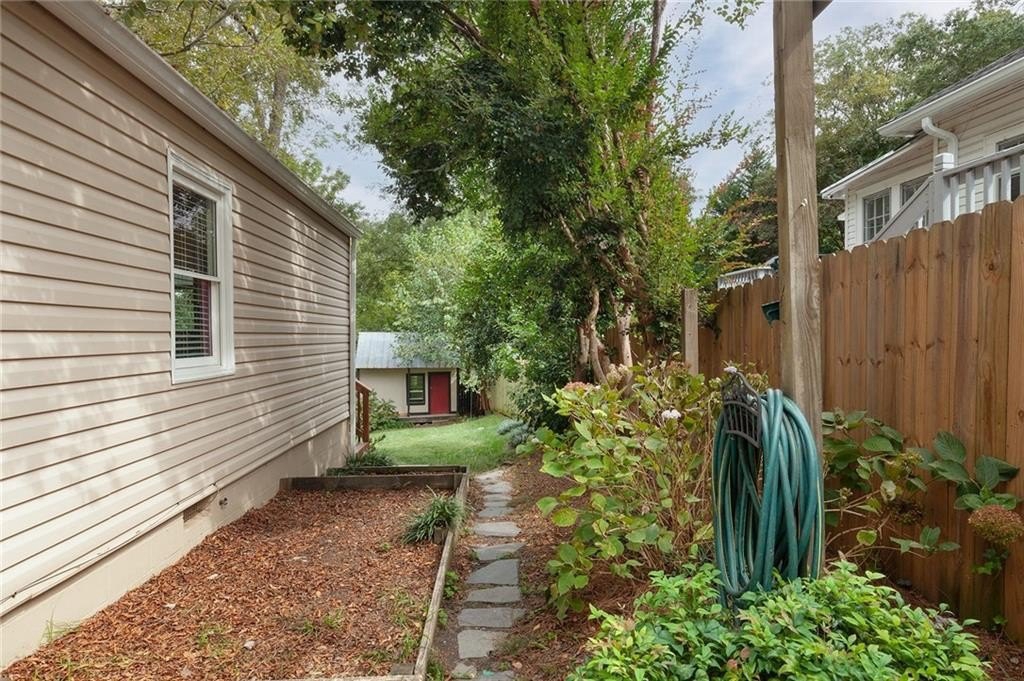 Charming updated two bedroom two bath home just steps from the Marietta Square! Ideal location, just a short 5 minute walk to Starbucks and Marietta Square. This home features Hardwood Floors throughout. Newly repainted interior. Kitchen has been Upgraded with GE appliances, including a gas convection range with griddle and steam clean oven, Newly re-faced Kitchen Cabinets and has Brick Flooring. Master suite features a private bathroom and twin closets with built-in storage cupboard. There is also a separate full guest bathroom, a cedar closet in the second bedroom. A large utility room with laundry closet and separate storage closet leads out to the back deck. The fully fenced backyard is a gardeners delight with raised beds and a composting bin. The backyard also features a large storage shed, mature trees and ornamental shrubs. The back deck was replaced in 2023 and new paint in 2025. Pex water lines in 2021 and Upgraded electrical service in 2020. A moisture barrier was added to the crawl space in 2023.