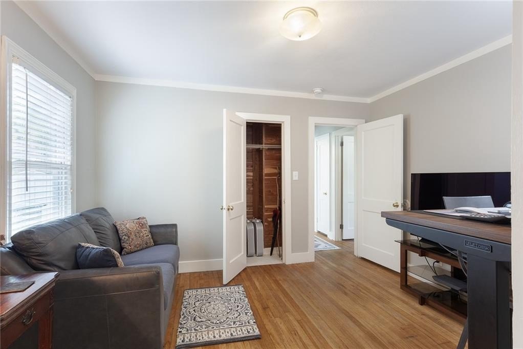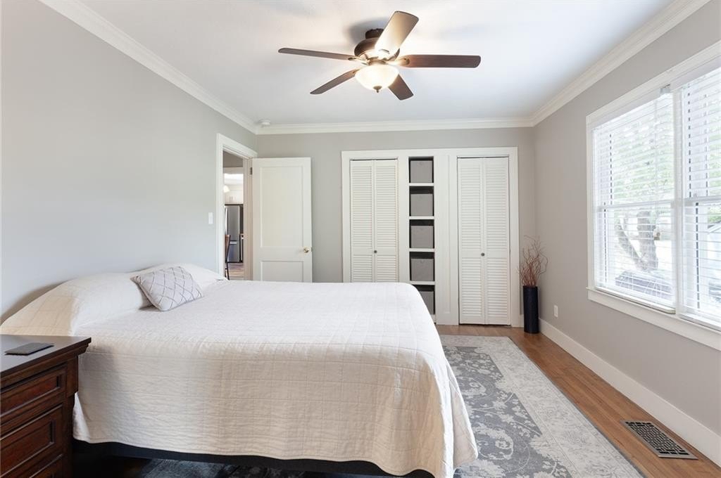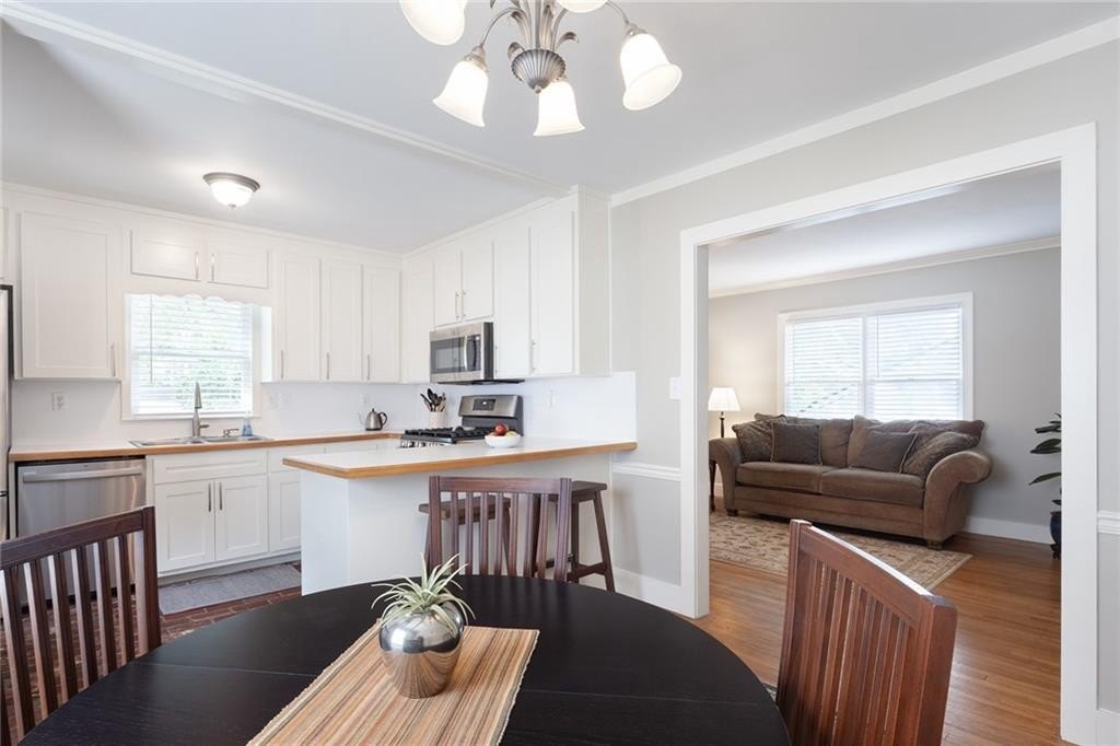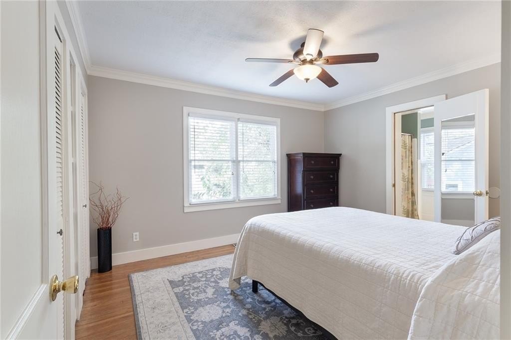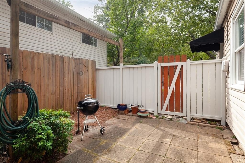 Charming updated two bedroom two bath home just steps from the Marietta Square! Ideal location, just a short 5 minute walk to Starbucks and Marietta Square. This home features Hardwood Floors throughout. Newly repainted interior. Kitchen has been Upgraded with GE appliances, including a gas convection range with griddle and steam clean oven, Newly re-faced Kitchen Cabinets and has Brick Flooring. Master suite features a private bathroom and twin closets with built-in storage cupboard. There is also a separate full guest bathroom, a cedar closet in the second bedroom. A large utility room with laundry closet and separate storage closet leads out to the back deck. The fully fenced backyard is a gardeners delight with raised beds and a composting bin. The backyard also features a large storage shed, mature trees and ornamental shrubs. The back deck was replaced in 2023 and new paint in 2025. Pex water lines in 2021 and Upgraded electrical service in 2020. A moisture barrier was added to the crawl space in 2023.