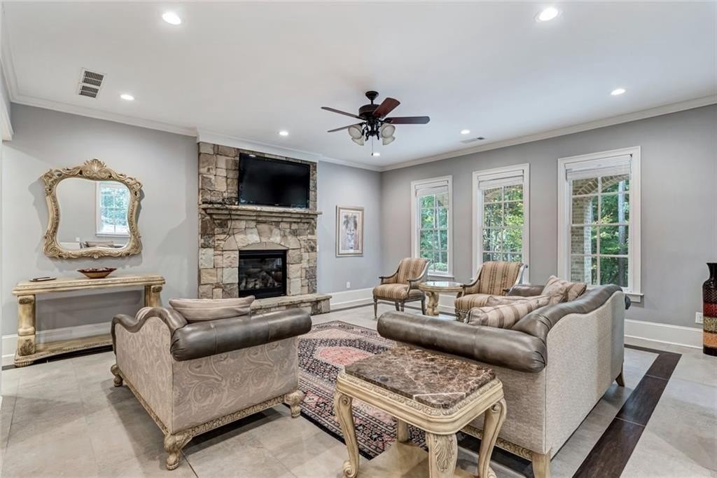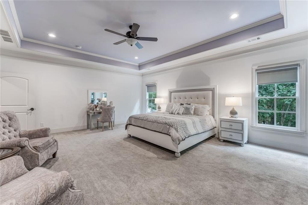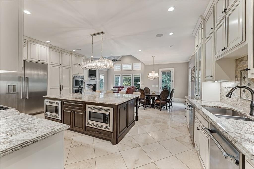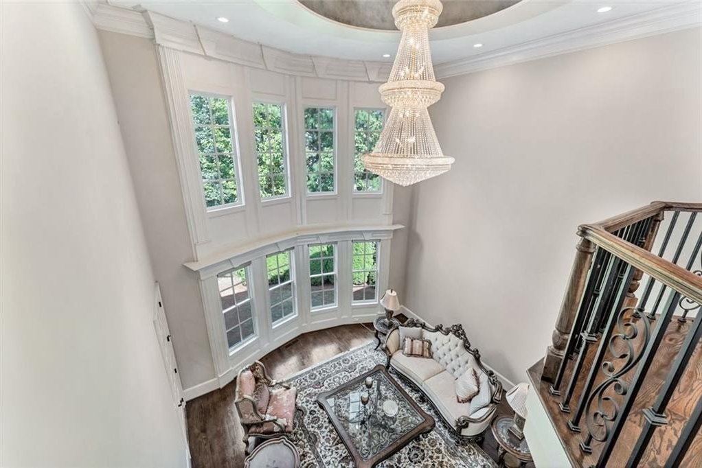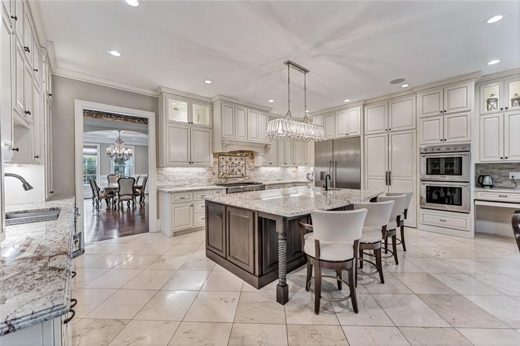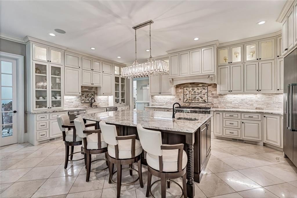 Spectacular newer estate overlooking the 17th hole of prestigious Sugarloaf Country Club. This custom crafted masterpiece has magnificent curb appeal with its 10-foot iron doors and circular driveway with fountain. The impressive front doors open to an equally impressive interior. Palatial domes in the foyer and great room are adorned with stunning crystal chandeliers and highlight the circular staircase. The dining room is banquet-sized and appointed with a gorgeous-n-unique crystal chandelier. The H-U-G-E kitchen is the heart of the home with its over-sized island, beautiful cabinetry to the ceiling, high-end appliances, and coveted extra spacious pantry. The master suite is a haven away from the pressures of life with its own fireplace, sitting room, gorgeously appointed bathroom, and large two-sided closet. The home was specifically architected for multi-generational living with TWO FULL bedroom suites on the first floor, MULTIPLE master suites, and a handsome ELEVATOR that goes to all three floors. All the bedrooms are generously sized and one is completely handicapped accessible. The second floor has four of the bedrooms with ensuite bathrooms and walk-in closets, plus there is a second laundry room and an off-season storage closet. The terrace level is beautifully finished with a second kitchen, multiple seating areas, theatre room, exercise room, second study, and two large-n-luxurious bedroom suites for a total of 8 bedrooms. Multiple covered outdoor seating areas makes dining al fresco a dream. The home is located on a premium large lot with plenty of room for a pool, on a cul-de-sac, close to the gates. The icing on the cake is the FOUR CAR garage!