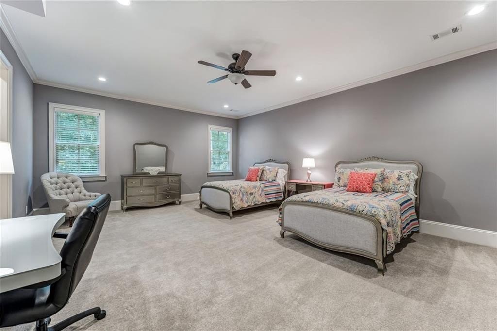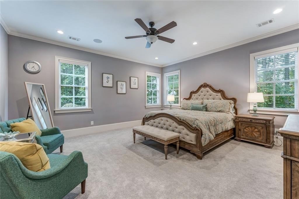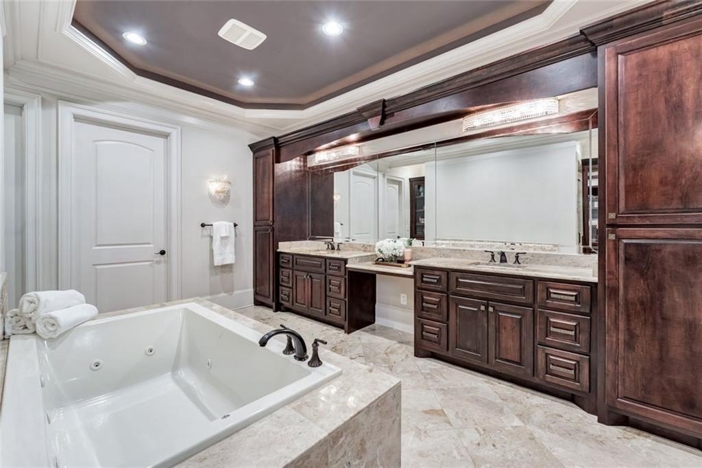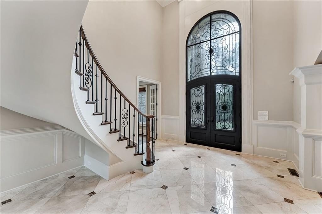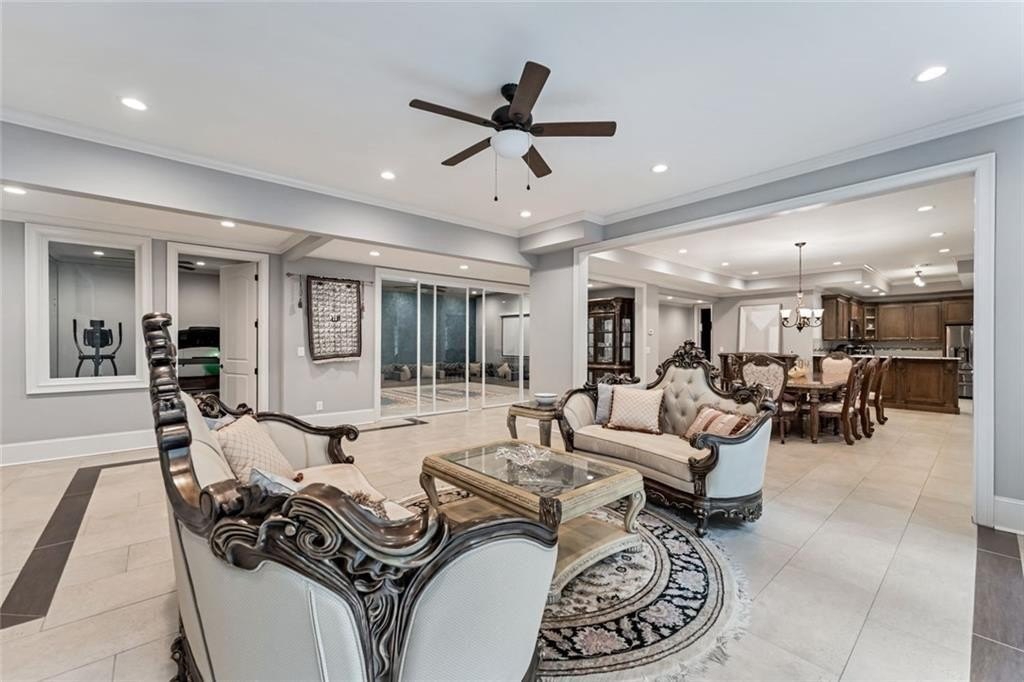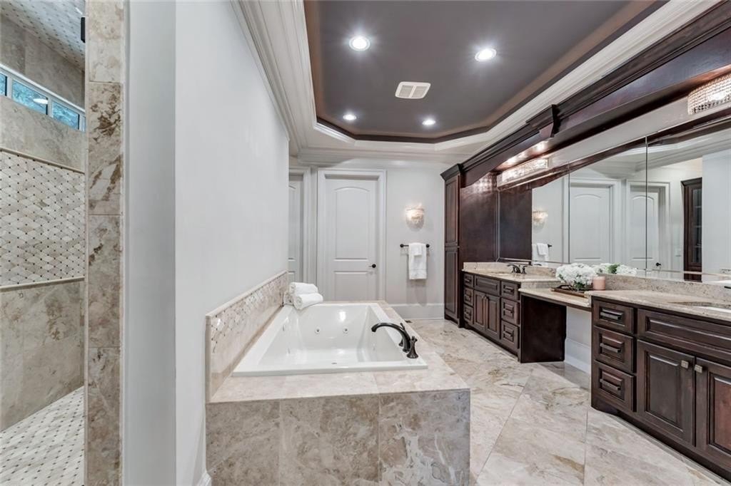 Spectacular newer estate overlooking the 17th hole of prestigious Sugarloaf Country Club. This custom crafted masterpiece has magnificent curb appeal with its 10-foot iron doors and circular driveway with fountain. The impressive front doors open to an equally impressive interior. Palatial domes in the foyer and great room are adorned with stunning crystal chandeliers and highlight the circular staircase. The dining room is banquet-sized and appointed with a gorgeous-n-unique crystal chandelier. The H-U-G-E kitchen is the heart of the home with its over-sized island, beautiful cabinetry to the ceiling, high-end appliances, and coveted extra spacious pantry. The master suite is a haven away from the pressures of life with its own fireplace, sitting room, gorgeously appointed bathroom, and large two-sided closet. The home was specifically architected for multi-generational living with TWO FULL bedroom suites on the first floor, MULTIPLE master suites, and a handsome ELEVATOR that goes to all three floors. All the bedrooms are generously sized and one is completely handicapped accessible. The second floor has four of the bedrooms with ensuite bathrooms and walk-in closets, plus there is a second laundry room and an off-season storage closet. The terrace level is beautifully finished with a second kitchen, multiple seating areas, theatre room, exercise room, second study, and two large-n-luxurious bedroom suites for a total of 8 bedrooms. Multiple covered outdoor seating areas makes dining al fresco a dream. The home is located on a premium large lot with plenty of room for a pool, on a cul-de-sac, close to the gates. The icing on the cake is the FOUR CAR garage!