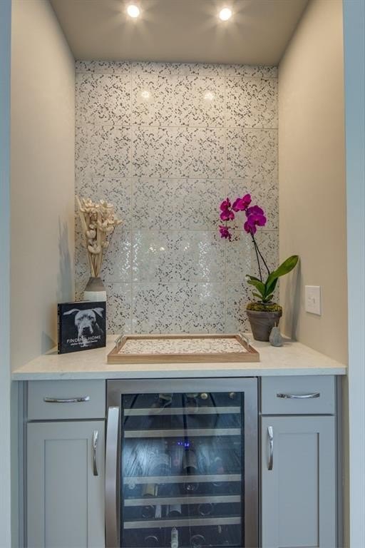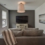 added a butler's pantry with wine cooler and stunning custom tile wall. Living area has modern vibes with