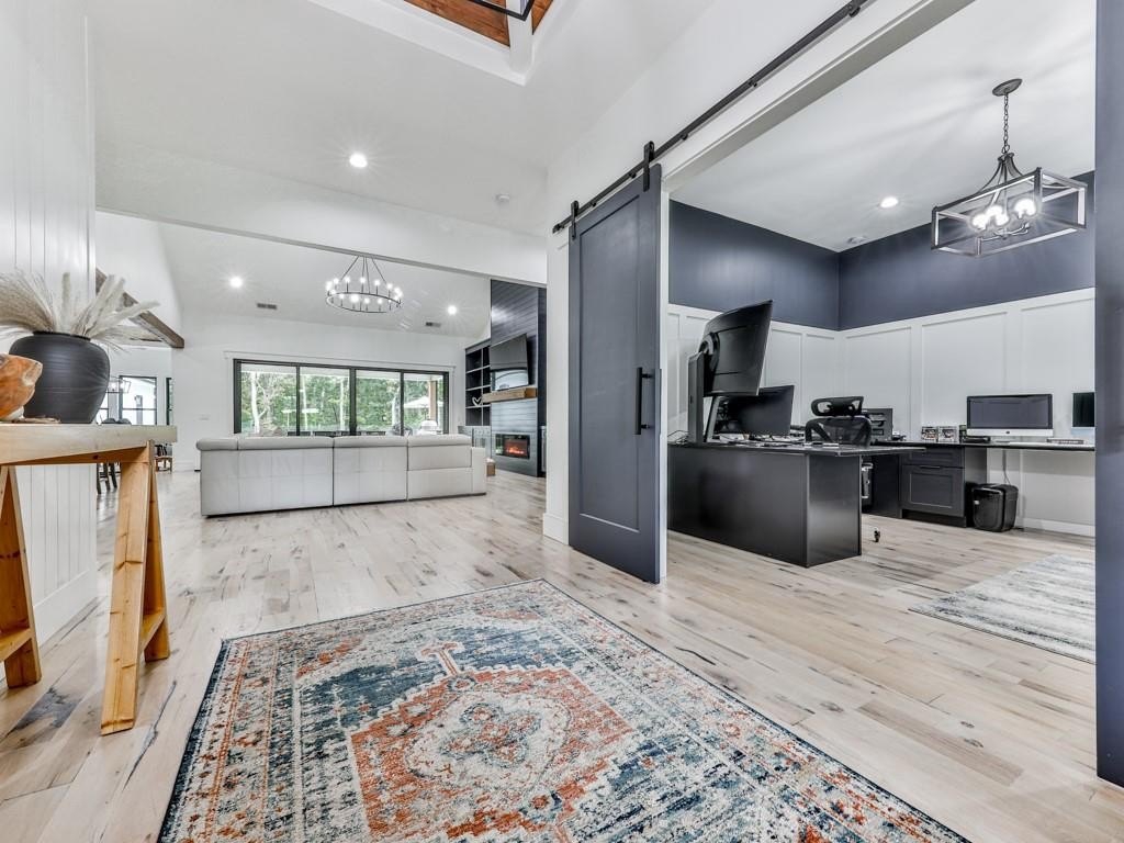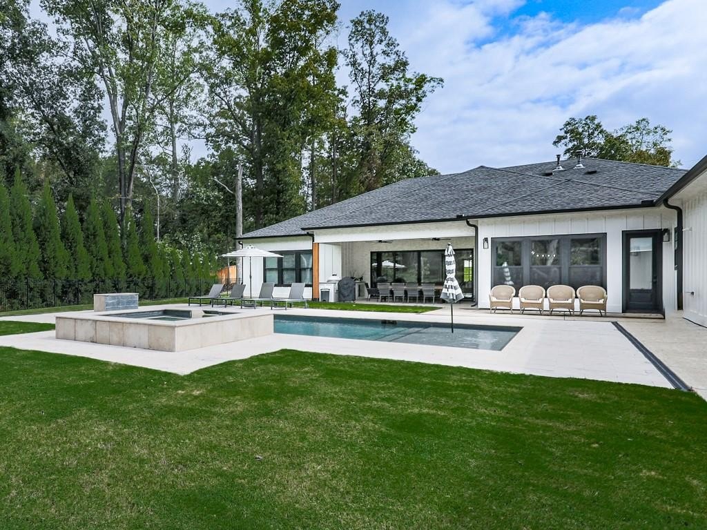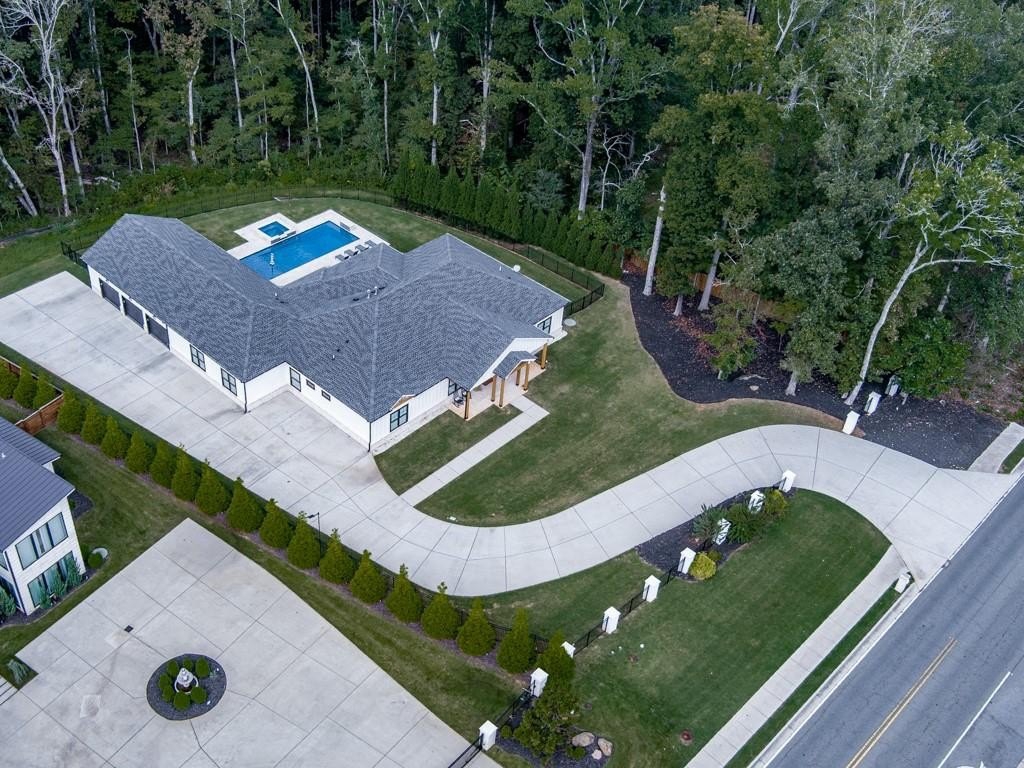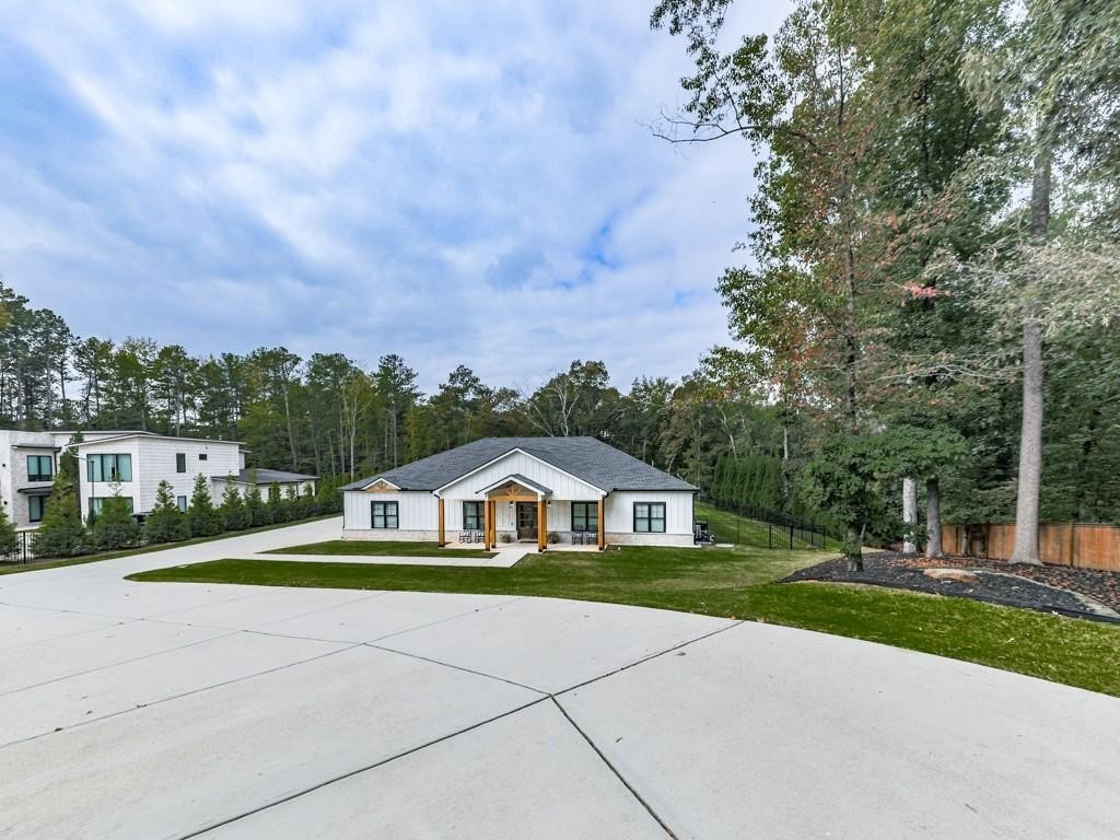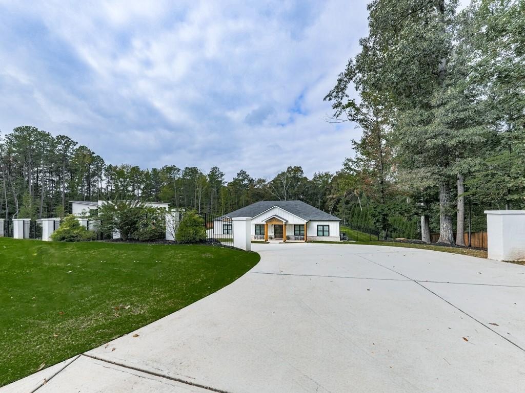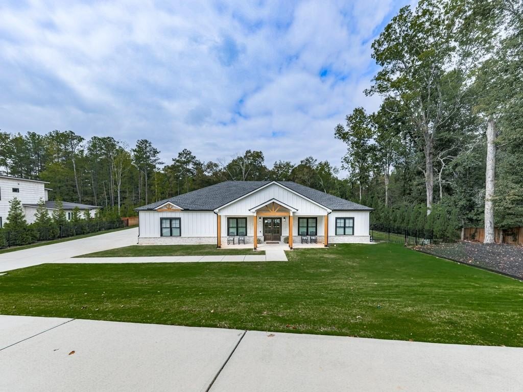 This is it! The Spectacular Custom-Built Farmhouse-Style Ranch Home you've been waiting for! Featuring 4 Spacious Bedrooms, each with an On-Suite Full Bathroom, and boasting 4,454 Sq. Ft of Superbly Finished Living Space 'Under Air' (plus 1,333 Sq. Ft. Side-Entrance 3-Car Garage, and 695 Sq. Ft. of 'Under Cover' Patio & Porch Space), and located on 1.68 Acres of Land; this home has it all! The expansive concrete driveway and pad provides parking for multiple cars, etc. Entering the Foyer off the covered front-patio, you'll be struck by the light-colored hardwood floors that run throughout the home, shiplap white accent wall and 10' coffer-style ceiling with slated wood inlay and chandelier. To your right is the study complete with closet, and a dark barn-style door. Entering the Expansive Great Room with Vaulted Cathedral Ceiling, Black Colored Built-In Shelving, Mounted TV and Electric Fireplace will delight your eye, while the 7' Windows overlooking the covered back patio and pool area will cause you to catch your breath. And as you're taking this in, your head will turn to the left and towards the Open-Plan Kitchen Area. Here you'll notice the HUGE Quartz-Topped Kitchen Island with Deep Sink, providing the perfect Breakfast Bar. The Kitchen feature Stainless Steel Appliances, Quartz-Counters, Expansive White Cabinets, Marble-Style Back-Splash, Double-Oven Gas Range with Gas Cook-Top, a Huge Over-Stove Hood with Exterior Extractor Fan, Pot Filler, Dishwasher and Under-Counter Microwave Oven. And to the right of the Kitchen is the Dining Room Area, with Sliding-Glass Door and 7' Windows also looking onto the covered back Patio and Pool area. But there's more ... Complementing the living area is a separate and spacious Media or Bonus Room, awaiting your recreational desires; plus a Half Bathroom with a door directly to the Pool Area, separate Laundry Room with Dog Bath, Sink and 'Cat Coves'; and the huge, Deep-length 3-Car Garage with Epoxy Flooring, On-Demand Water Heater and Water Filtration Systems. WOW! This home has it all! And then there are the four, good-sized Bedrooms, each with a full bathroom On-Suite. The Master Bedroom features Dual Walk-In Closets and an Electric Fireplace for cozy nights. The Master Bathroom boasts Dual vanities with Quartz Counter, a Spacious Two-Head, Glass-Enclosed Shower, Deep Soaking Tub, and 2x4 Marble Flooring and Floor-To-Ceiling Wall Tiles. And yet there's still more ... Stepping outside onto the Back Covered Patio, we have a Built-In Outdoor Counter with Bar-Fridge and Granite Counter-Top, plus the huge In-Ground Concrete Heated-Pool with Heated Spa and Waterfall. And surrounding this Private Pool And Entertainment Area is a 4' safety fence and view of the wooded and very private backyard. WELCOME HOME! You Have Arrived!