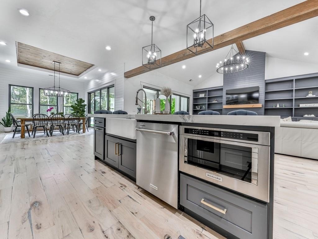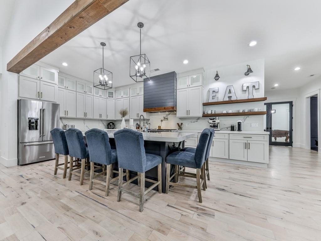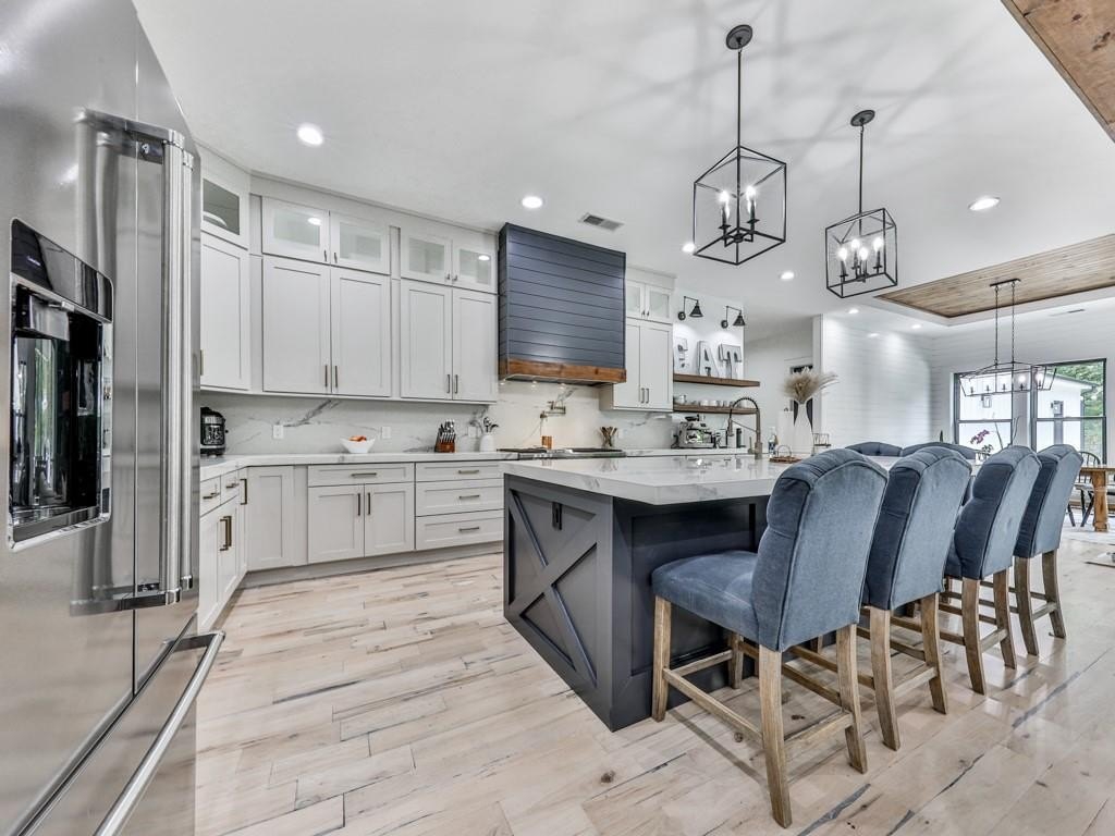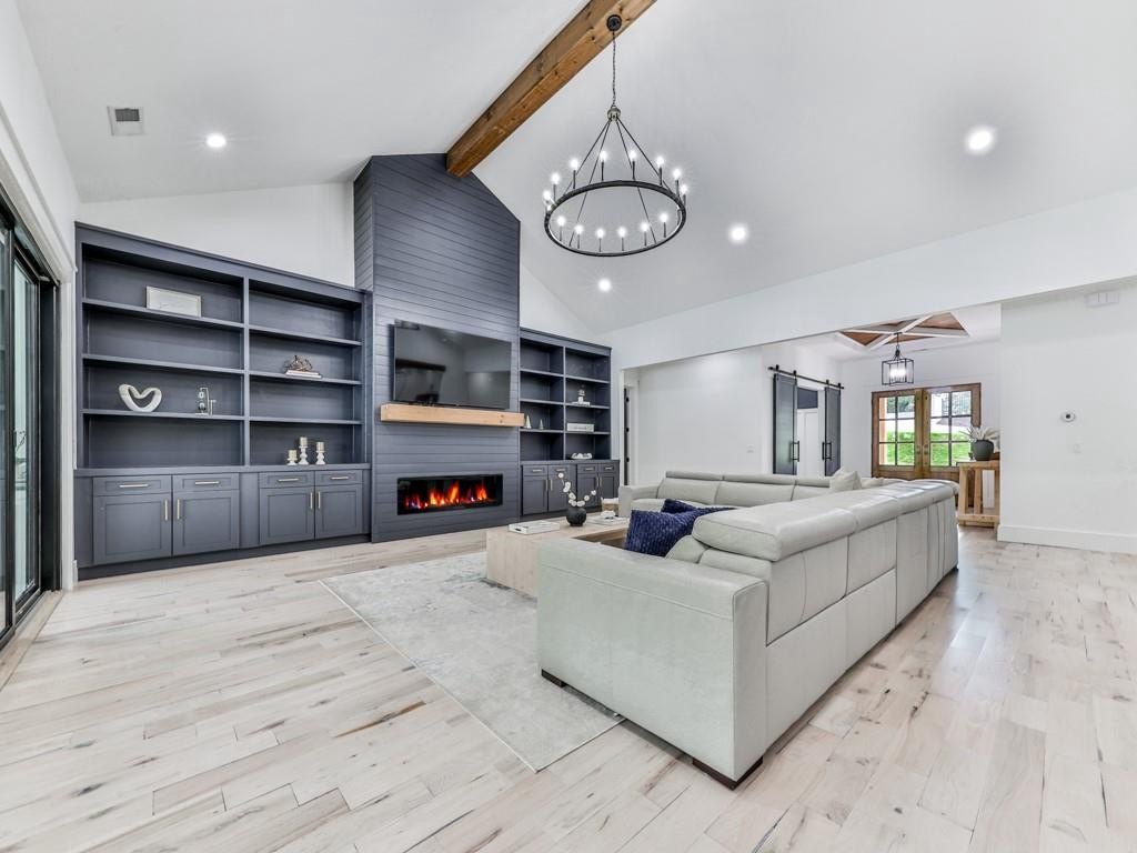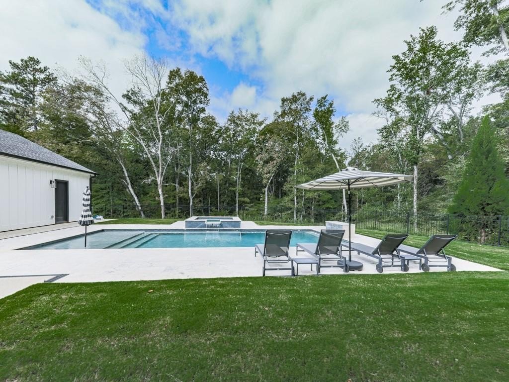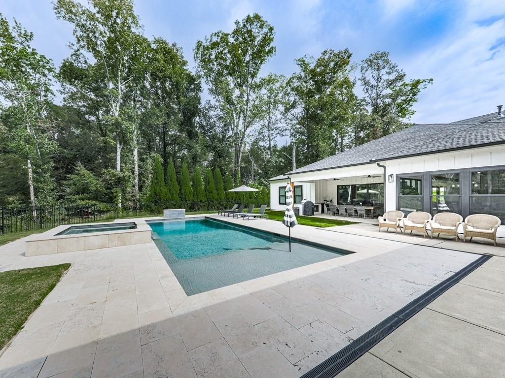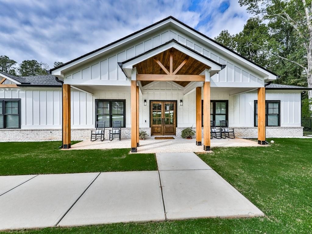 This is it! The Spectacular Custom-Built Farmhouse-Style Ranch Home you've been waiting for! Featuring 4 Spacious Bedrooms, each with an On-Suite Full Bathroom, and boasting 4,454 Sq. Ft of Superbly Finished Living Space 'Under Air' (plus 1,333 Sq. Ft. Side-Entrance 3-Car Garage, and 695 Sq. Ft. of 'Under Cover' Patio & Porch Space), and located on 1.68 Acres of Land; this home has it all! The expansive concrete driveway and pad provides parking for multiple cars, etc. Entering the Foyer off the covered front-patio, you'll be struck by the light-colored hardwood floors that run throughout the home, shiplap white accent wall and 10' coffer-style ceiling with slated wood inlay and chandelier. To your right is the study complete with closet, and a dark barn-style door. Entering the Expansive Great Room with Vaulted Cathedral Ceiling, Black Colored Built-In Shelving, Mounted TV and Electric Fireplace will delight your eye, while the 7' Windows overlooking the covered back patio and pool area will cause you to catch your breath. And as you're taking this in, your head will turn to the left and towards the Open-Plan Kitchen Area. Here you'll notice the HUGE Quartz-Topped Kitchen Island with Deep Sink, providing the perfect Breakfast Bar. The Kitchen feature Stainless Steel Appliances, Quartz-Counters, Expansive White Cabinets, Marble-Style Back-Splash, Double-Oven Gas Range with Gas Cook-Top, a Huge Over-Stove Hood with Exterior Extractor Fan, Pot Filler, Dishwasher and Under-Counter Microwave Oven. And to the right of the Kitchen is the Dining Room Area, with Sliding-Glass Door and 7' Windows also looking onto the covered back Patio and Pool area. But there's more ... Complementing the living area is a separate and spacious Media or Bonus Room, awaiting your recreational desires; plus a Half Bathroom with a door directly to the Pool Area, separate Laundry Room with Dog Bath, Sink and 'Cat Coves'; and the huge, Deep-length 3-Car Garage with Epoxy Flooring, On-Demand Water Heater and Water Filtration Systems. WOW! This home has it all! And then there are the four, good-sized Bedrooms, each with a full bathroom On-Suite. The Master Bedroom features Dual Walk-In Closets and an Electric Fireplace for cozy nights. The Master Bathroom boasts Dual vanities with Quartz Counter, a Spacious Two-Head, Glass-Enclosed Shower, Deep Soaking Tub, and 2x4 Marble Flooring and Floor-To-Ceiling Wall Tiles. And yet there's still more ... Stepping outside onto the Back Covered Patio, we have a Built-In Outdoor Counter with Bar-Fridge and Granite Counter-Top, plus the huge In-Ground Concrete Heated-Pool with Heated Spa and Waterfall. And surrounding this Private Pool And Entertainment Area is a 4' safety fence and view of the wooded and very private backyard. WELCOME HOME! You Have Arrived!
