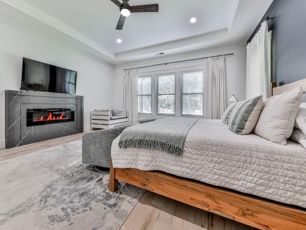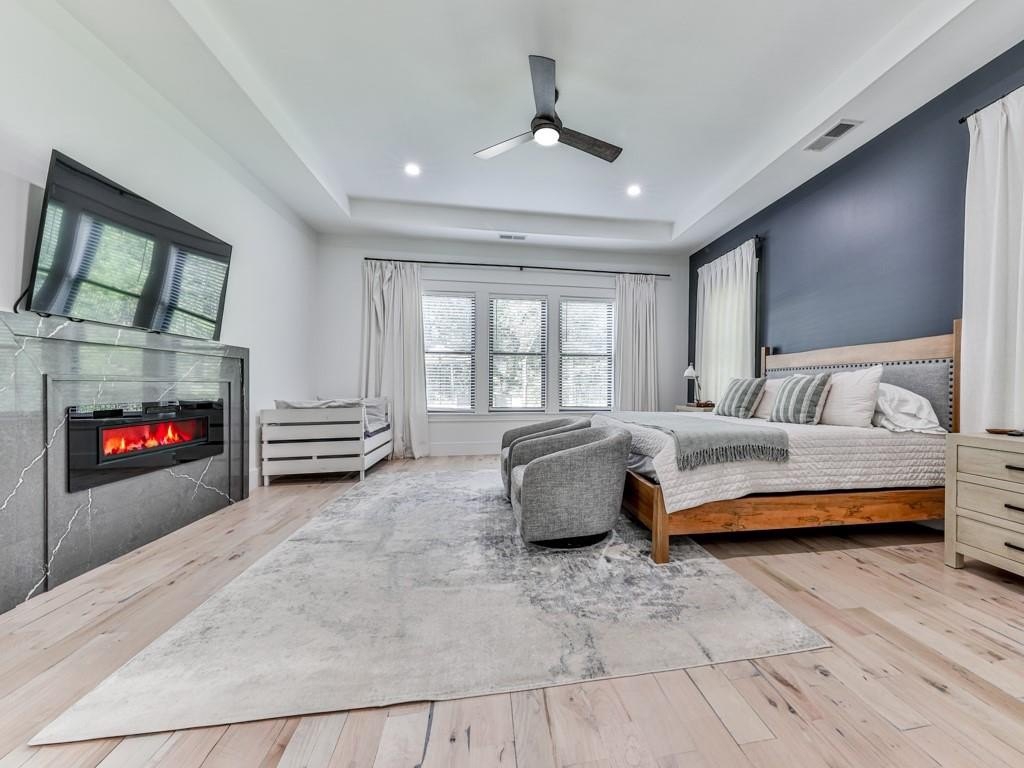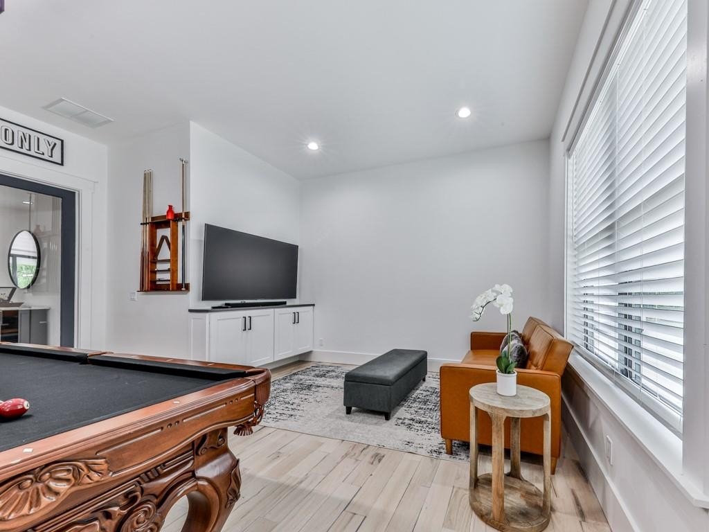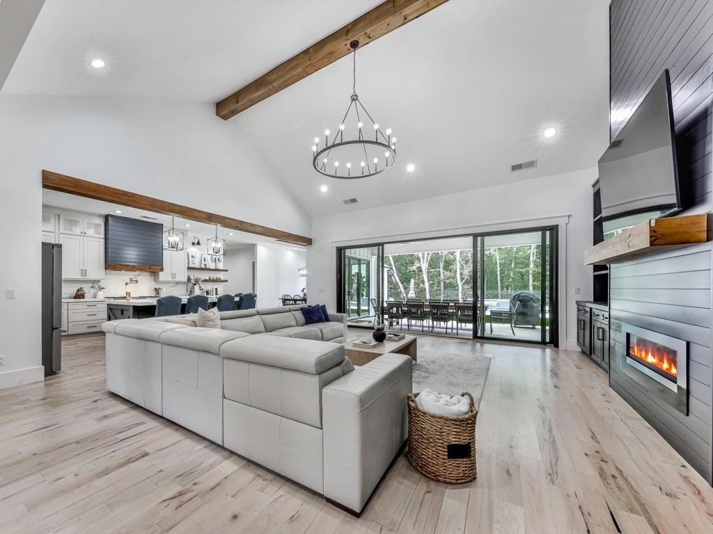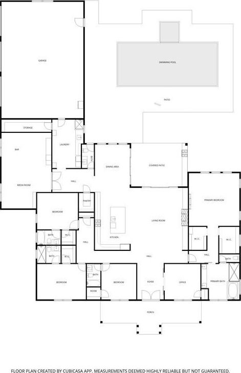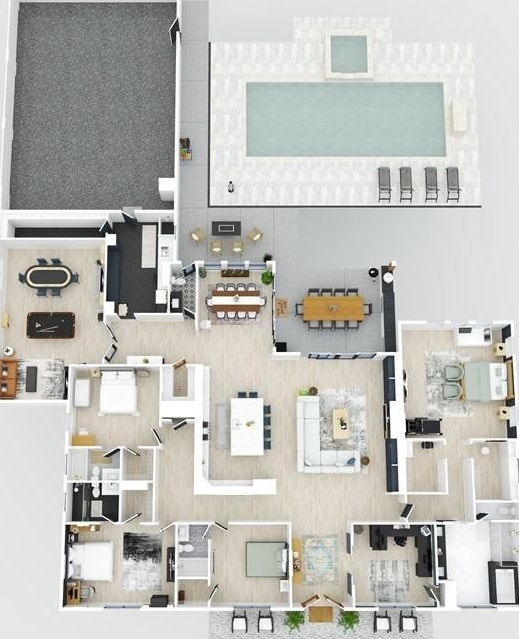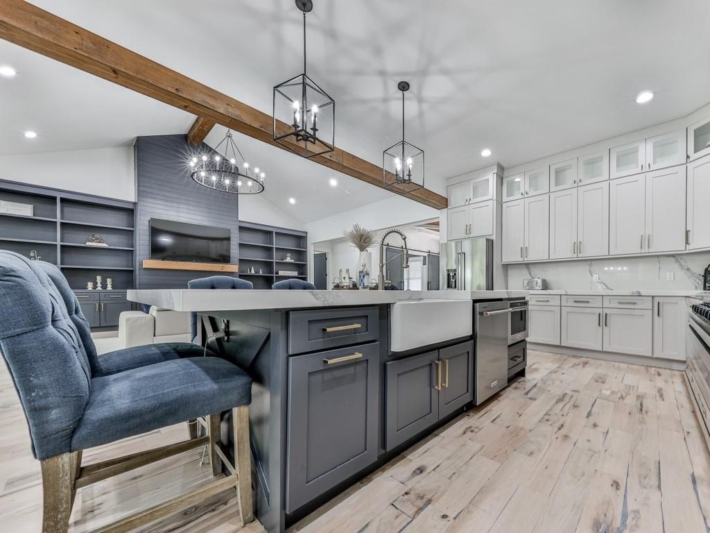 This is it! The Spectacular Custom-Built Farmhouse-Style Ranch Home you've been waiting for! Featuring 4 Spacious Bedrooms, each with an On-Suite Full Bathroom, and boasting 4,454 Sq. Ft of Superbly Finished Living Space 'Under Air' (plus 1,333 Sq. Ft. Side-Entrance 3-Car Garage, and 695 Sq. Ft. of 'Under Cover' Patio & Porch Space), and located on 1.68 Acres of Land; this home has it all! The expansive concrete driveway and pad provides parking for multiple cars, etc. Entering the Foyer off the covered front-patio, you'll be struck by the light-colored hardwood floors that run throughout the home, shiplap white accent wall and 10' coffer-style ceiling with slated wood inlay and chandelier. To your right is the study complete with closet, and a dark barn-style door. Entering the Expansive Great Room with Vaulted Cathedral Ceiling, Black Colored Built-In Shelving, Mounted TV and Electric Fireplace will delight your eye, while the 7' Windows overlooking the covered back patio and pool area will cause you to catch your breath. And as you're taking this in, your head will turn to the left and towards the Open-Plan Kitchen Area. Here you'll notice the HUGE Quartz-Topped Kitchen Island with Deep Sink, providing the perfect Breakfast Bar. The Kitchen feature Stainless Steel Appliances, Quartz-Counters, Expansive White Cabinets, Marble-Style Back-Splash, Double-Oven Gas Range with Gas Cook-Top, a Huge Over-Stove Hood with Exterior Extractor Fan, Pot Filler, Dishwasher and Under-Counter Microwave Oven. And to the right of the Kitchen is the Dining Room Area, with Sliding-Glass Door and 7' Windows also looking onto the covered back Patio and Pool area. But there's more ... Complementing the living area is a separate and spacious Media or Bonus Room, awaiting your recreational desires; plus a Half Bathroom with a door directly to the Pool Area, separate Laundry Room with Dog Bath, Sink and 'Cat Coves'; and the huge, Deep-length 3-Car Garage with Epoxy Flooring, On-Demand Water Heater and Water Filtration Systems. WOW! This home has it all! And then there are the four, good-sized Bedrooms, each with a full bathroom On-Suite. The Master Bedroom features Dual Walk-In Closets and an Electric Fireplace for cozy nights. The Master Bathroom boasts Dual vanities with Quartz Counter, a Spacious Two-Head, Glass-Enclosed Shower, Deep Soaking Tub, and 2x4 Marble Flooring and Floor-To-Ceiling Wall Tiles. And yet there's still more ... Stepping outside onto the Back Covered Patio, we have a Built-In Outdoor Counter with Bar-Fridge and Granite Counter-Top, plus the huge In-Ground Concrete Heated-Pool with Heated Spa and Waterfall. And surrounding this Private Pool And Entertainment Area is a 4' safety fence and view of the wooded and very private backyard. WELCOME HOME! You Have Arrived!