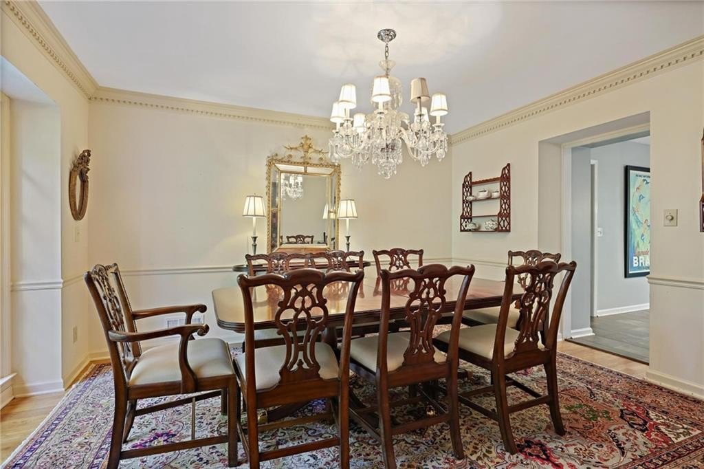 Wonderful and charming traditional four-sided brick home with great curb appeal with a private back yard. This home is located on a cul-de-sac in the highly sought-after North Harbor neighborhood has hardwood floors, crown molding and wood shutters throughout. Upon entering the welcoming foyer, you immediately see the cozy formal living room and a banquet sized dining room. Opposite the living room you will see the guest bedroom, one of four bedrooms. The kitchen and breakfast room open to the huge family room with built-in bookshelves, brick fireplace, and a great view of the backyard. On the main floor is the laundry/mudroom and a keeping room allowing for informal gatherings for family and guests. Upstairs the primary bedroom suite provides a comfortable sanctuary with his and her walk-in closets. There are two additional bedrooms upstairs along with an additional room that can be an office, playroom, or a small guest room. The basement is partially finished and features a fireplace and great space for a playroom, office, or media room. North Harbor offers amenities which include a pool, tennis courts, a picturesque lake and updated clubhouse. North Harbor is not only across the Chattahoochee River from East Cobb, but minutes from City Springs where you can enjoy all the shopping, dining, theatre and arts that there is to offer.