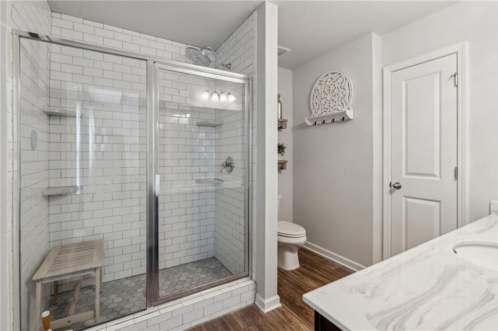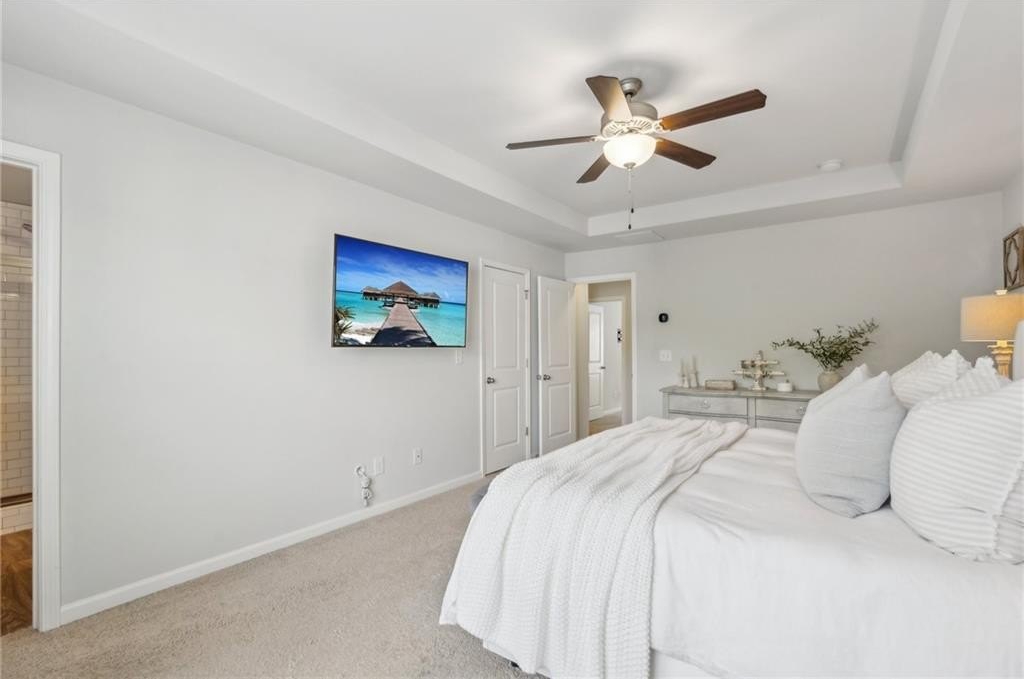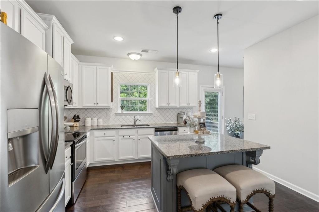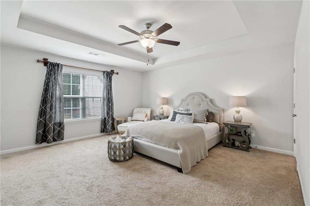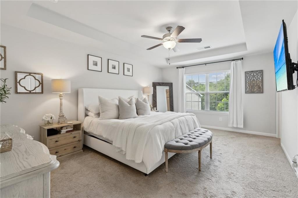 Welcome to Your Dream Townhome in Gated Chatham Village! Step into a lifestyle of comfort, style, and ease in this beautifully appointed 3-bedroom, 3.5-bath townhome nestled within the secure, gated community of Chatham Village in Buford. From the moment you walk in, you'll be greeted by a bright and airy open-concept main floor that effortlessly flows from the spacious living area to the elegant dining space and stunning gourmet kitchen. With gleaming granite countertops, a custom island, and sleek stainless steel appliances, this kitchen is perfect for both entertaining and everyday living. Upstairs, relax in not one but two spacious master suites, each with its own private ensuite bathroom. Whether you're hosting guests, sharing with a roommate, or just looking for extra comfort, this setup offers flexibility and privacy. Downstairs, the fully finished terrace level features a third bedroom with a full bath—ideal for a home office, media room, or a welcoming guest suite. Start your mornings with coffee on your private balcony or unwind by the community swimming pool on sunny afternoons. With lawn care handled by the HOA, you'll enjoy low-maintenance living in a beautiful setting. Ideally located just minutes from the Mall of Georgia with quick access to I-85 and I-985, this location offers unmatched convenience for shopping, dining, entertainment, healthcare and easy commuting. You're also just a short drive from the vibrant downtown areas of Sugar Hill and Suwanee, where charming boutiques, local eateries, and lively community events await. This townhome truly has it all—designer finishes, recent construction, upgraded countertops, tile and hardwood flooring, and a spacious 2-car garage. Don’t miss this opportunity!