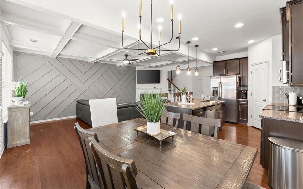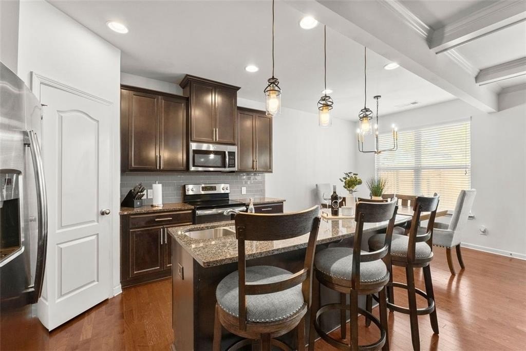 ake a tour of this spacious townhome in a beautiful swim/tennis community featuring 3 bedrooms, 2 1/2 baths, and a FENCED BACKYARD! This home has updated finishes with modern lighting and a dramatic living room accent wall. The extended foyer leads to an open-concept design that seamlessly connects the spacious kitchen with lots of cabinetry, walk-in pantry, dining area with seating for up to 6 persons, and living room with fireplace-perfect for relaxing or entertaining. You'll also find the powder room on this level, along with a 2-car garage. Upstairs, you’ll find three generously sized bedrooms and two full bathrooms as well as the laundry room. The stunning oversized primary suite offers a sitting area, spacious walk-in closet, en-suite bathroom with dual sinks and separate soaking tub and shower. The HOA covers both front and backyard lawn care, amenities and pest control. The community amenities include swimming pool, tennis courts, clubhouse and sidewalks, grass areas, park benches and guest parking in this well-kept community. The location is ideal within just minutes to Hartsfield-Jackson Airport, shopping, dining, parks and major highways, as well as close proximity to Trilith in Fayetteville for easy entertainment! If you're looking for a low maintenance home at a great price, without the brand new price tag, this move-in-ready townhome checks all the boxes!