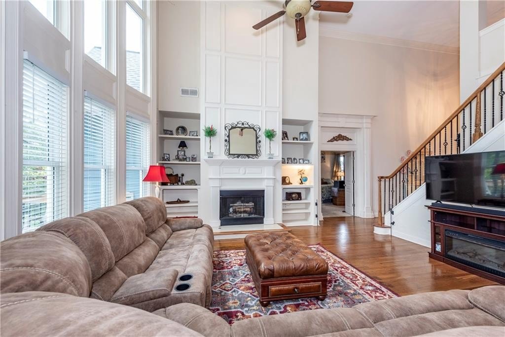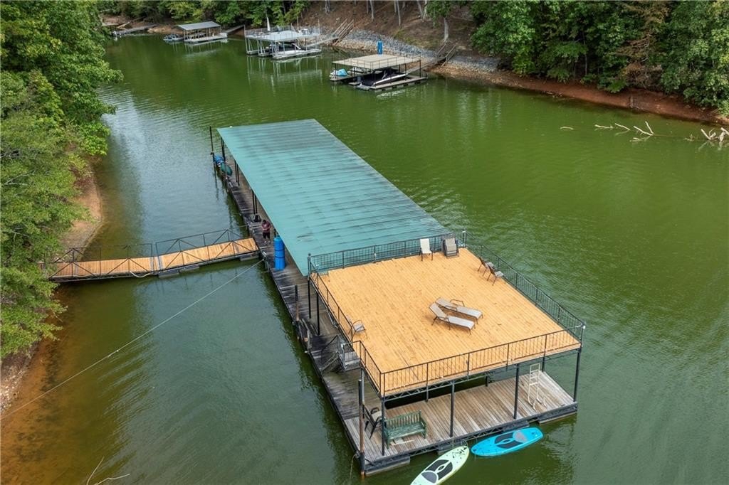 Come experience life at Lake Lanier! While this beautiful home is not lakefront, it offers the ultimate bonus—direct lake access with your own boat slip and shared party deck. This two-story Craftsman-style home welcomes you with a grand two-story foyer, flanked by a formal dining room on one side and a versatile office or bedroom on the other. The soaring family room features floor-to-ceiling windows, a striking stone fireplace, and custom built-in bookcases, flowing seamlessly into the breakfast area and spacious kitchen with granite countertops, a center island, and bar seating. Plus the roof is within 5 years old!