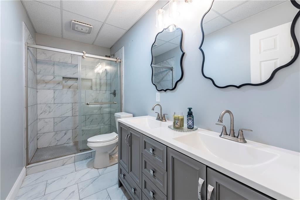 The newly finished terrace level offers the perfect in-law suite with a welcoming family room complete with fire place, stunning kitchen with leathered quartz countertops and an island with seating, bedroom, and flexible office space. This homes offers almost 6000 sq ft on 3 levels, low HOA fees plus great schools.