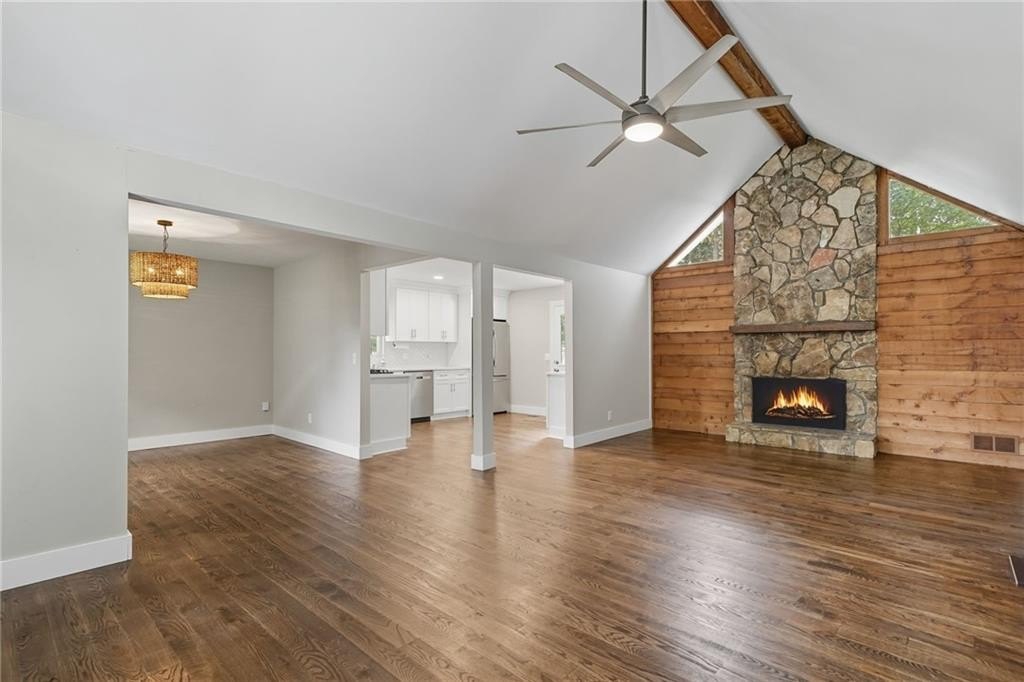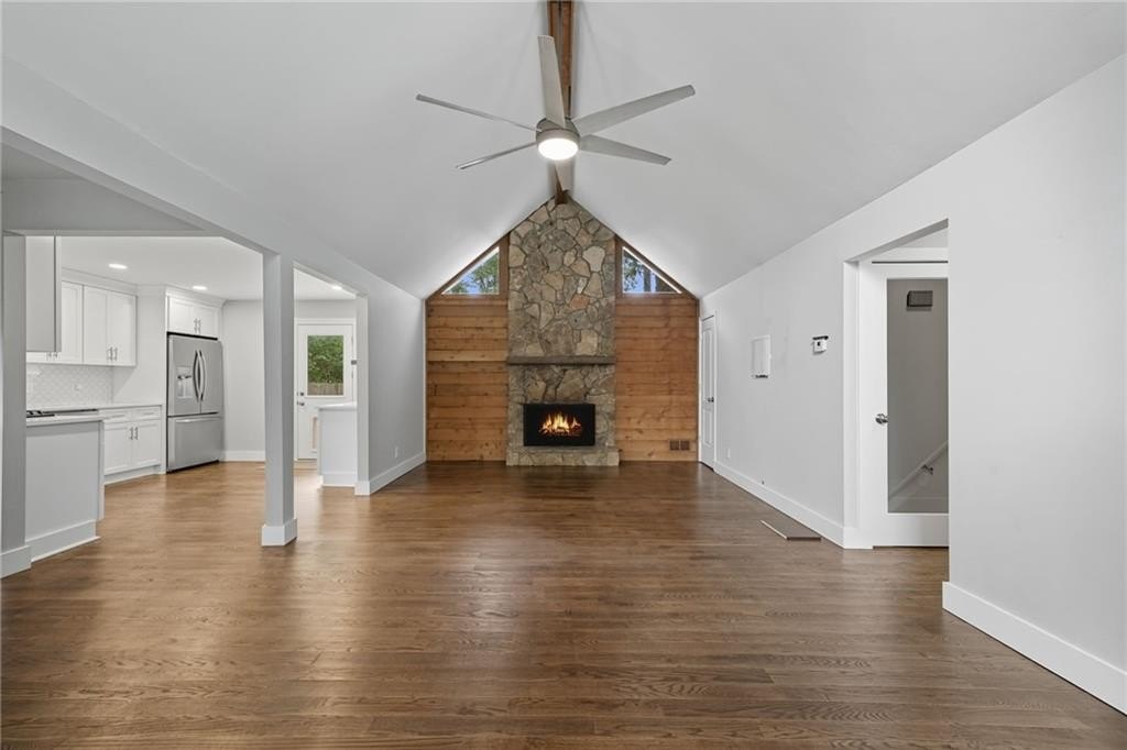 The main level features gleaming hardwood floors, a bright kitchen with open views to the vaulted family room, and an accent wall with fireplace that creates the perfect gathering space. The finished basement offers endless possibilities- use it as a media room, home office, gym, playroom, or guest suite with a full bath.