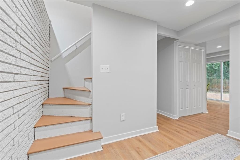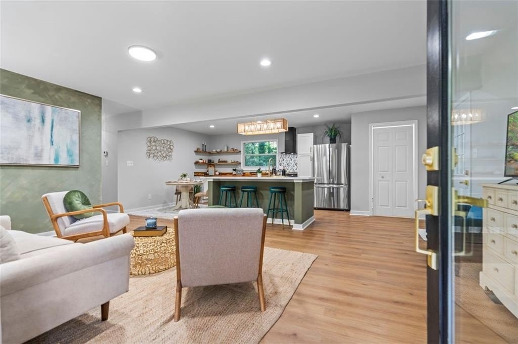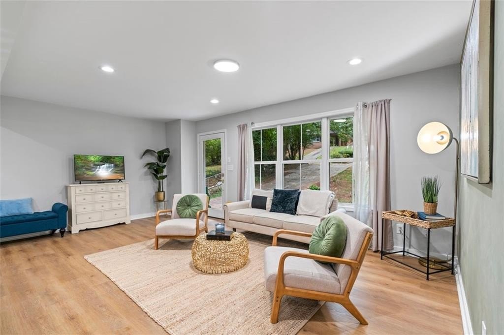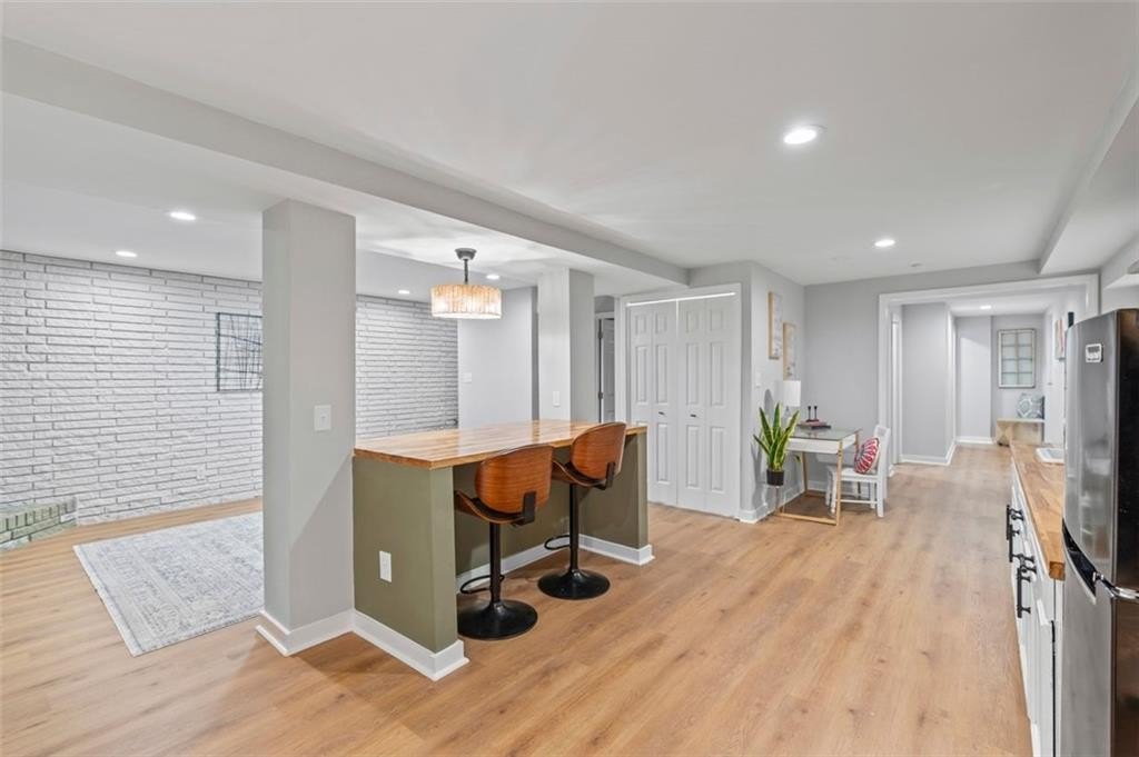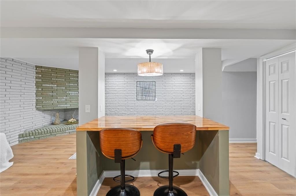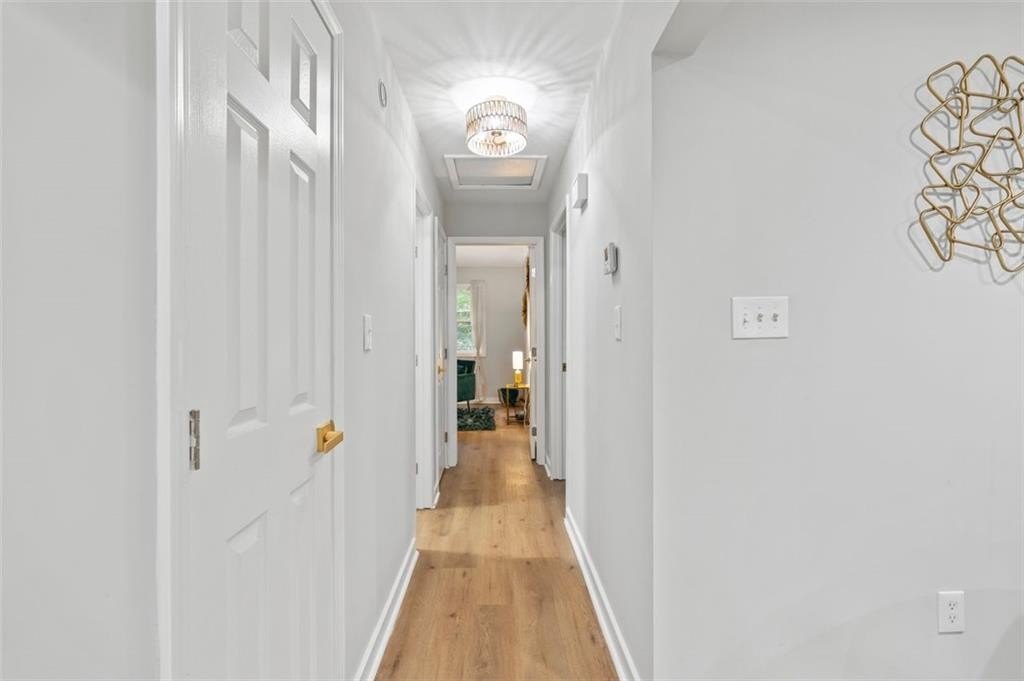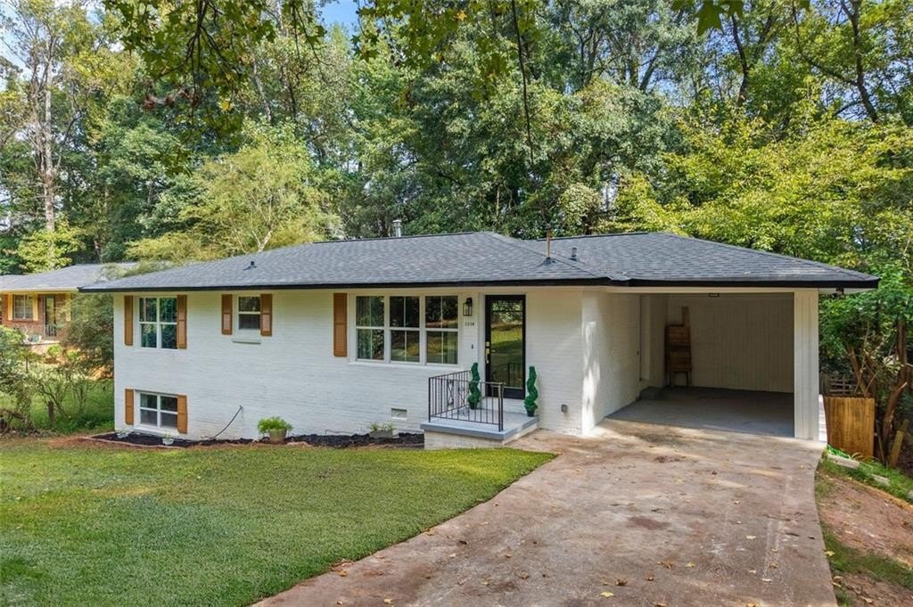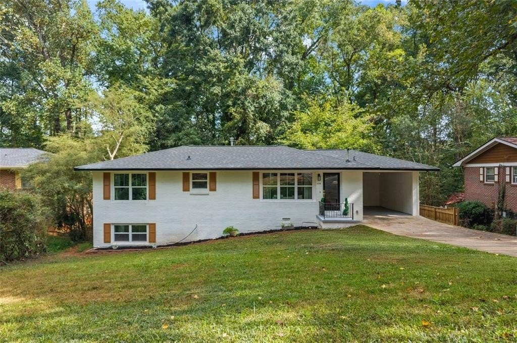 Welcome to this charming brick ranch, perfectly situated on a peaceful cul-de-sac and surrounded by mature trees. Fully renovated and move in ready, this home sits in an ideal location and is close to schools, shopping and restaurants. The main level of this home is a fabulous space to entertain, it's inviting, cozy and open concept. The spacious kitchen and dining area are both open to the living room. You'll find two spacious bedrooms and two full baths down the hallway. Entire house has been renovated with new LVP flooring throughout, new windows, new cabinetry, fixtures and paint. Renovations also include a new roof, HVAC, water heater and SS appliances. With interior access, as well as a separate exterior entrance, the terrace level offers the perfect income producing opportunity. Make your investment work for you, and use the terrace level as an Air BnB or for a full time tenant. With it's exposed brick walls and corner fireplace, the terrace level feels like a modern garden apartment in New York City. This space conveniently offers a full bath, separate laundry area, an office nook, and a custom built kitchenette with an island overlooking the living area. New sliding doors lead to the outdoor patio and backyard area. Backyard is spacious, wooded and private. Attached one car garage and plenty of space to park in the driveway or in the cul-de-sac.