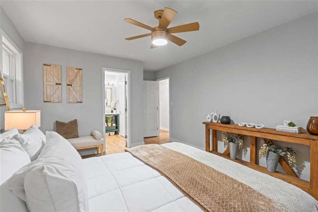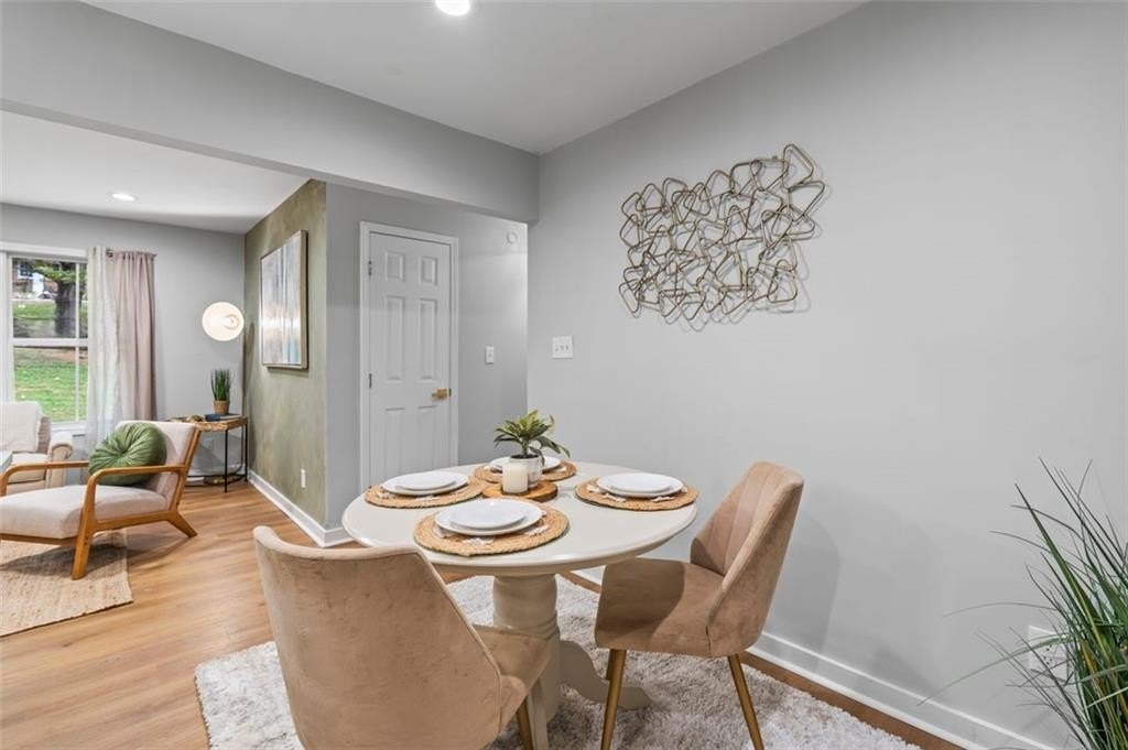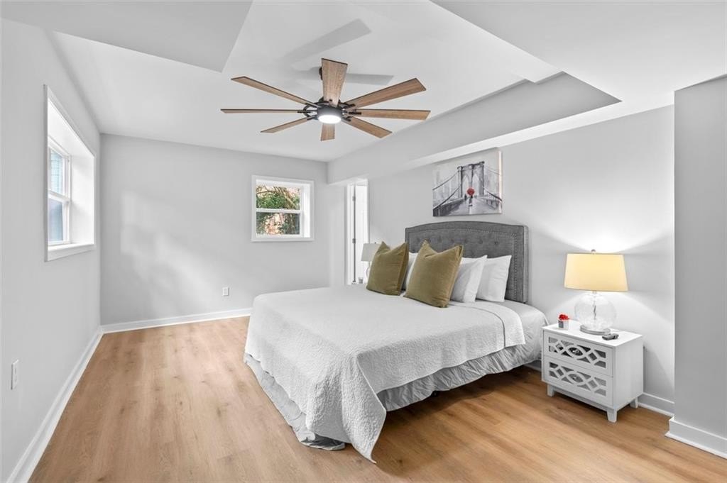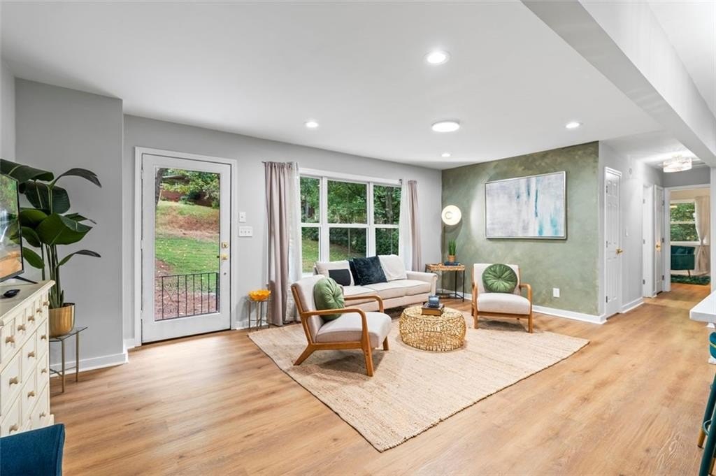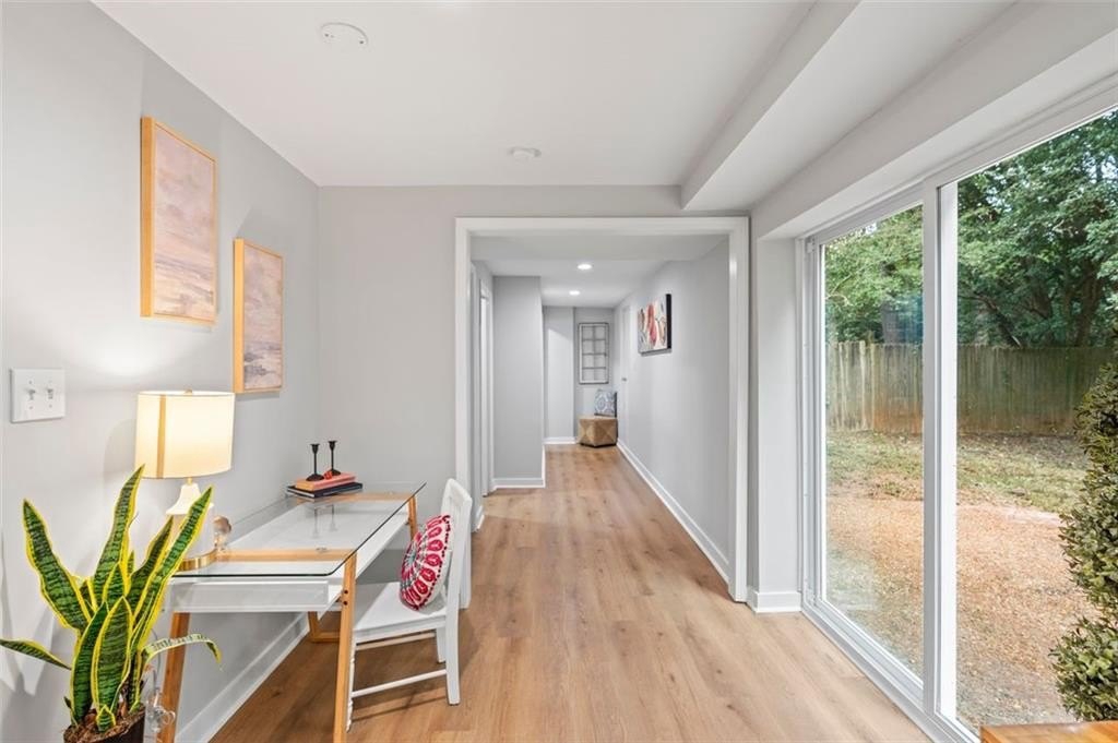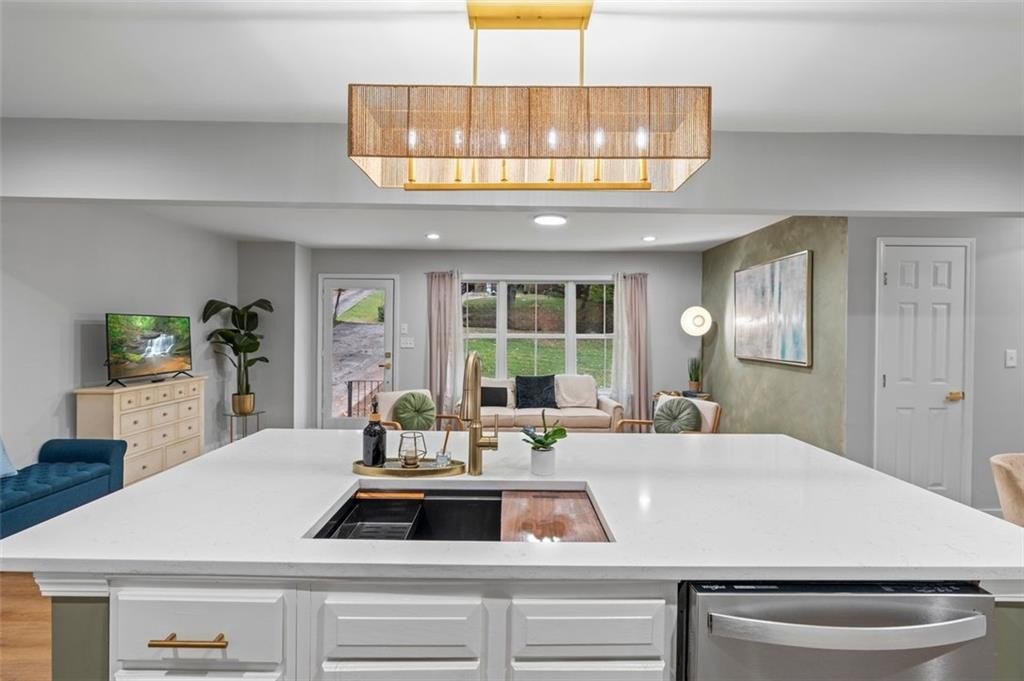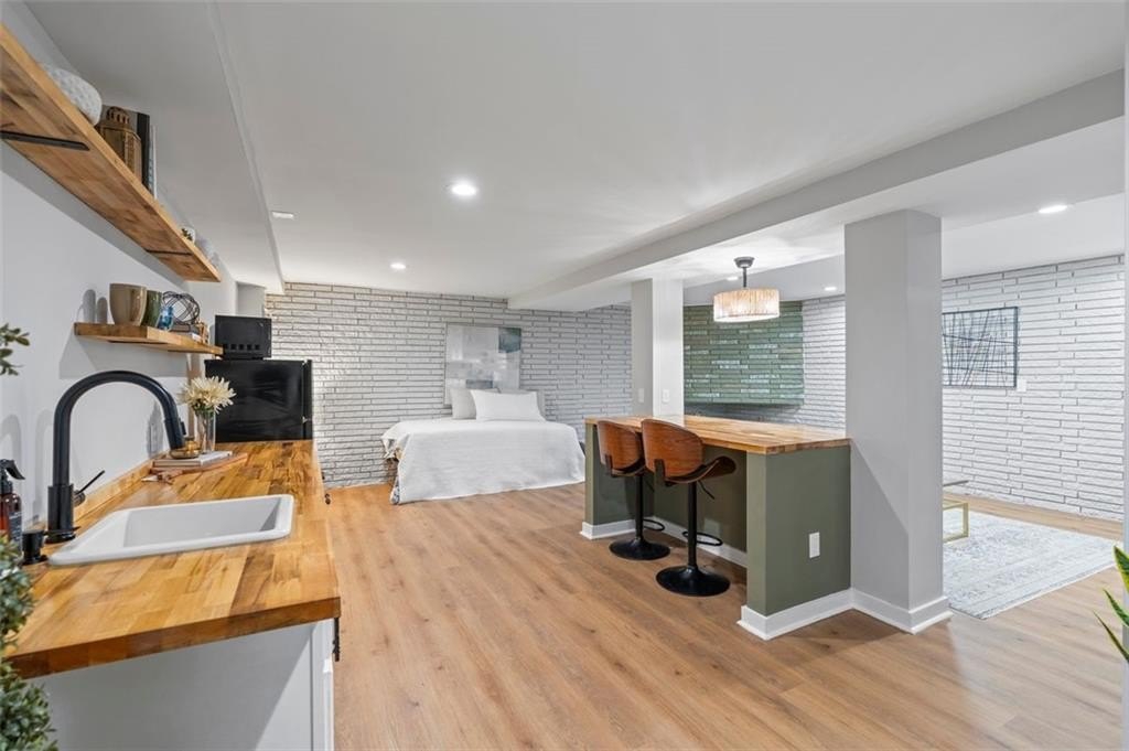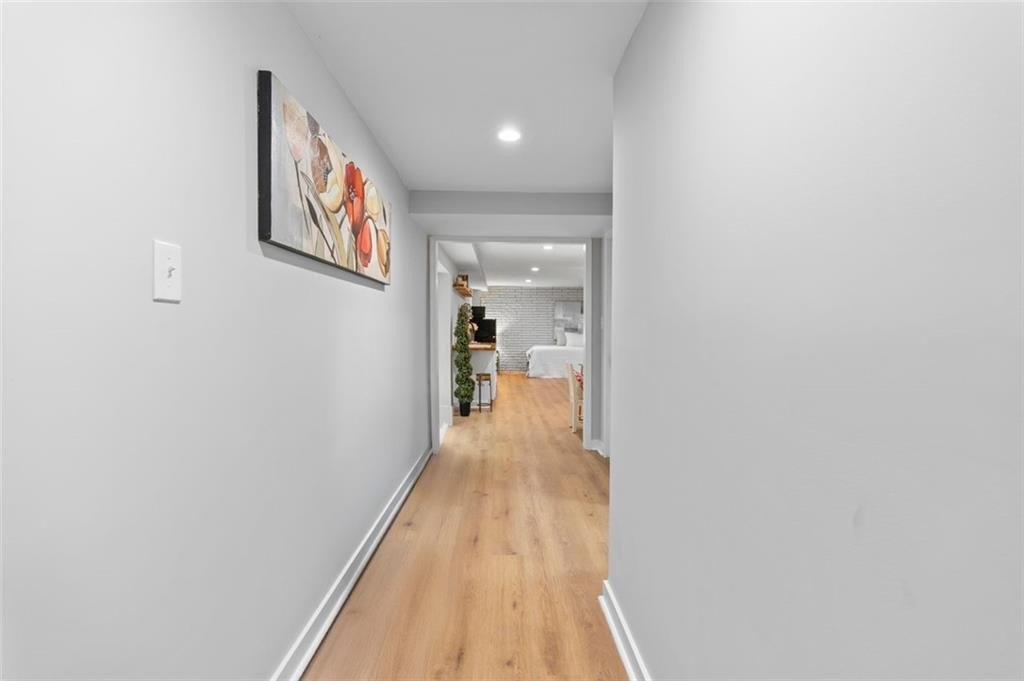 Welcome to this charming brick ranch, perfectly situated on a peaceful cul-de-sac and surrounded by mature trees. Fully renovated and move in ready, this home sits in an ideal location and is close to schools, shopping and restaurants. The main level of this home is a fabulous space to entertain, it's inviting, cozy and open concept. The spacious kitchen and dining area are both open to the living room. You'll find two spacious bedrooms and two full baths down the hallway. Entire house has been renovated with new LVP flooring throughout, new windows, new cabinetry, fixtures and paint. Renovations also include a new roof, HVAC, water heater and SS appliances. With interior access, as well as a separate exterior entrance, the terrace level offers the perfect income producing opportunity. Make your investment work for you, and use the terrace level as an Air BnB or for a full time tenant. With it's exposed brick walls and corner fireplace, the terrace level feels like a modern garden apartment in New York City. This space conveniently offers a full bath, separate laundry area, an office nook, and a custom built kitchenette with an island overlooking the living area. New sliding doors lead to the outdoor patio and backyard area. Backyard is spacious, wooded and private. Attached one car garage and plenty of space to park in the driveway or in the cul-de-sac.