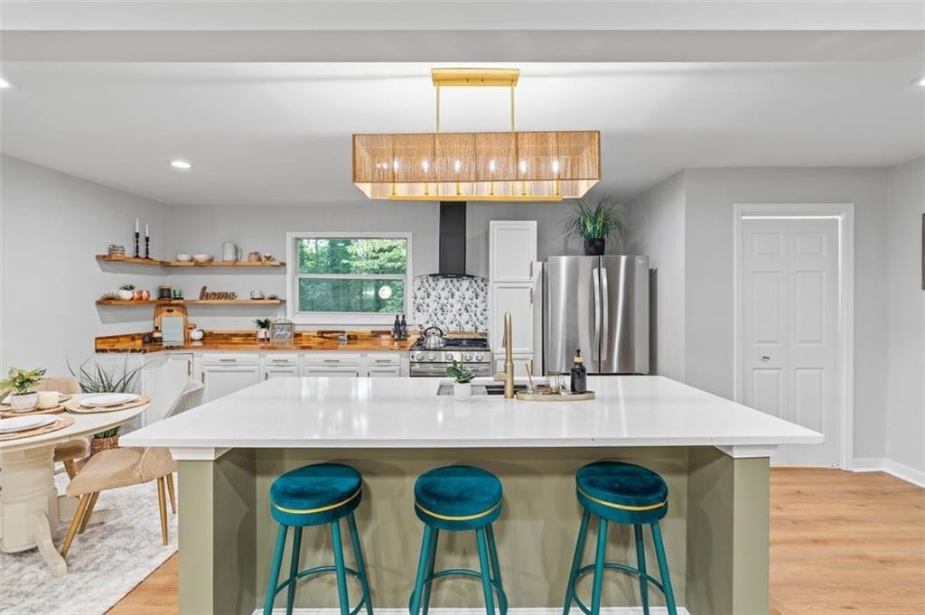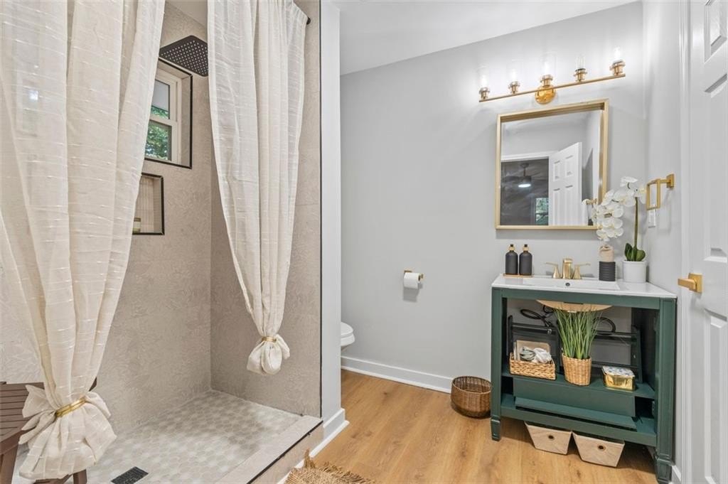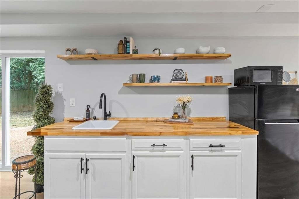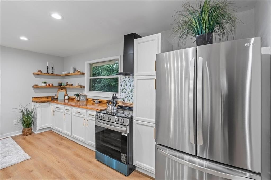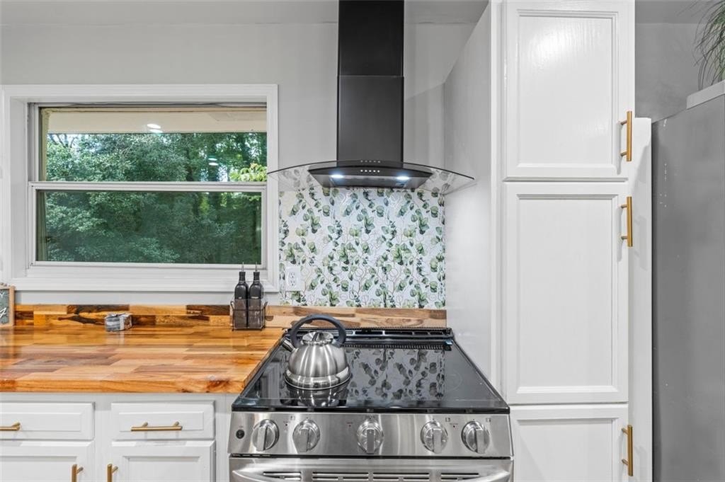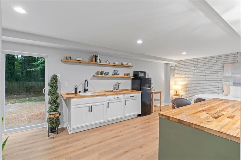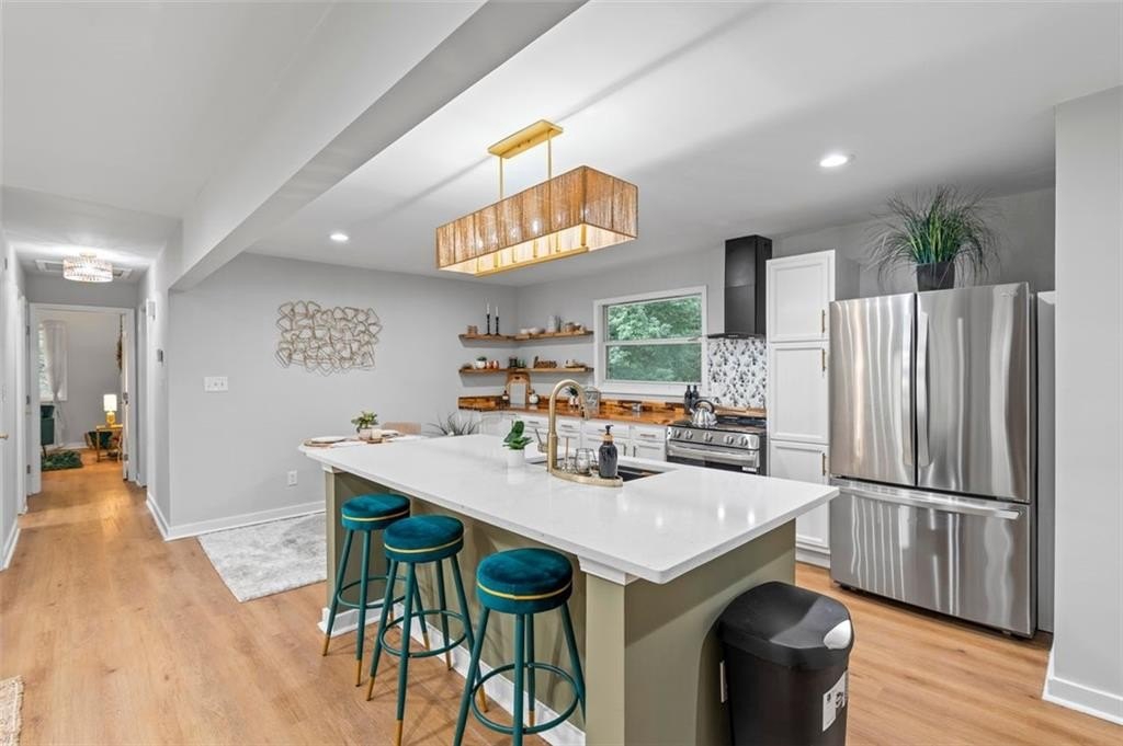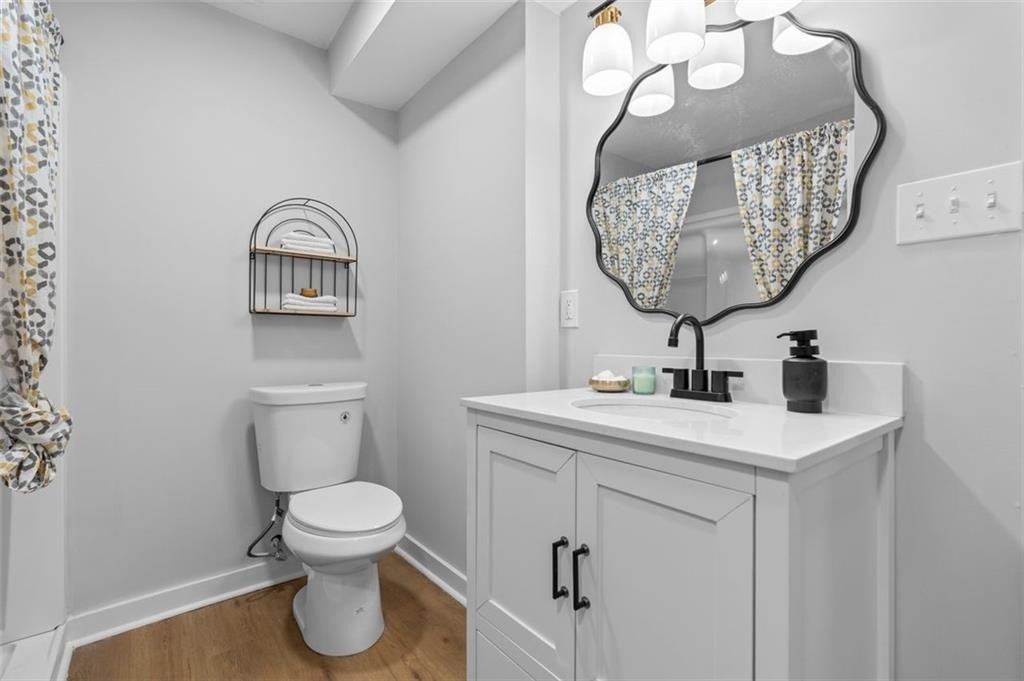 Welcome to this charming brick ranch, perfectly situated on a peaceful cul-de-sac and surrounded by mature trees. Fully renovated and move in ready, this home sits in an ideal location and is close to schools, shopping and restaurants. The main level of this home is a fabulous space to entertain, it's inviting, cozy and open concept. The spacious kitchen and dining area are both open to the living room. You'll find two spacious bedrooms and two full baths down the hallway. Entire house has been renovated with new LVP flooring throughout, new windows, new cabinetry, fixtures and paint. Renovations also include a new roof, HVAC, water heater and SS appliances. With interior access, as well as a separate exterior entrance, the terrace level offers the perfect income producing opportunity. Make your investment work for you, and use the terrace level as an Air BnB or for a full time tenant. With it's exposed brick walls and corner fireplace, the terrace level feels like a modern garden apartment in New York City. This space conveniently offers a full bath, separate laundry area, an office nook, and a custom built kitchenette with an island overlooking the living area. New sliding doors lead to the outdoor patio and backyard area. Backyard is spacious, wooded and private. Attached one car garage and plenty of space to park in the driveway or in the cul-de-sac.