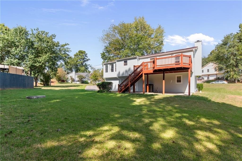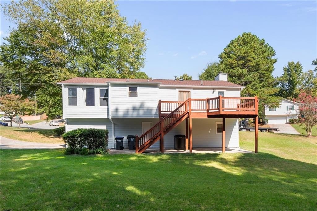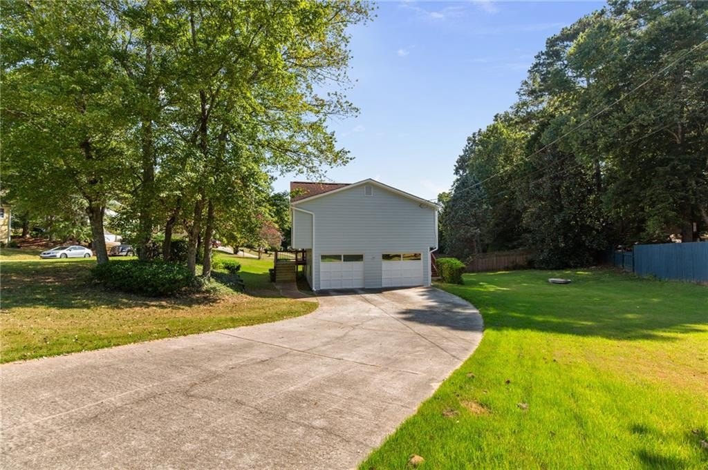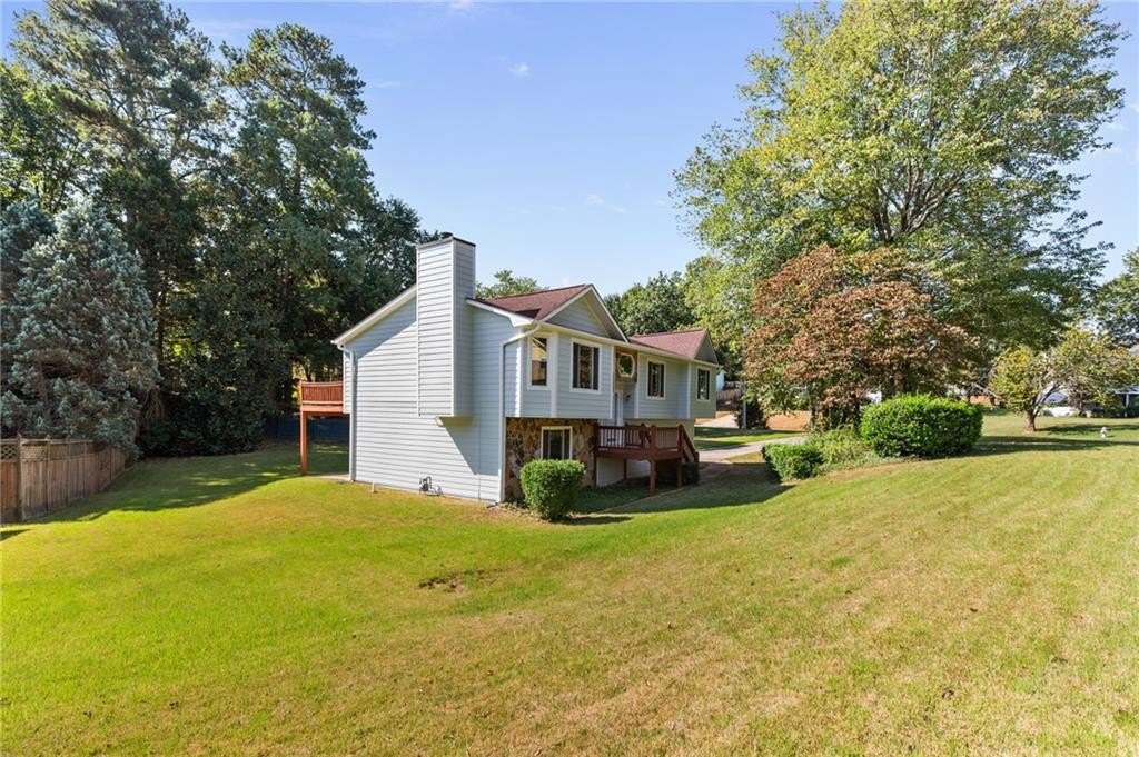 Meticulously maintained split-level home in Lawrenceville's Collins Hill HS District that's looking for new owners to call home! This 4 bed, 3 bath home includes spacious living space with newly painted exterior & hardiplank siding plus updated Champion Windows! As soon as you step inside you're greeted by split level foyer with views into the fireside family and open concept dining area. Tall vaulted ceilings, gas stone fireplace, and natural light make this the heart of the home. Kitchen includes tons of storage space, stained cabinets, luxury vinyl plank flooring and views into the backyard. Primary suite has tall ceilings, garden tub, walk in shower and natural light. Two more bedrooms share a full bath on the main! The lower level includes a generous bedroom and full bathroom, ideal for an in-law or teen suite! Full laundry room, access to the two car garage and driveway plus tons of storage make this house a must see. The beautifully landscaped yard features a large deck overlooking the backyard perfect for relaxing or entertaining. Roof is 10 years old with architectural shingles that will last 35 years. Don't miss this wonderful opportunity to own a move-in-ready home in a great location! A few miles from grocery stores, Northside Hospital Gwinnett, Georgia Gwinnett College, Collins Hill Park and so much more.