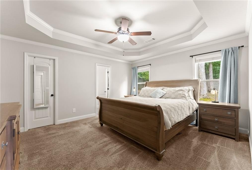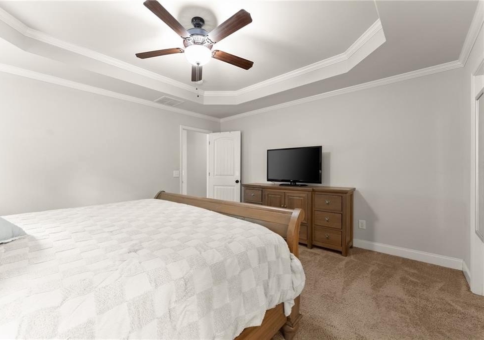 The main-level primary suite is a private retreat featuring a spacious walk-in closet, dual vanity, soaking tub, and separate shower. Upstairs, the oversized suite offers endless flexibility—perfect for guests, a second primary, home office, or media room—and you’ll also find a walk-in attic for easy storage.