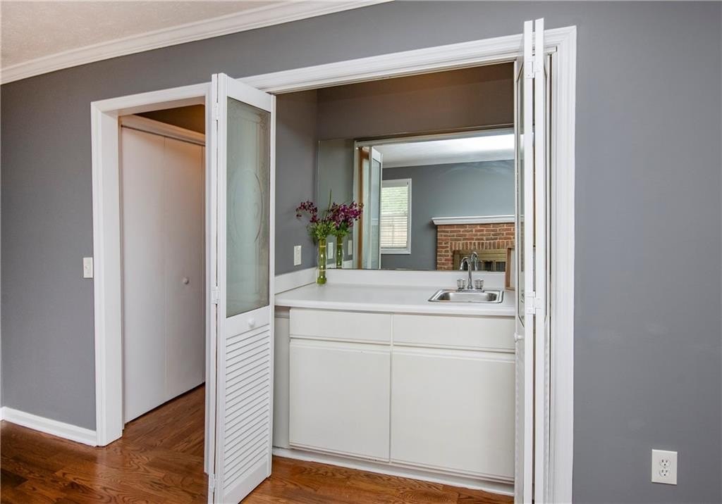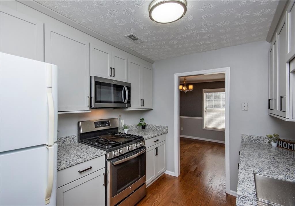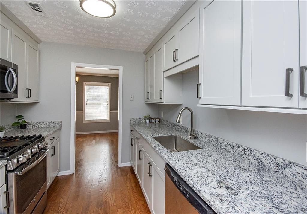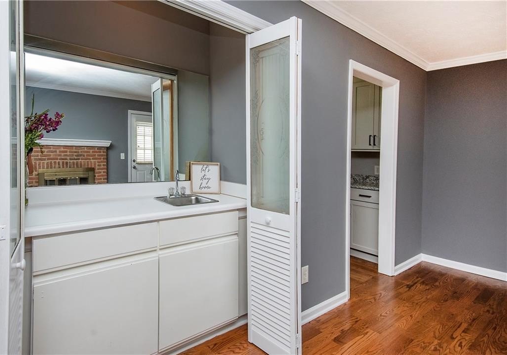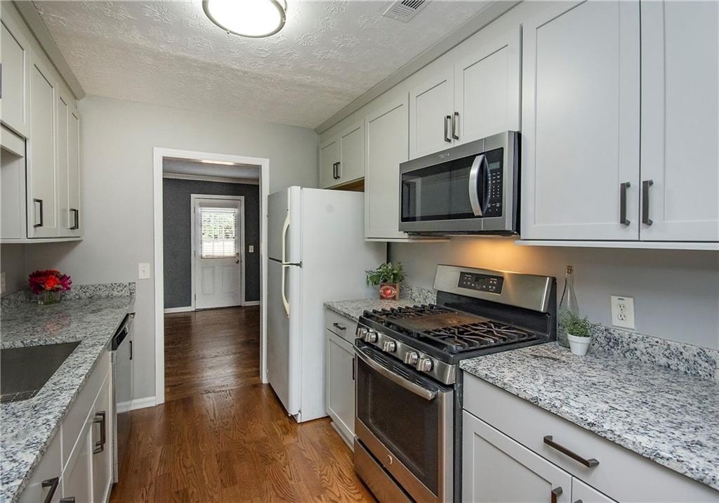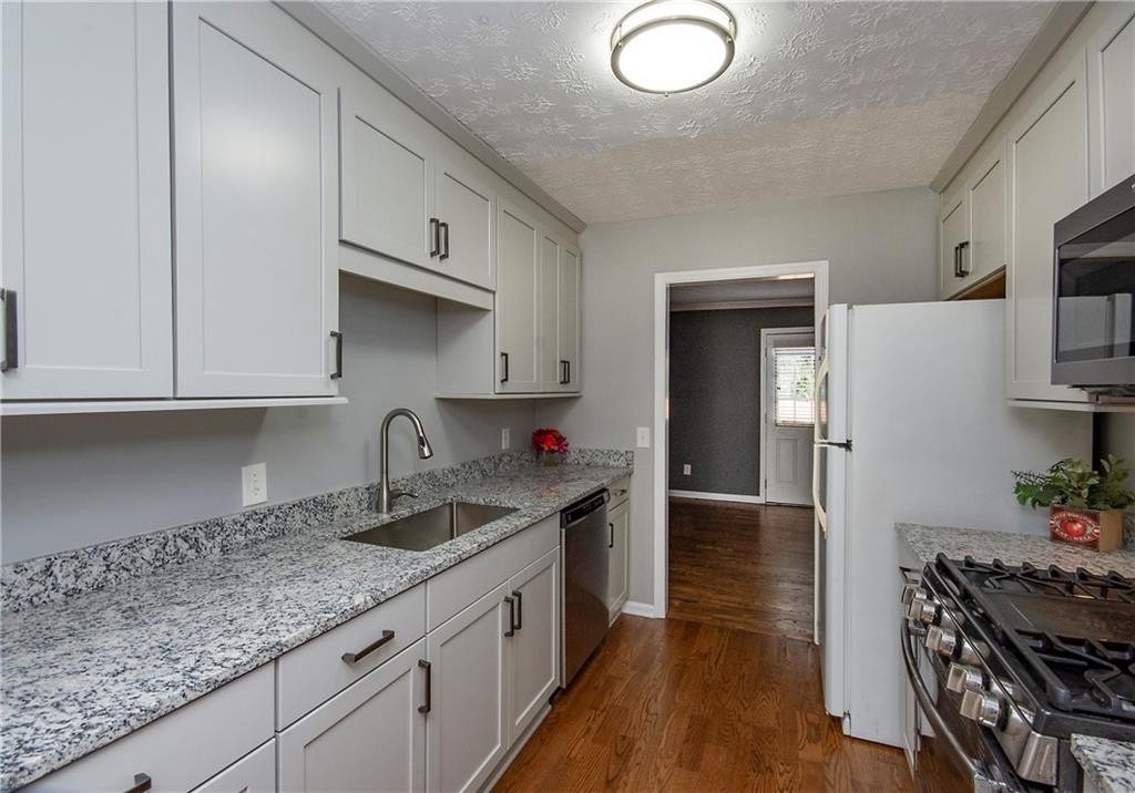 Step inside to discover a freshly painted interior that invites you into a seamless flow of living spaces with gleaming hardwood floors. The large separate dining room and spacious living room are perfect for entertaining guests or enjoying quiet evenings at home. The kitchen boasts a sleek stainless steel stove and dishwasher, complemented by brand new stylish cabinetry and granite counters. Refinished hardwood floors add a touch of elegance to the entire first floor while brand new carpet in the bedrooms provides cozy comfort. The living room features a fireplace and built-in wet bar. Upstairs each of the two owner's suites is a personal retreat, complete with dressing areas, 2 closets, and en suite bathrooms that promise privacy and relaxation. Both bedrooms are large, and there is an additional linen closet upstairs. The dining room and foyer each have closets, to ensure you have plenty of storage in every room. Outside, the townhouse shines with fresh exterior paint and some new siding, and newly installed fence that encloses a serene yard. A storage room off the patio ensures you have ample space for additional storage. The HVAC system is around 7 years old, ensuring comfort for many years to come. Enjoy the convenience of an included washer and dryer in the downstairs laundry room, 2 dedicated parking spaces right outside your front door, and additional parking in the cul-de-sac at the end of the street. Situated next to Campbell Middle School and close to Smyrna Market Village, this townhouse offers easy access to parks, shopping, dining, and more. Embrace the lifestyle you've been dreaming of in a nice community without the burden of HOA fees or restrictions. With its desirable location, polished condition, NO HOA nor rental restrictions, 1505 Paces Ferry North SE is a must-see for those seeking a smart investment and a place to call home.