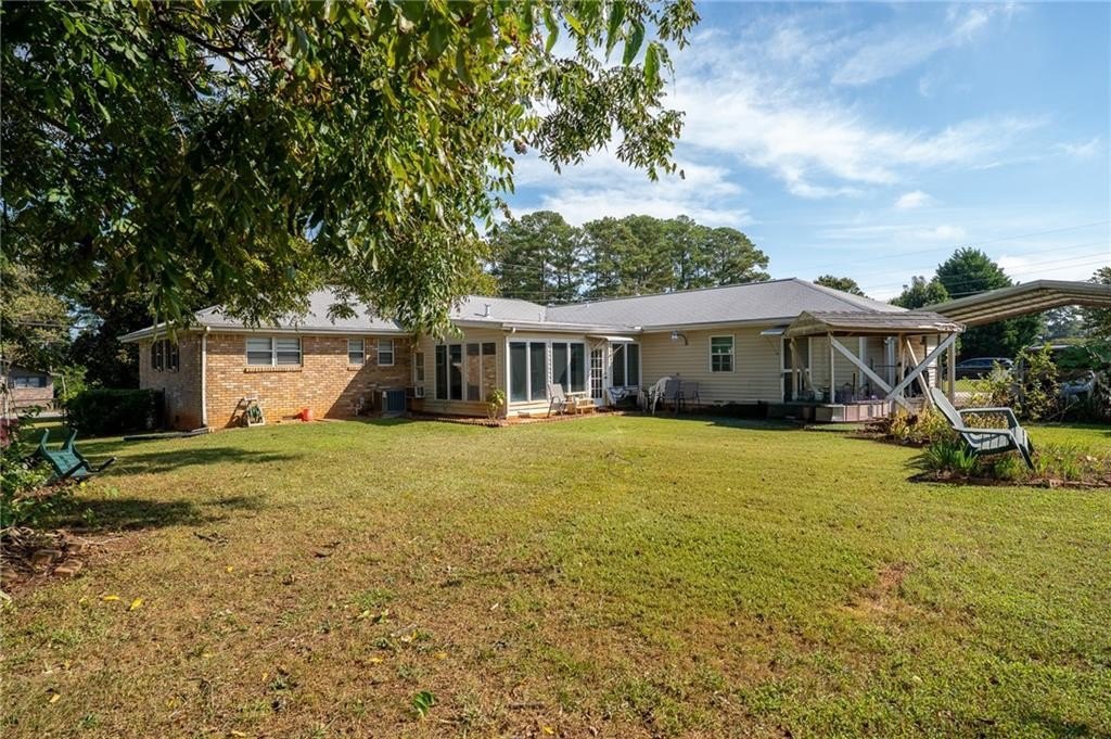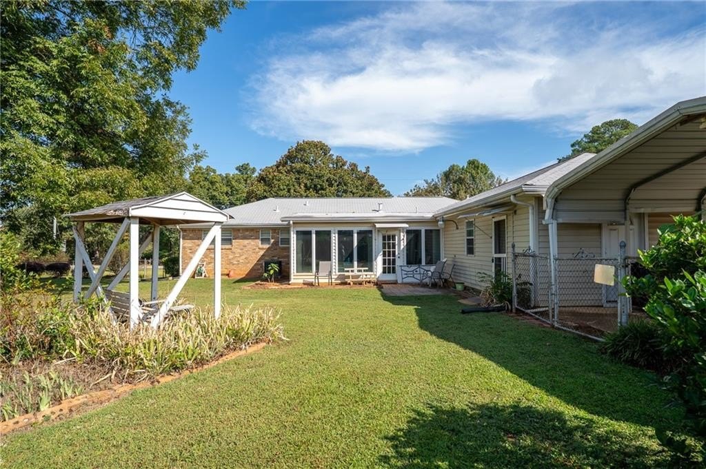 The level, fenced backyard is ideal for outdoor enjoyment, while the attached awning provides additional covered parking. Other highlights include a laundry room off the kitchen, two-car garage, and a separate workshop for extra storage or hobbies.