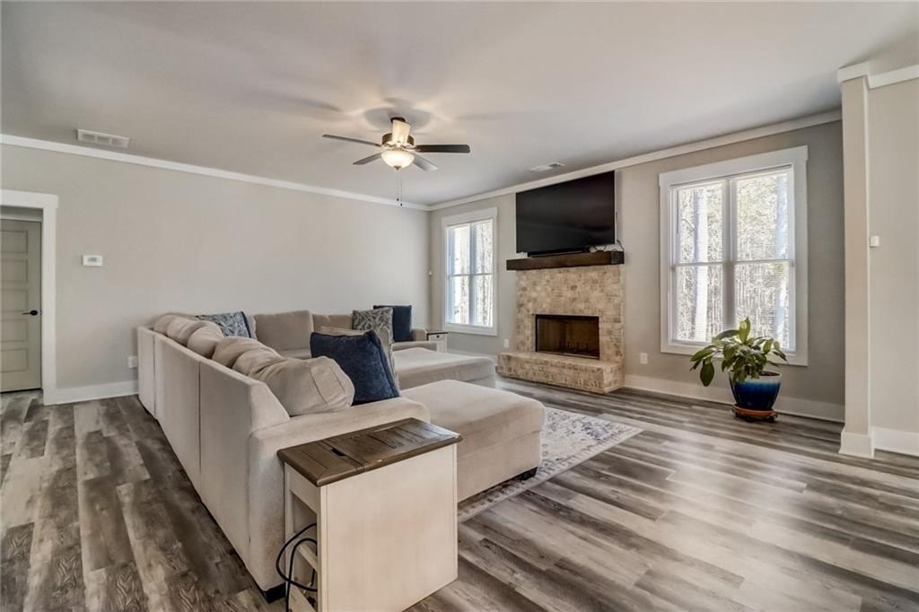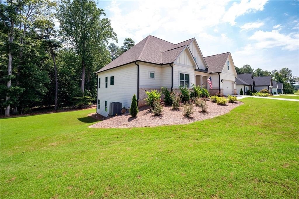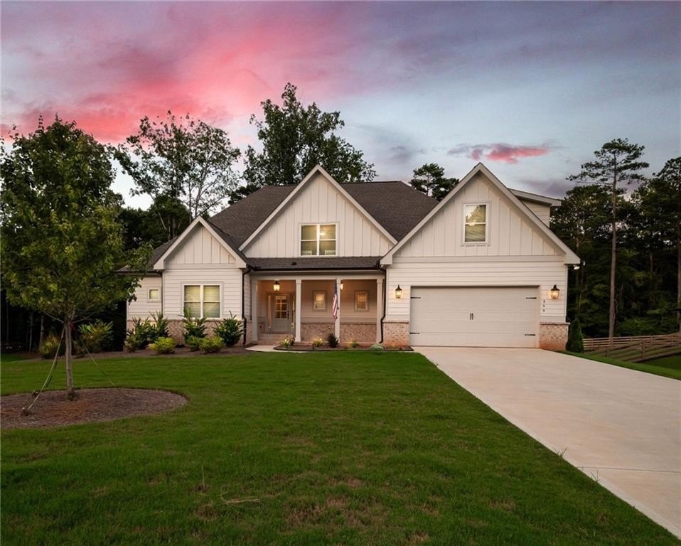 Come home to one of Monroe's hottest new subdivisions, The Oaks at Alcovy! This particular home is located on an 1800+ sq ft unfinished daylight basement on the largest lot in the development (almost a full acre) on a cul-de-sac, providing extra privacy and a gorgeous wooded view off the back deck. Inside you will find high-end finishes throughout, including luxury flooring in the open-concept living area, energy-efficient stainless steel appliances, granite counters, matte black fixtures, soft-close drawers and cabinets, and fully tiled baths. Coming in from the garage you have the perfect space for the kids to drop all of their sports gear and back packs in the mudroom area complete with cubbies and hanging hooks. Adjacent is a large laundry room that is easy to close off and keep hidden from plain sight. The main floor features a large primary bedroom with an spacious ensuite featuring double vanity, frameless glass