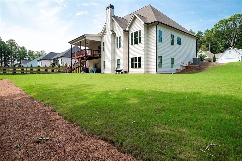 bedrooms and 2 baths with walk-in closet. The landscaped yard with RainBird sprinkler system is just begging for a pool! You will love entertaining this fall on your covered deck that offers plenty of room to hang a TV for watching all of your favorite sports teams! Located in the popular Walnut Grove school system and with only 41 homesites in this subdivision, you will meet lovely neighbors while still maintaining a modest & simple lifestyle. Come enjoy all that