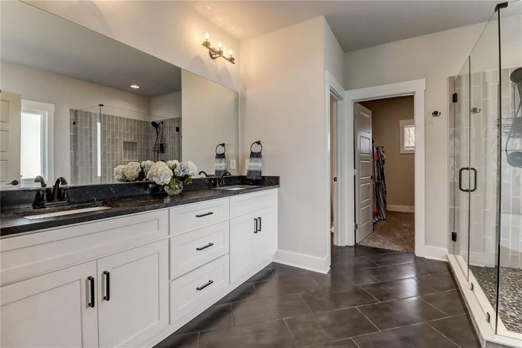 shower, separate soaking tub, and walk-in closet. There is also a secondary bedroom and full bath on the main floor. Upstairs are 3 additional