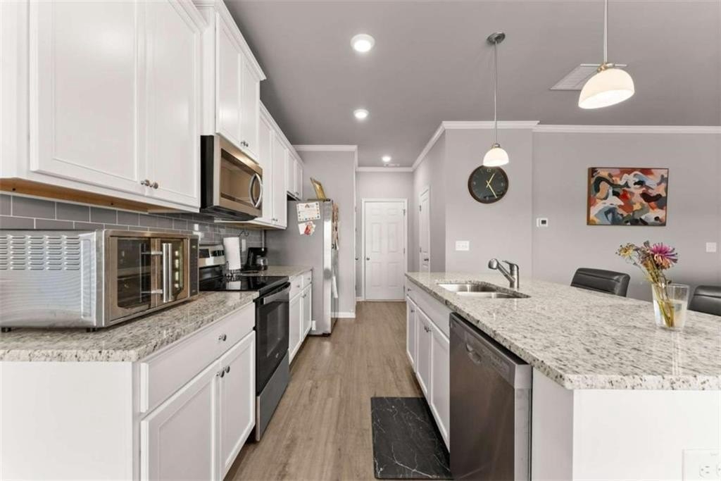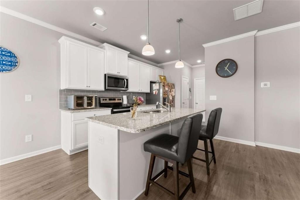 Buyer Incentives & Financing Options! Property may qualify for 100% financing and/or up to a $10,000 down payment grant through Ameris Bank, plus receive an additional $10,000 toward closing costs with preferred lender (must qualify). Beautiful corner-lot end-unit townhome in the desirable Silver Fox community, located in Hall County near Gainesville! This home features an open-concept floor plan, gourmet kitchen with granite countertops, stainless steel appliances, subway tile backsplash, and an oversized island. The family room offers a cozy electric fireplace and luxury vinyl plank flooring throughout the main level. The spacious owner's suite includes a tray ceiling, walk-in closet, and spa-style bath with dual vanities, soaking tub, and separate shower. Additional highlights include a versatile loft/flex space, 2-car garage, and private fenced backyard with an oversized cement pad perfect for entertaining. Enjoy community pool access, yard maintenance, and beautifully landscaped surroundings all just minutes from Lake Lanier, shopping, dining, schools, and I-985!