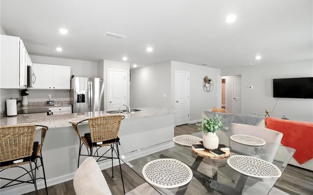 RELISTED - NEW PRICE - Motivated Sellers! Welcome to this beautifully designed two-story home, with an open concept floor plan. Built in 2023, offering a perfect blend of modern style and spacious comfort. NO HOA! Nestled in a peaceful cul-de-sac, it features 5 generously sized bedrooms, 3 full baths. One bedroom and a full bath on the main level, perfect for visitors, office space or multigenerational living. Step inside to find an open-concept floor plan with luxury vinyl flooring on the main, plush carpeting on the second level, recessed lighting throughout. The spacious kitchen boasts granite countertops, an oversized island, dining area and stainless-steel appliances. The expansive primary suite offers a private retreat, dual vanity, a walk-in closet. Each bedroom offers large closets providing ample storage space. Nicely landscaped yards with a covered front porch. The cul-de-sac location ensures low traffic and is a quiet walkable neighborhood. Other highlights include a dual HVAC system, a like new washer, dryer and refrigerator remaining in the home. A two-car garage plus additional parking spaces. NO HOA! Parks, walking trails, and Three Strands Vineyards minutes away. Up to $7,000 in lender credits with a 1% down payment option with preferred lender. Come see and feel the charm of the home and community.