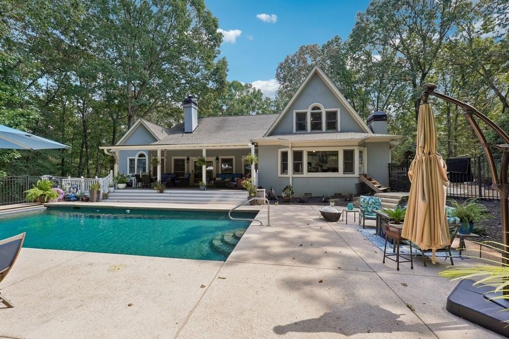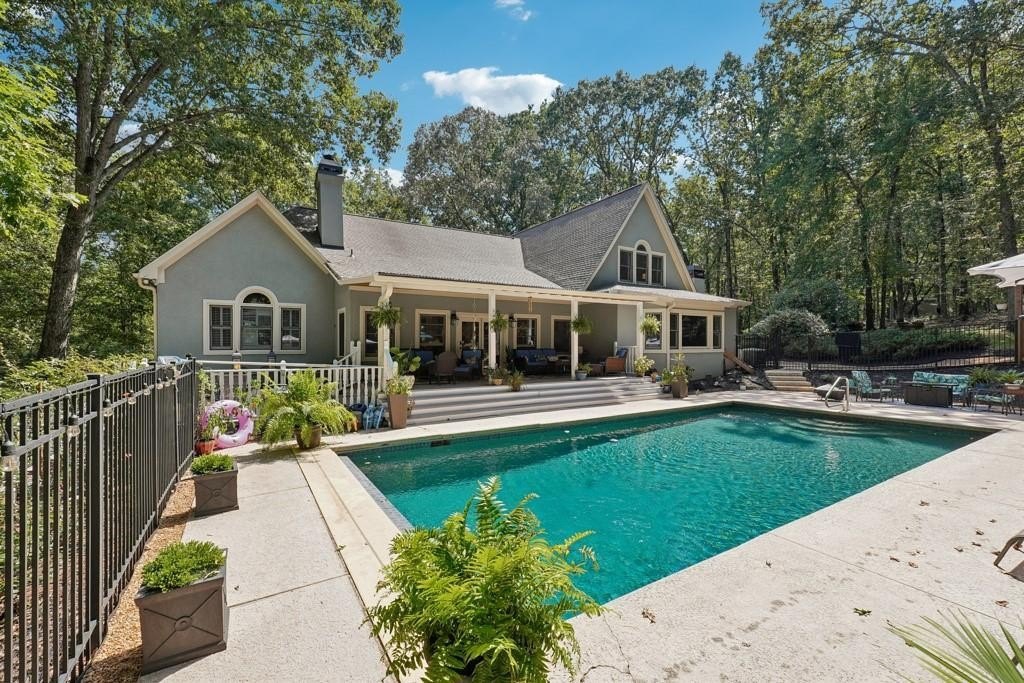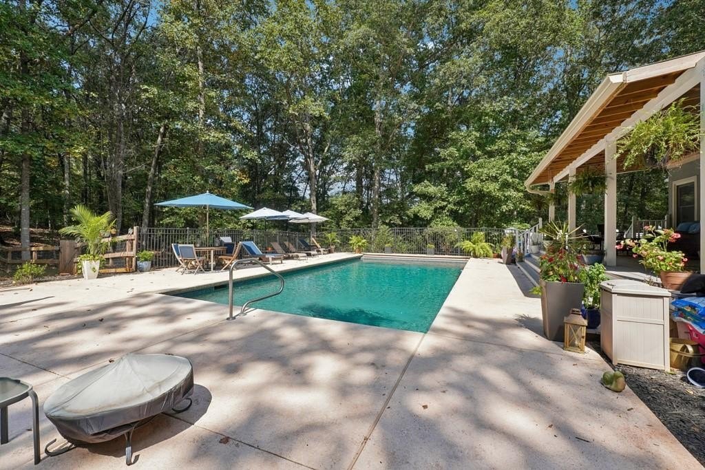 Tucked away in the heart of Douglasville, this stunning 5.23± acre estate offers the perfect blend of privacy, tranquility, and modern luxury—your very own mountain retreat without leaving the city. Recently updated inside and out, this beautiful home welcomes you with a circular front drive and a grand double staircase that opens into a spacious, open-concept floor plan. Elegant hardwood floors flow throughout the main level, seamlessly connecting each living space. As you enter on the left, a large formal dining room overlooks the front drive, perfect for hosting gatherings. The expansive fireside living room features soaring ceilings, custom built-ins on either side of the fireplace, and oversized windows that flood the space with natural light and provide a serene view of the sunroom and back deck. Open chef's kitchen, tons of cabinets, stainless farm sink, double ovens, huge island, and adjoining breakfast area open into a cozy keeping room, morning bar/wine frig with a stone fireplace and built-in window seat that over looks the pool and backyard. From here, step directly into the sunroom or onto the oversized covered deck, all perfect areas for entertaining or simply relaxing while enjoying the peaceful, wooded views. A side-entry garage with a private driveway offers convenient access for unloading groceries or additional parking. The main-level primary suite is a true retreat, complete with its own fireplace, entry to sunroom, includes a luxurious spa-like bath featuring a freestanding vessel tub, walk-in shower, private water closet, double sink vanity, tons of cabinets, and a special seated mirror area and two huge walk-in closets. Tucked within the suite is a hidden spiral staircase that leads to a private office/den below—ideal for a home business or secluded gym. This lower level area also has its own private entrance and space for storage, a workout room, or an additional living area. Upstairs, you’ll find two oversized bedrooms with generous closets and a recently renovated Jack-and-Jill bathroom, offering comfort and privacy for family or guests. Other highlights of the main level include: A spacious laundry room with abundant storage, utility sink, and organization space A large updated powder room, multiple storage closets throughout. Step outside to enjoy the fenced backyard oasis, featuring: A newly built, covered upper deck, a lower open deck—perfect for grilling and gathering A large gunite pool, ideal for hot summer days Nature lovers will appreciate the abundant wildlife and peaceful surroundings, while still being just minutes from shopping, dining, top-rated schools, interstates, and all that Douglasville has to offer.