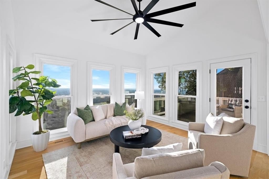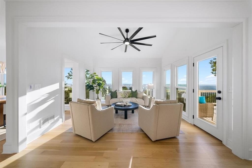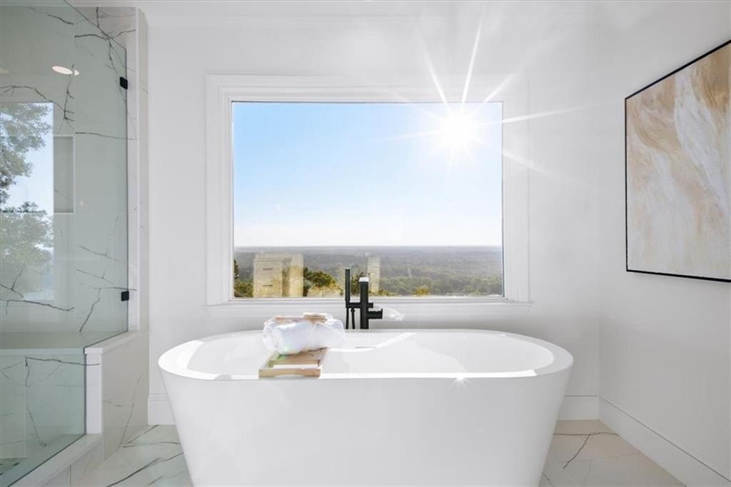 Perched atop Sweat Mountain in the sought-after Highland Pointe neighborhood, this fully renovated home captures sweeping views that stretch all the way to the East and West, offering a front-row seat to nature’s most breathtaking displays. Wake up to panoramic sunrises over Stone Mountain and unwind with breathtaking sunsets from the front of your home. Thoughtful upgrades showcase a blend of modern luxury and timeless craftsmanship, making every space feel both elevated and inviting. The open main level is designed for everyday living and entertaining, featuring a chef’s kitchen with custom inset cabinetry, Taj Mahal quartzite counters, a waterfall island, and professional-grade appliances. Sun-filled living and dining spaces are framed by floor-to-ceiling windows and open to a brand-new deck with panoramic vistas. Upstairs, the serene primary suite offers a spa-inspired bath with a freestanding soaking tub, marble finishes, and a custom walk-in closet. Secondary bedrooms and bathrooms have all been fully updated with designer fixtures, flooring, and cabinetry. The newly finished terrace level provides flexible living with a custom wine bar, bedroom, full bath, and additional space for a media room, home gym, or office—all with views of the scenery beyond. Highland Pointe residents enjoy resort-style amenities including an Olympic-sized pool, swim team, four tennis courts, two lakes, walking trails, and year-round neighborhood events. Located in the top-ranked Davis Elementary, Mabry Middle, and Lassiter High districts, this home offers both luxury lifestyle and location in one of East Cobb’s most vibrant communities.