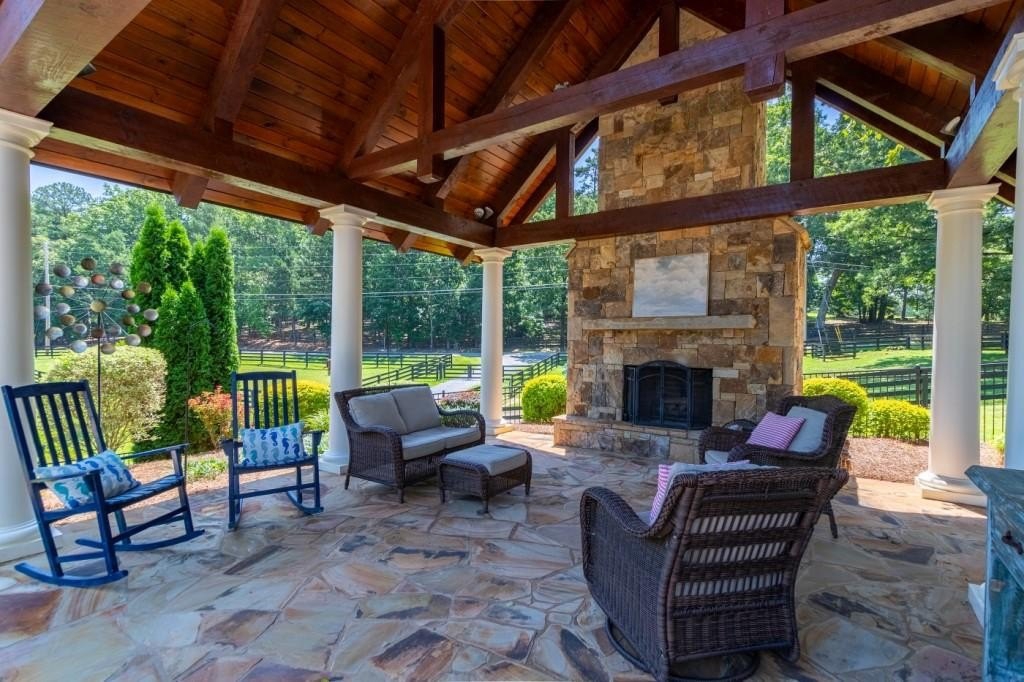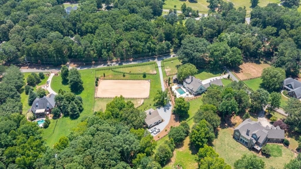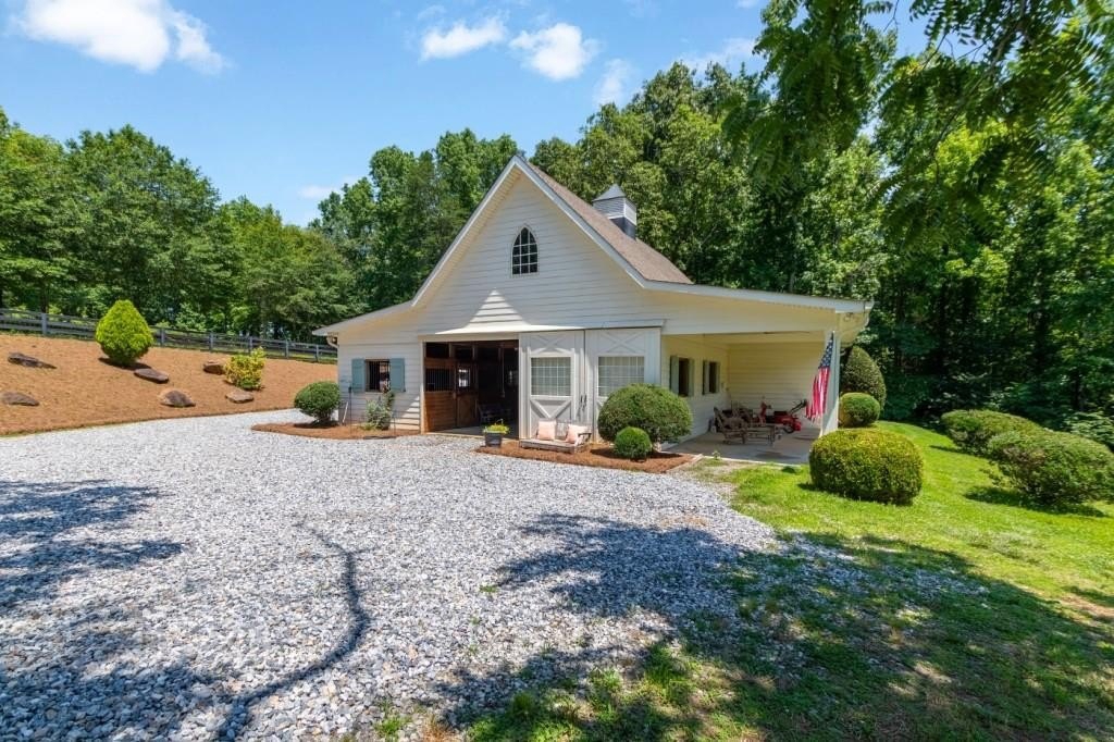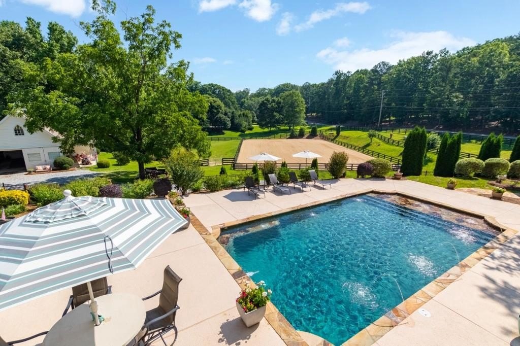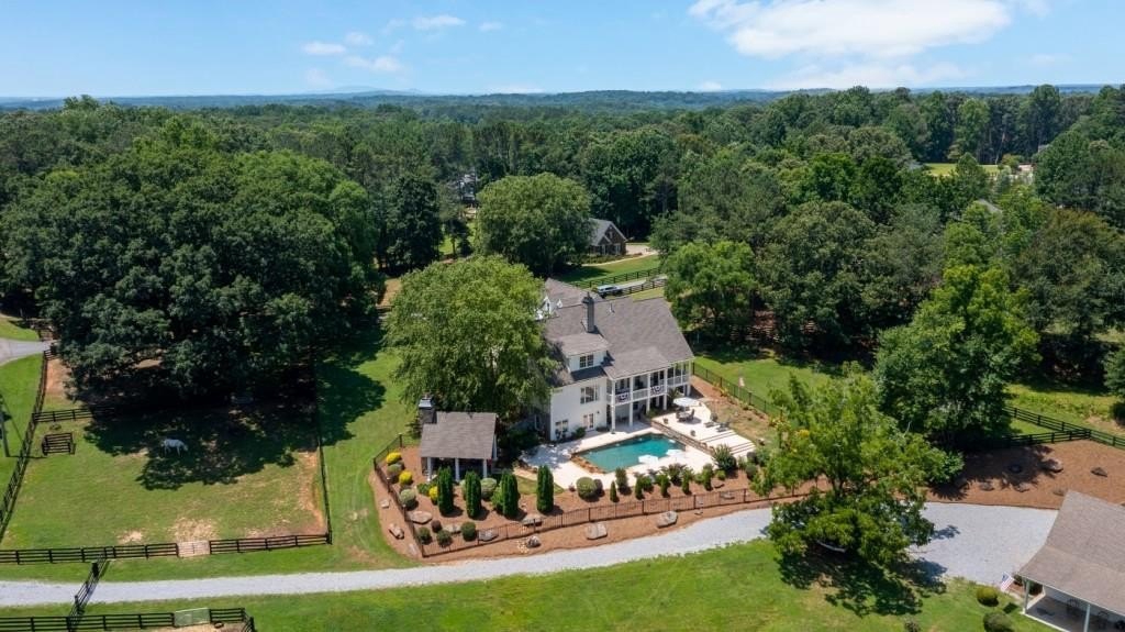 Quintessential hobby farm perfectly situated on 3.6 acres located in sought after East Cherokee County! Enjoy the lush grounds this property offers from the outdoor riding arena with irrigation, five stall center aisle way barn with tack room, outdoor pool pavilion with cedar shake roof/stack stone fireplace overlooking 20x40 saltwater pebble tec pool and additional barn for tractors & mowers. Gorgeous open floor plan concept with owners suite on main, two story great room overflowing with natural light, chefs kitchen with top of the line appliances, oversized island, quartz countertops and custom cabinetry. Secondary level offers 4 bedrooms with 2 bathrooms. Full finished terrace level with additional bedroom and bathroom, billiard room ideal for entertaining and ample storage space!