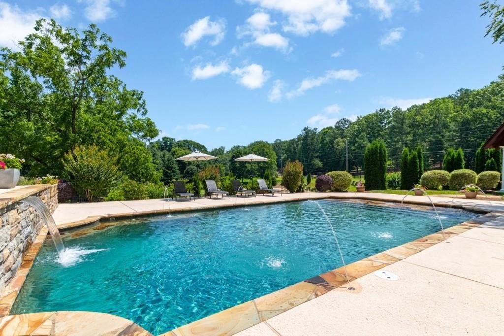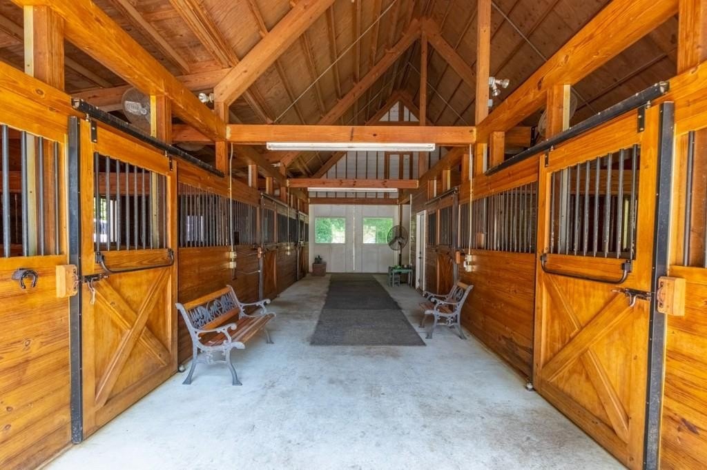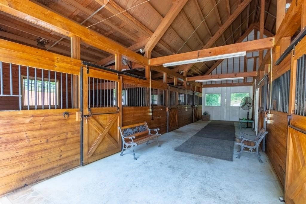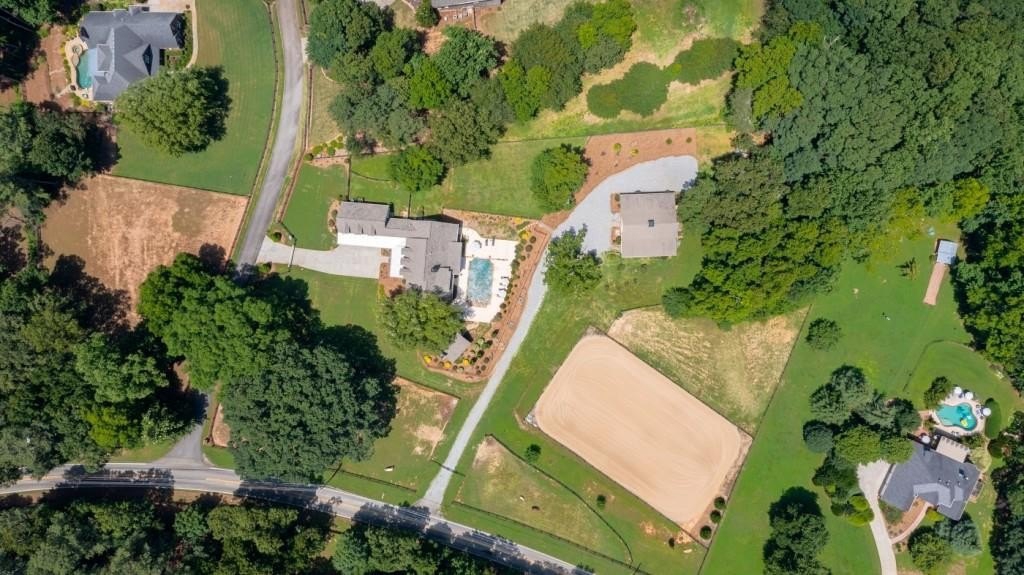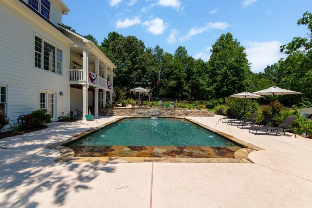 Quintessential hobby farm perfectly situated on 3.6 acres located in sought after East Cherokee County! Enjoy the lush grounds this property offers from the outdoor riding arena with irrigation, five stall center aisle way barn with tack room, outdoor pool pavilion with cedar shake roof/stack stone fireplace overlooking 20x40 saltwater pebble tec pool and additional barn for tractors & mowers. Gorgeous open floor plan concept with owners suite on main, two story great room overflowing with natural light, chefs kitchen with top of the line appliances, oversized island, quartz countertops and custom cabinetry. Secondary level offers 4 bedrooms with 2 bathrooms. Full finished terrace level with additional bedroom and bathroom, billiard room ideal for entertaining and ample storage space!