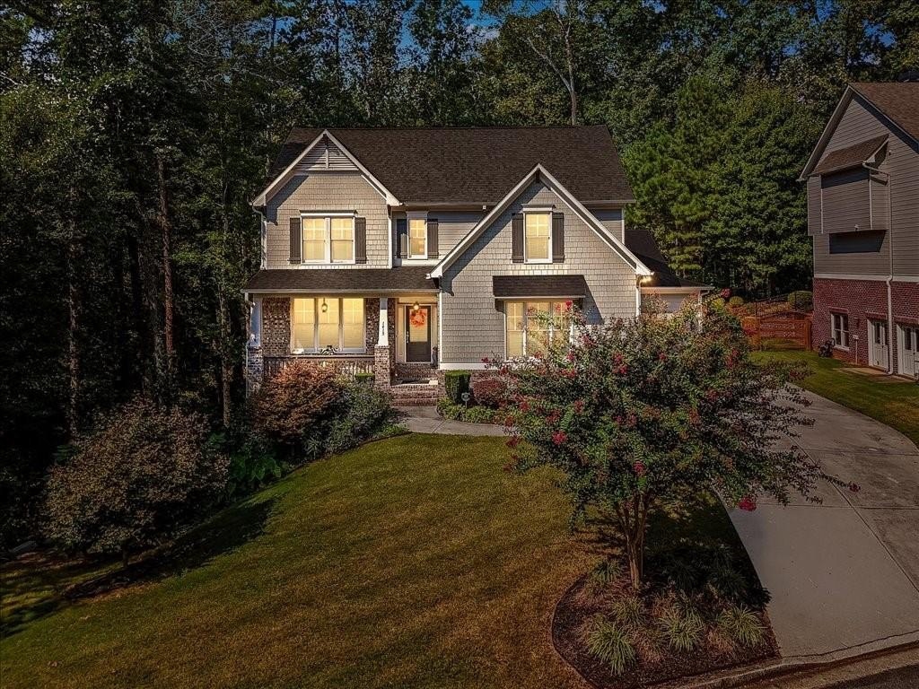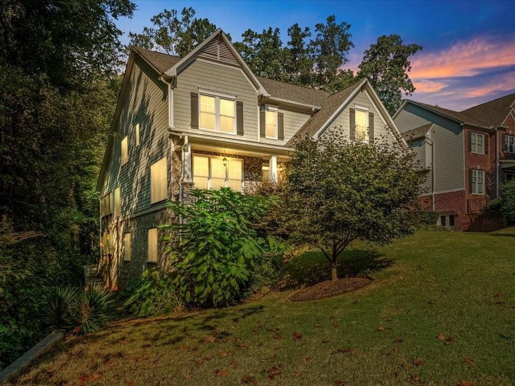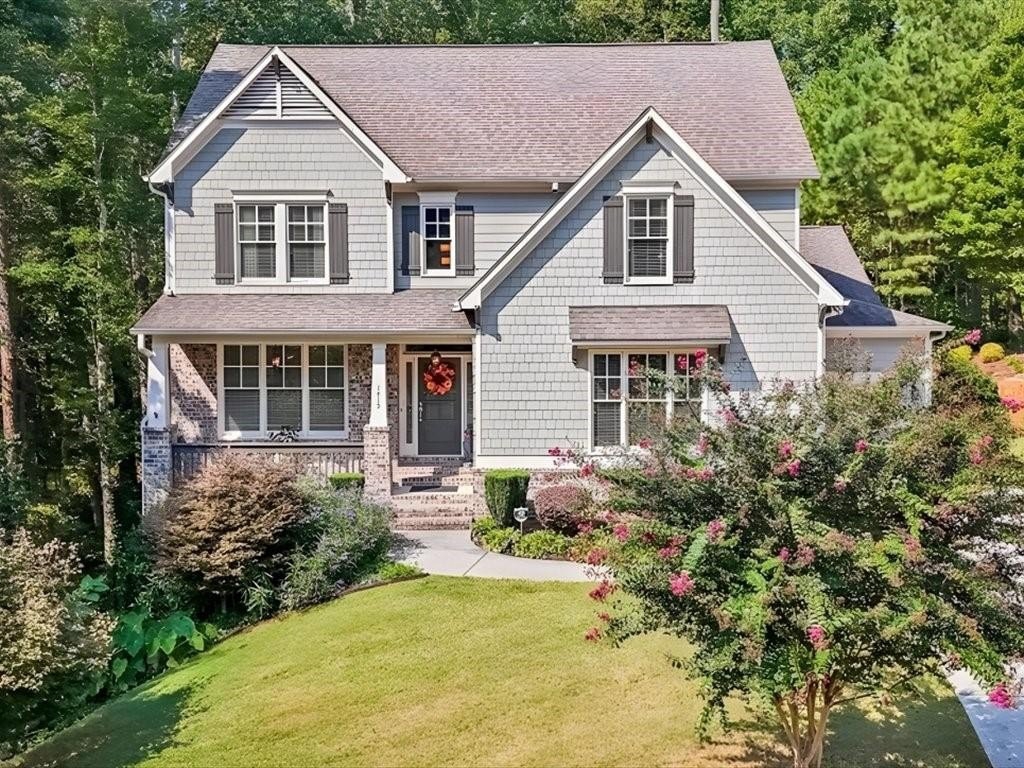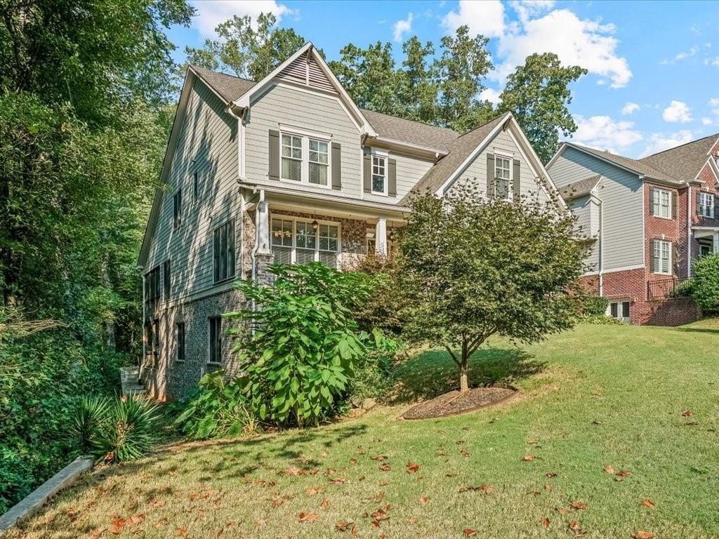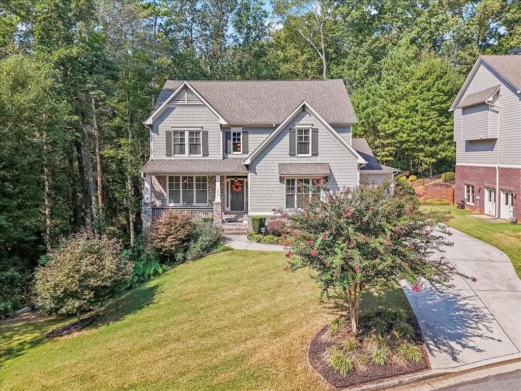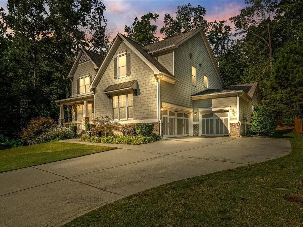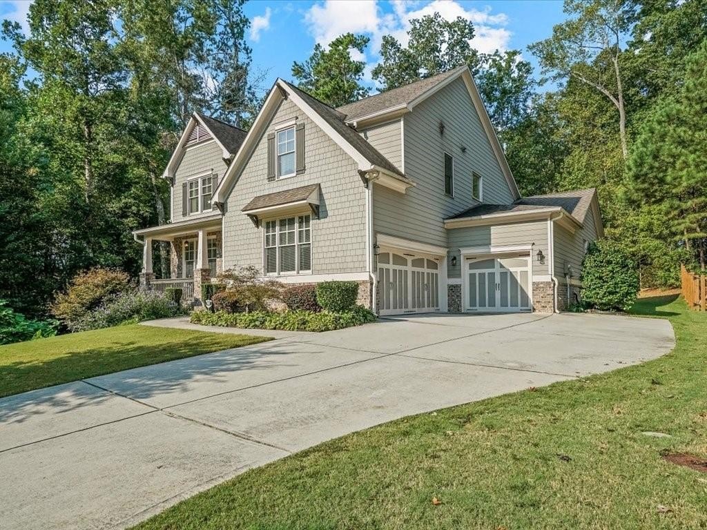 Welcome to 1415 Sutter’s Pond, a custom-crafted home that blends elegance, comfort, and rare privacy in one of West Cobb’s most sought-after communities. Set beside the neighborhood’s preserved greenspace and nature trail, it offers a lifestyle where mornings begin with sunlit interiors and evenings end outdoors, surrounded by trees and seasonal views of the pond. Curb appeal is undeniable with a blend of brick, premium fiber-reinforced cement siding installed in solid panels, and shaker accents, framed by a welcoming rocking-chair front porch. The seamless design enhances the timeless look while offering superior durability and low maintenance. Professional landscaping softens every angle — from blooming crepe myrtles and manicured beds in front to the lush tree line wrapping the property — giving the home both elegance and enduring strength from the very first glance. Inside, natural light spills across hardwood floors from the two-story foyer into the formal dining room and expansive main living area. From this vantage point, the upstairs catwalk with wrought iron balusters and elegant hand railing adds architectural detail and an open, airy feel. The kitchen anchors the home with an oversized island, granite countertops, abundant cabinetry, and double ovens. Expansive counter space and a breakfast bar make it as functional as it is beautiful, opening to a sunlit dining space that’s perfect for everyday meals or morning coffee. The living room is designed for both comfort and connection, with soaring ceilings, walls of windows, and custom built-ins framing the fireplace. It’s a true gathering space — filled with natural light by day and warmth by night — where everyday living and entertaining come together. The oversized main-level primary suite is a private sanctuary, framed by a trey ceiling, an abundance of windows offering natural lighting and wooded views. French doors lead to the ensuite, where a spa-like bath offers a deep soaking tub, a glass-enclosed shower with built-in bench, and dual vanities topped with marble. The walk-in closet connects directly to the laundry room, bringing both luxury and convenience to daily life. Upstairs, the elegant staircase leads to two bedrooms connected by a true Jack-and-Jill bath, each with its own vanity and walk-in closet. A third bedroom with trey ceilings enjoys the privacy of its own ensuite and vast walk-in closet. The bonus room — also set behind French doors — flexes easily as a media room, office, or potential fifth bedroom. The second laundry room completes the upstairs layout perfectly. Outdoor living feels like an extension of the home. The private screened porch invites coffee mornings and dinners al fresco. Framed by mature trees and seasonal views of Sutter’s Pond. Beyond the professionally added retaining wall — designed with drainage that carries water away from the home into the greenspace — are custom steps leading down the side of the property. From there, one of the community’s most treasured features awaits: the .7-mile walking trail around the pond, ensuring this side of the property will always remain private and wooded. The daylight, walk-out basement feels like a true extension of the home, accessed by matching hardwood stairs and railing rather than tucked behind a door. With tall ceilings, expansive windows, and a covered patio below, it’s a level ready to transform into anything you envision — from multigenerational living to an incredible entertainment space, or simply the dream layout you’ve always wanted. Sutter’s Pond is a conservation community, designed to preserve green space and provide natural amenities. Sidewalks, streetlights, and a community pool within walking distance, while top-rated Cobb County schools — zoned for Harrison High — complete the lifestyle. This is more than a house — it’s a home that captures the best of West Cobb living: elegance, privacy, convenience, and the ability to grow into the space for years to come.