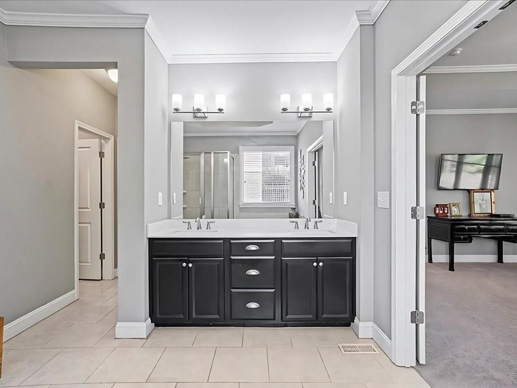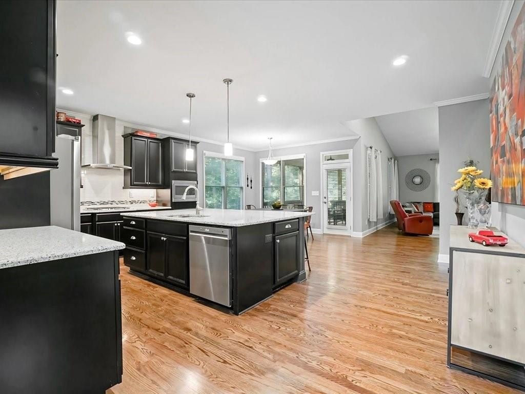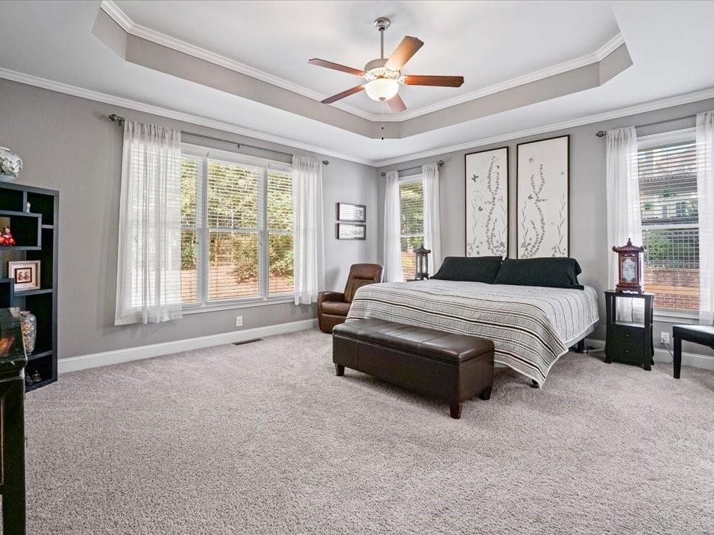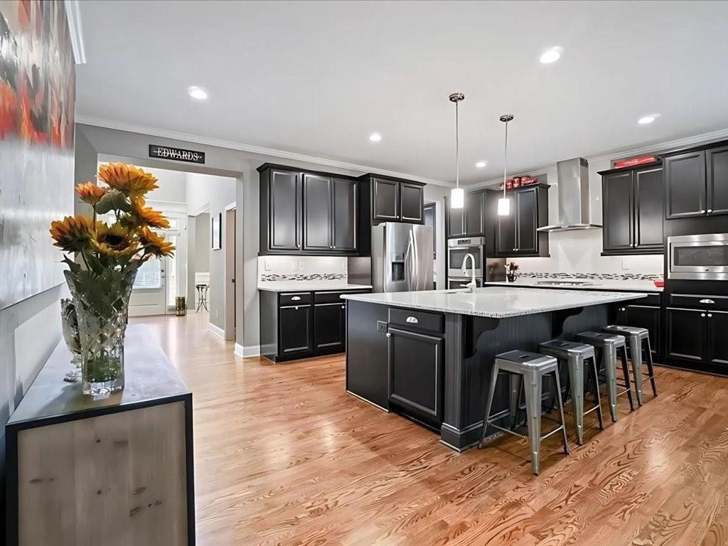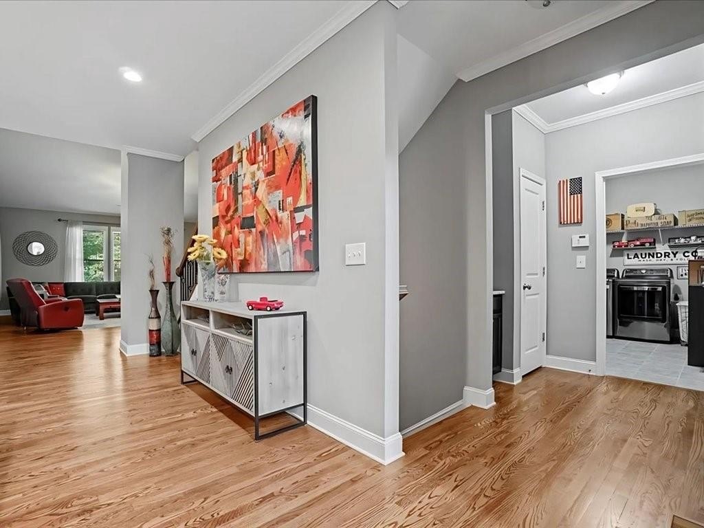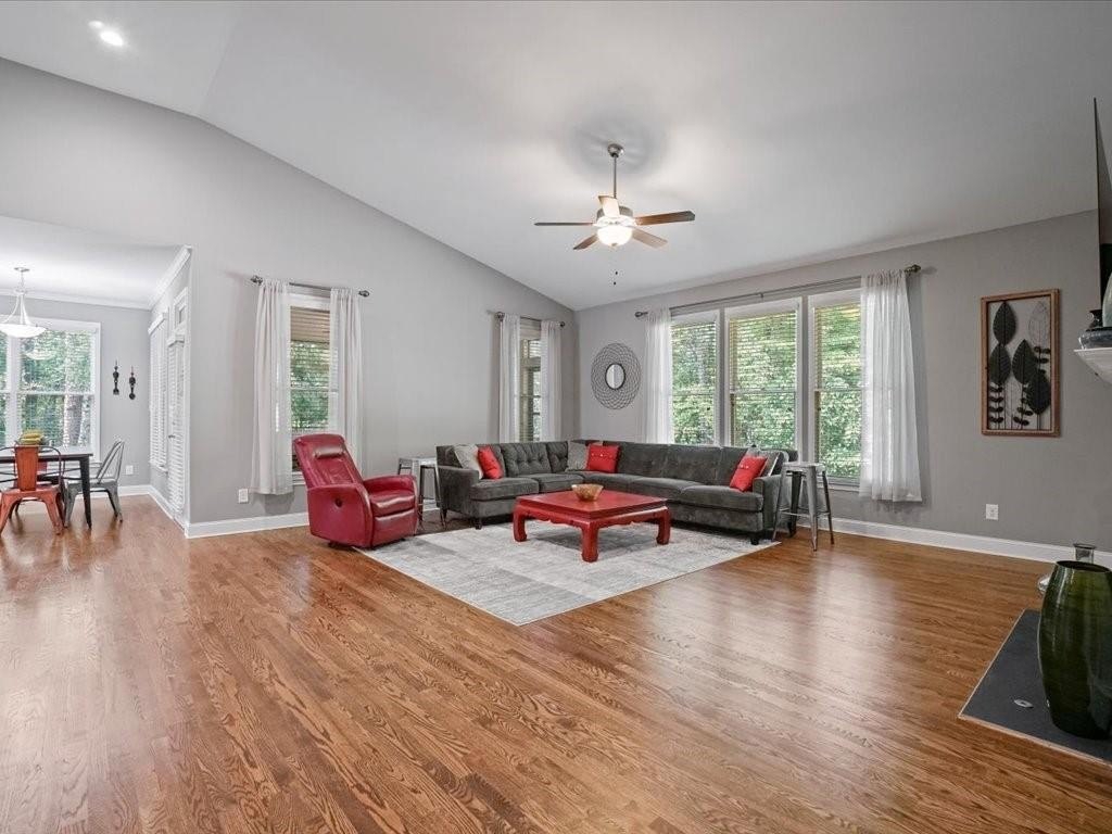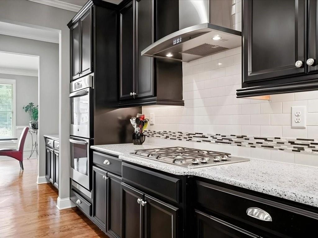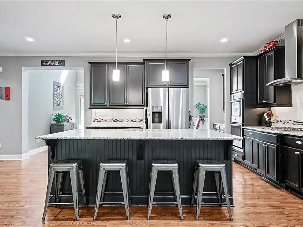 Welcome to 1415 Sutter’s Pond, a custom-crafted home that blends elegance, comfort, and rare privacy in one of West Cobb’s most sought-after communities. Set beside the neighborhood’s preserved greenspace and nature trail, it offers a lifestyle where mornings begin with sunlit interiors and evenings end outdoors, surrounded by trees and seasonal views of the pond. Curb appeal is undeniable with a blend of brick, premium fiber-reinforced cement siding installed in solid panels, and shaker accents, framed by a welcoming rocking-chair front porch. The seamless design enhances the timeless look while offering superior durability and low maintenance. Professional landscaping softens every angle — from blooming crepe myrtles and manicured beds in front to the lush tree line wrapping the property — giving the home both elegance and enduring strength from the very first glance. Inside, natural light spills across hardwood floors from the two-story foyer into the formal dining room and expansive main living area. From this vantage point, the upstairs catwalk with wrought iron balusters and elegant hand railing adds architectural detail and an open, airy feel. The kitchen anchors the home with an oversized island, granite countertops, abundant cabinetry, and double ovens. Expansive counter space and a breakfast bar make it as functional as it is beautiful, opening to a sunlit dining space that’s perfect for everyday meals or morning coffee. The living room is designed for both comfort and connection, with soaring ceilings, walls of windows, and custom built-ins framing the fireplace. It’s a true gathering space — filled with natural light by day and warmth by night — where everyday living and entertaining come together. The oversized main-level primary suite is a private sanctuary, framed by a trey ceiling, an abundance of windows offering natural lighting and wooded views. French doors lead to the ensuite, where a spa-like bath offers a deep soaking tub, a glass-enclosed shower with built-in bench, and dual vanities topped with marble. The walk-in closet connects directly to the laundry room, bringing both luxury and convenience to daily life. Upstairs, the elegant staircase leads to two bedrooms connected by a true Jack-and-Jill bath, each with its own vanity and walk-in closet. A third bedroom with trey ceilings enjoys the privacy of its own ensuite and vast walk-in closet. The bonus room — also set behind French doors — flexes easily as a media room, office, or potential fifth bedroom. The second laundry room completes the upstairs layout perfectly. Outdoor living feels like an extension of the home. The private screened porch invites coffee mornings and dinners al fresco. Framed by mature trees and seasonal views of Sutter’s Pond. Beyond the professionally added retaining wall — designed with drainage that carries water away from the home into the greenspace — are custom steps leading down the side of the property. From there, one of the community’s most treasured features awaits: the .7-mile walking trail around the pond, ensuring this side of the property will always remain private and wooded. The daylight, walk-out basement feels like a true extension of the home, accessed by matching hardwood stairs and railing rather than tucked behind a door. With tall ceilings, expansive windows, and a covered patio below, it’s a level ready to transform into anything you envision — from multigenerational living to an incredible entertainment space, or simply the dream layout you’ve always wanted. Sutter’s Pond is a conservation community, designed to preserve green space and provide natural amenities. Sidewalks, streetlights, and a community pool within walking distance, while top-rated Cobb County schools — zoned for Harrison High — complete the lifestyle. This is more than a house — it’s a home that captures the best of West Cobb living: elegance, privacy, convenience, and the ability to grow into the space for years to come.