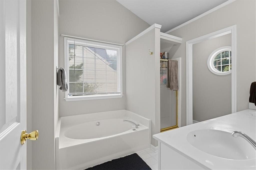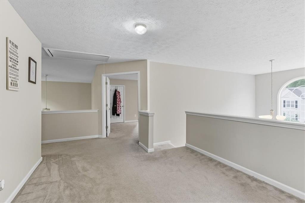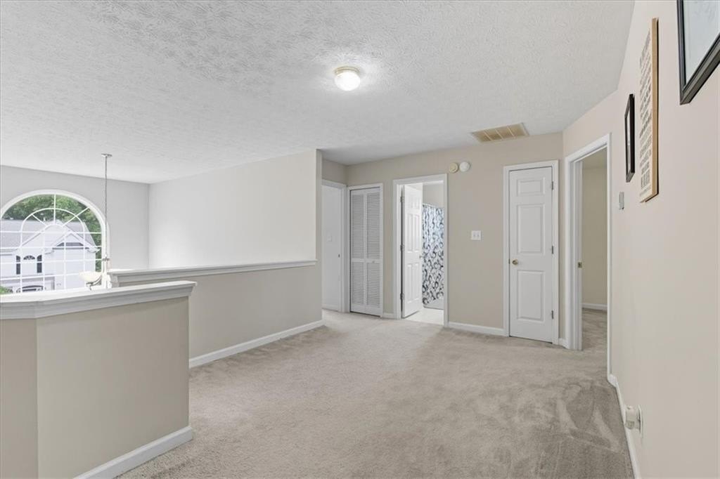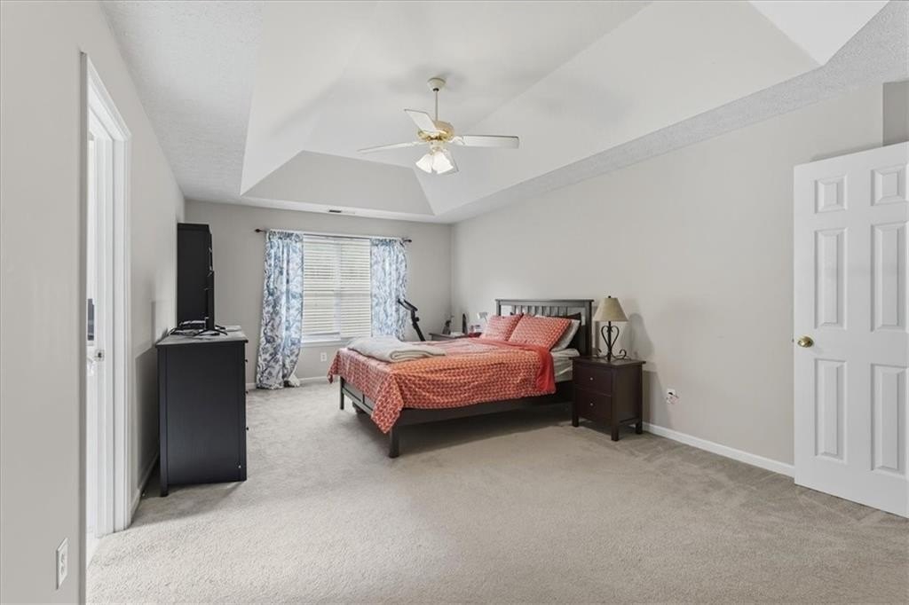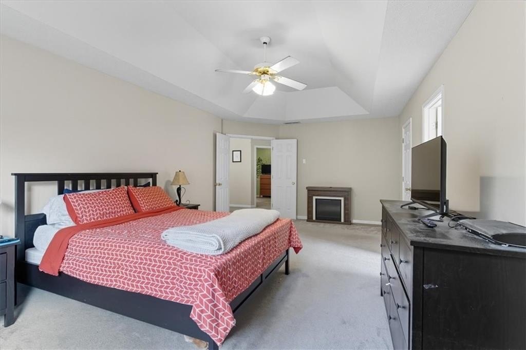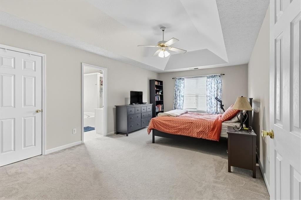 Upstairs, you’ll find the oversized primary suite with a tray ceiling and an en-suite bath featuring a soaking tub, separate shower, double vanities, and a walk-in closet. Three additional bedrooms share a full bath, offering ample space for family, guests, or flex use.