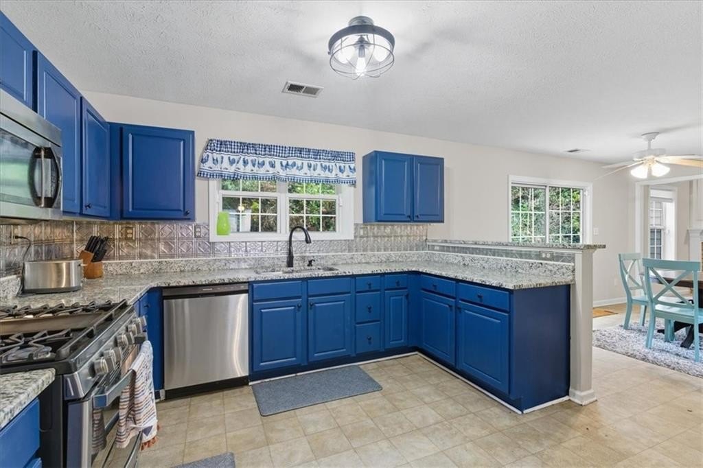 The heart of the home is the spacious kitchen, designed with granite countertops, abundant cabinetry, and a roomy layout that flows easily into the adjacent gathering areas. Just beyond, the two-story family room soars with natural light and connects seamlessly to the relaxing patio, perfect for morning coffee, weekend grilling, or entertaining under the stars. A main-level laundry/mud room adds everyday convenience and connects directly to the two-car garage, complete with bonus space for storage.