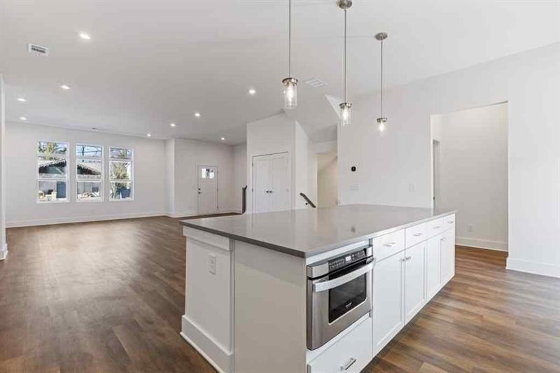 Explore the charm of the Buxton plan at Nolyn Pointe by Toll Brothers, nestled in the lively Chosewood Park area of Atlanta. This exquisite 2,760 sq ft residence combines four bedrooms and 3.5 bathrooms with modern elegance and functional living. The inviting second-floor foyer of the Buxton plan flows seamlessly into the dining and great rooms, framed by views of the appealing outdoor living area and its covered patio. A chef's dream, the kitchen boasts a large central island with breakfast bar, extensive counter and cabinet space, and a roomy walk-in pantry, positioned conveniently at the back of the first floor. Privacy is paramount in the luxurious primary bedroom suite on the third floor, featuring a private balcony, expansive walk-in closet, and a spa-like bathroom with dual-sink vanity, deluxe seated shower, soaking tub, and private water closet. Secondary bedrooms include generous closets and share a hall bath, while an additional first-floor bedroom suite offers a walk-in closet and private bath. Additional comforts include a cozy second-floor powder room, third-floor laundry, and plentiful storage. Nolyn Pointe ensures a life of ease and minimal upkeep, with yard care included and close proximity to the BeltLine Southside Trail. This community strikes a perfect balance between urban energy and suburban serenity, offering a peaceful yet culturally rich living environment in Atlanta. Discover the ultimate in luxury and convenience at Nolyn Pointe. Homes are pre-wired for EV Chargers.