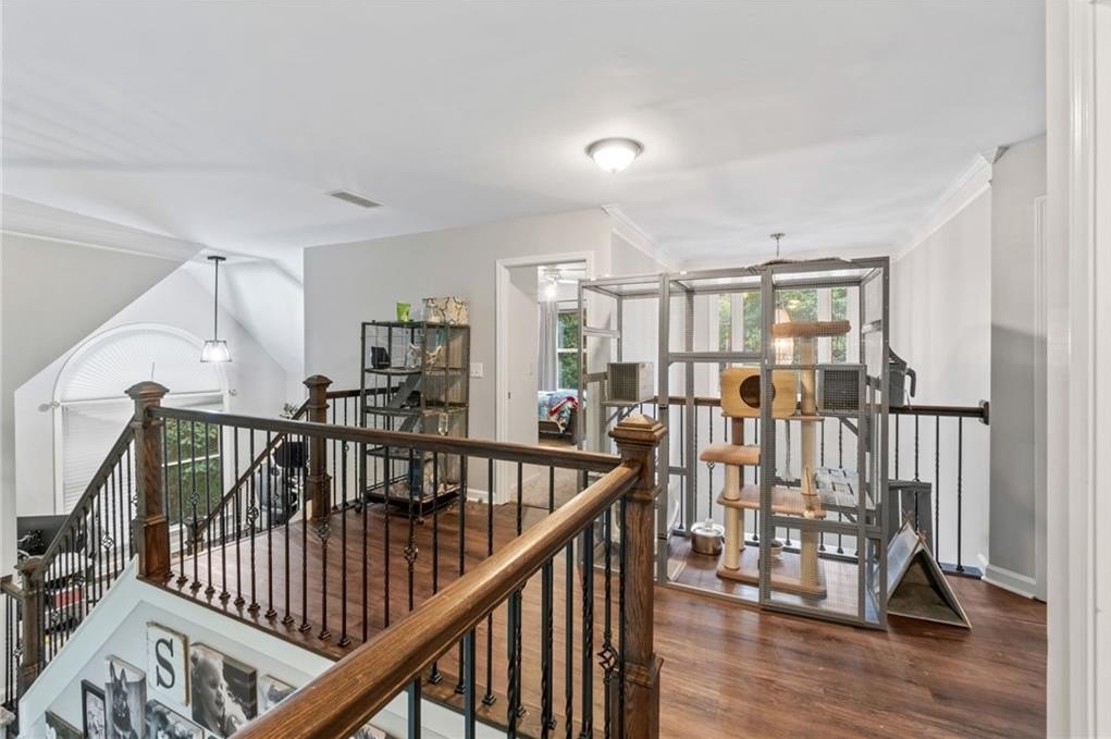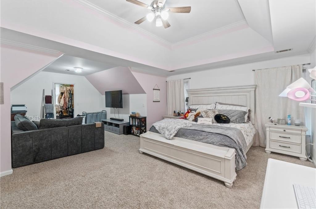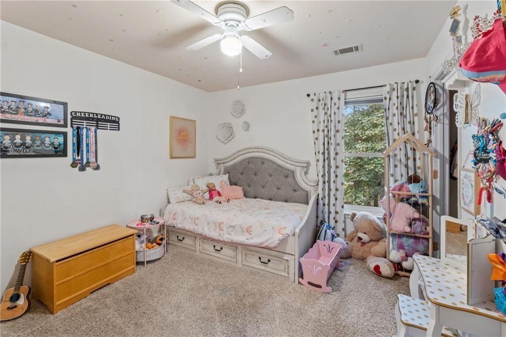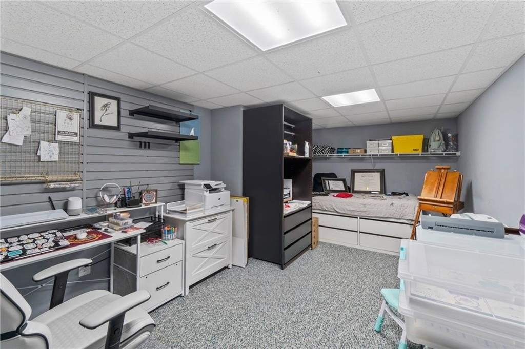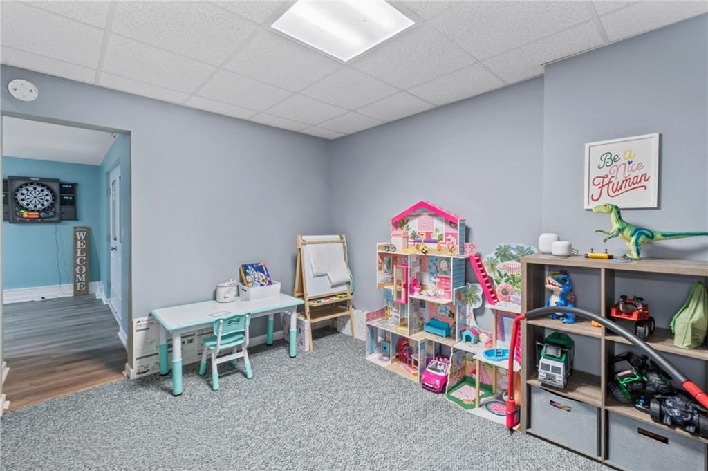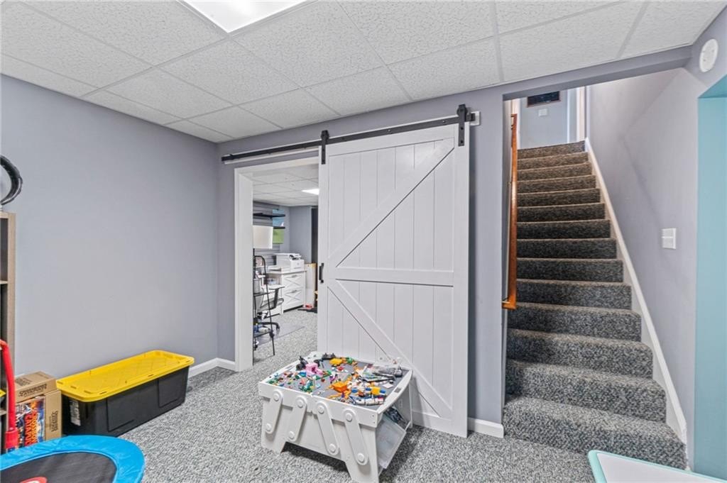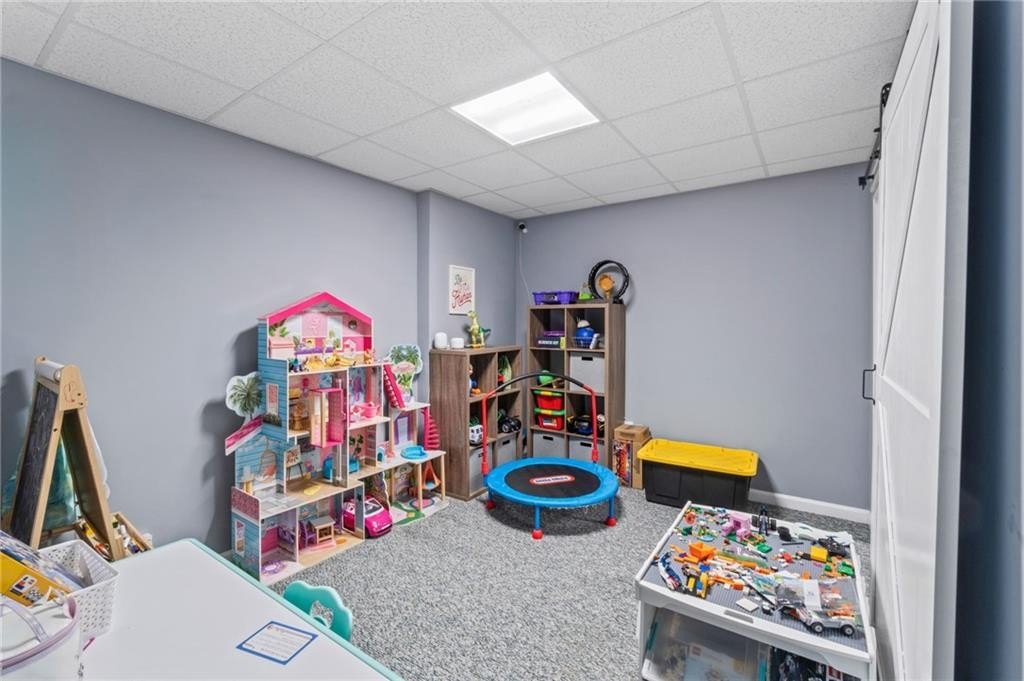 Welcome to your private retreat! Nestled in a neighborhood where homes are thoughtfully spread apart, this property sits on a spacious lot with a long driveway that leads to a convenient parking pad and a 3-car garage with an electric car charging station. As you step through the front door, a versatile flex space greets you to the right of the stairs—currently enjoyed as a cozy kids’ reading and play area. Straight ahead, you’ll find a half bath, followed by a breathtaking two-story living room filled with natural light and seamlessly connected to the open kitchen. The kitchen offers an abundance of counter space, cabinetry, and a large pantry, with a charming breakfast nook nearby. Between the living room and kitchen, yet in its own dedicated space, is the formal dining room—perfect for family gatherings or entertaining guests. From the kitchen, you’ll also find easy access to the laundry room and the 4-season screened-in porch. Just outside, a grilling deck overlooks the backyard, creating an ideal space for year-round indoor-outdoor living. Upstairs, a unique landing area is currently designed as a gaming nook, leading to a catwalk that overlooks the living room on the right and a bedroom on the left. The upstairs layout features another two spacious secondary bedrooms with a shared full bath, plus a massive master suite with a walk-in closet and a beautifully updated spa-like bathroom. You’ll love the split vanities, mirrors with recessed cabinets, oversized tile shower, and luxurious soaking tub. The finished basement is packed with possibilities! It opens with a large kids’ play space and features a hidden office/flex room that could double as a theater, guest suite, or creative workspace. On the other side, you’ll find a game zone complete with air hockey, arcade games, and a mini basketball hoop. At the back, three doors reveal two oversized storage rooms and a private bedroom with its own window and closet. This home offers room to spread out, gather, and enjoy—inside and out. It’s the perfect blend of space, function, and style.