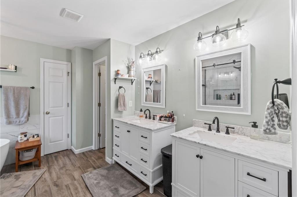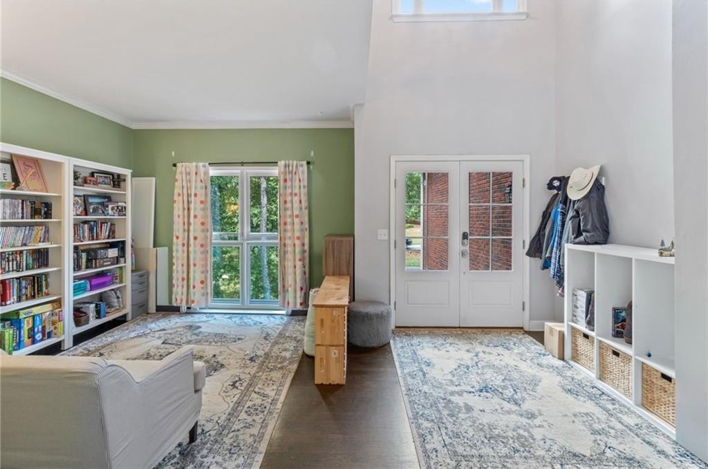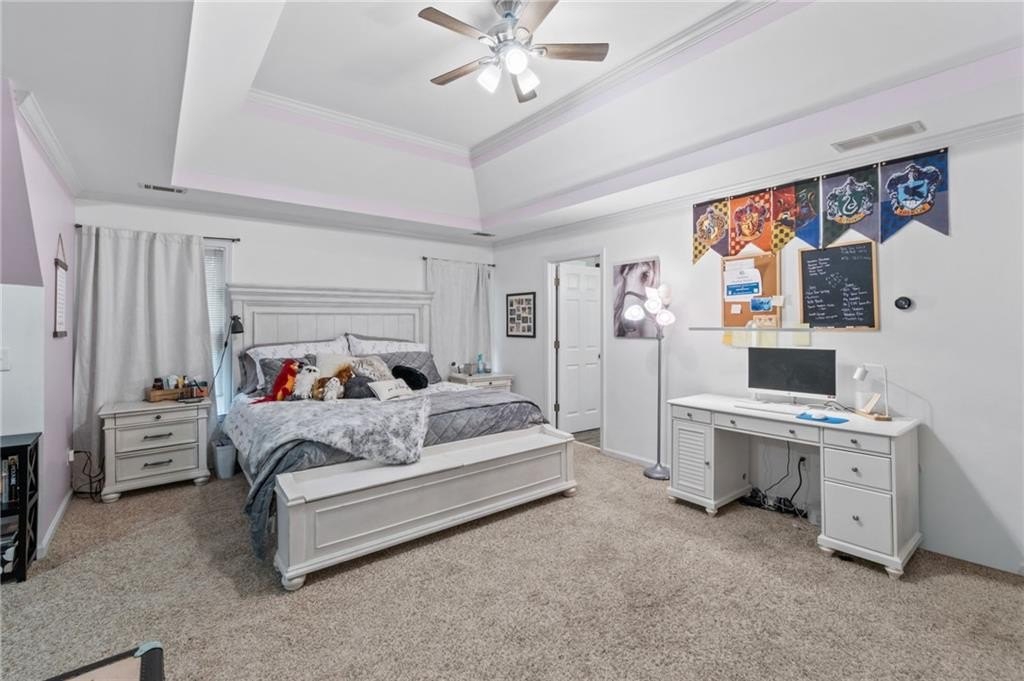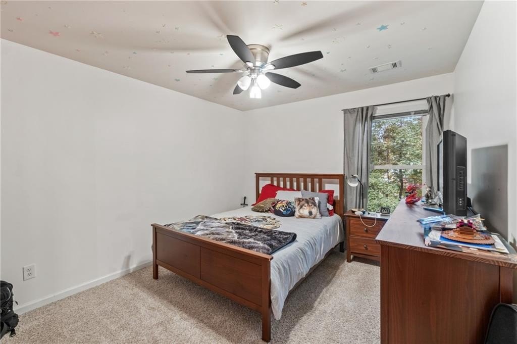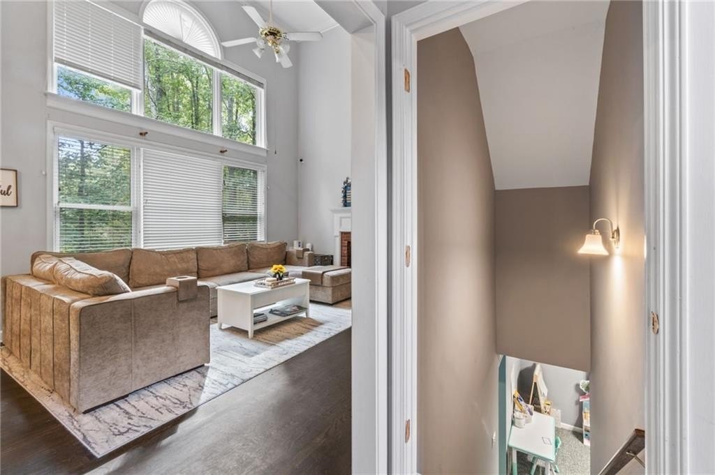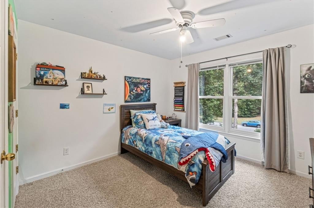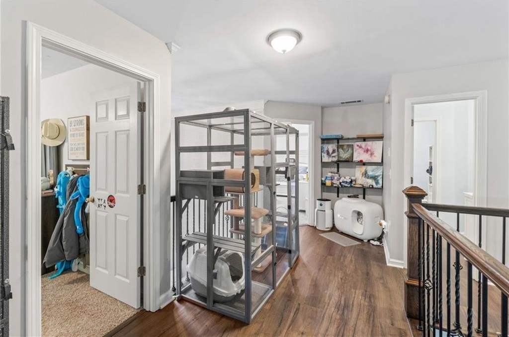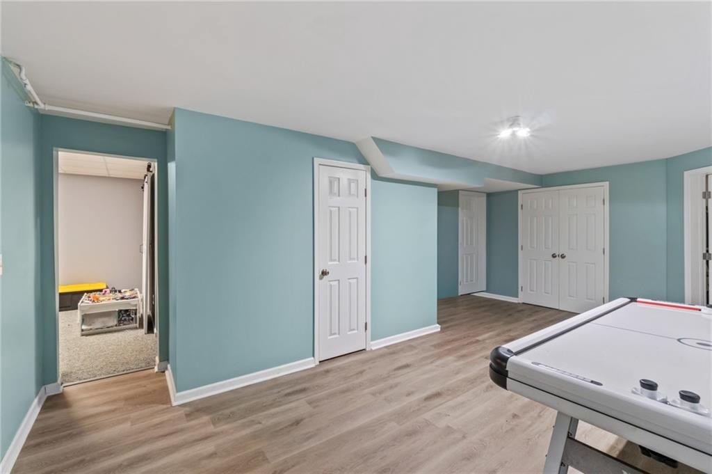 Welcome to your private retreat! Nestled in a neighborhood where homes are thoughtfully spread apart, this property sits on a spacious lot with a long driveway that leads to a convenient parking pad and a 3-car garage with an electric car charging station. As you step through the front door, a versatile flex space greets you to the right of the stairs—currently enjoyed as a cozy kids’ reading and play area. Straight ahead, you’ll find a half bath, followed by a breathtaking two-story living room filled with natural light and seamlessly connected to the open kitchen. The kitchen offers an abundance of counter space, cabinetry, and a large pantry, with a charming breakfast nook nearby. Between the living room and kitchen, yet in its own dedicated space, is the formal dining room—perfect for family gatherings or entertaining guests. From the kitchen, you’ll also find easy access to the laundry room and the 4-season screened-in porch. Just outside, a grilling deck overlooks the backyard, creating an ideal space for year-round indoor-outdoor living. Upstairs, a unique landing area is currently designed as a gaming nook, leading to a catwalk that overlooks the living room on the right and a bedroom on the left. The upstairs layout features another two spacious secondary bedrooms with a shared full bath, plus a massive master suite with a walk-in closet and a beautifully updated spa-like bathroom. You’ll love the split vanities, mirrors with recessed cabinets, oversized tile shower, and luxurious soaking tub. The finished basement is packed with possibilities! It opens with a large kids’ play space and features a hidden office/flex room that could double as a theater, guest suite, or creative workspace. On the other side, you’ll find a game zone complete with air hockey, arcade games, and a mini basketball hoop. At the back, three doors reveal two oversized storage rooms and a private bedroom with its own window and closet. This home offers room to spread out, gather, and enjoy—inside and out. It’s the perfect blend of space, function, and style.