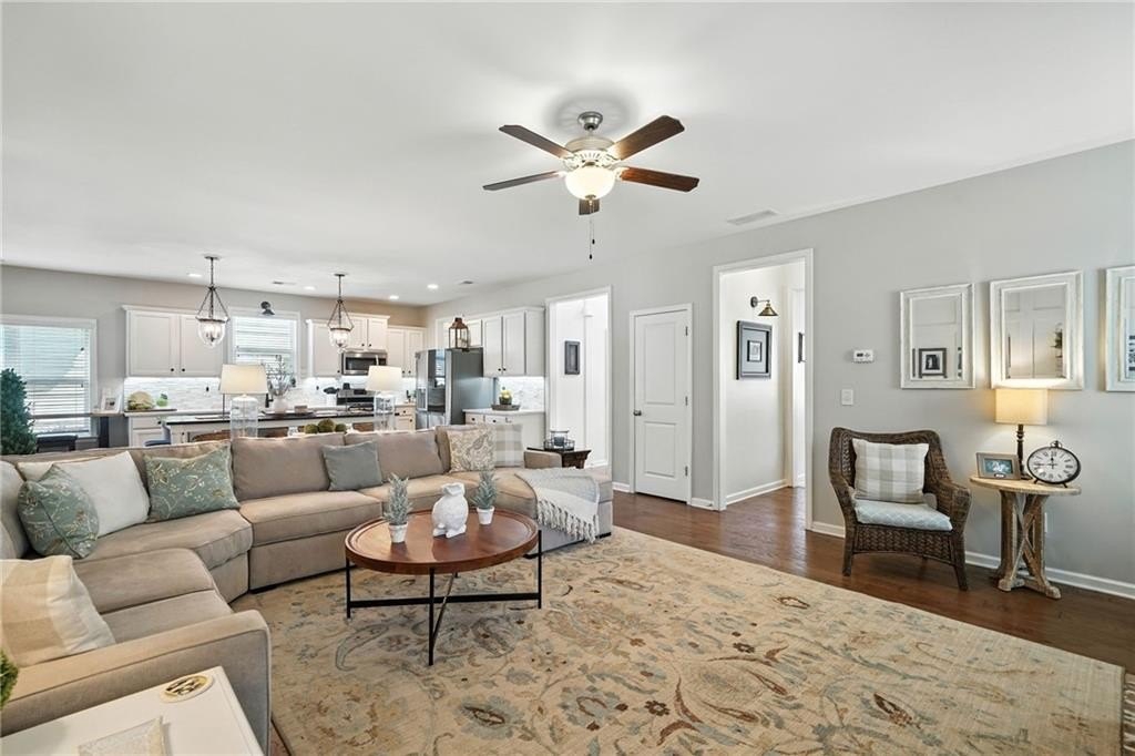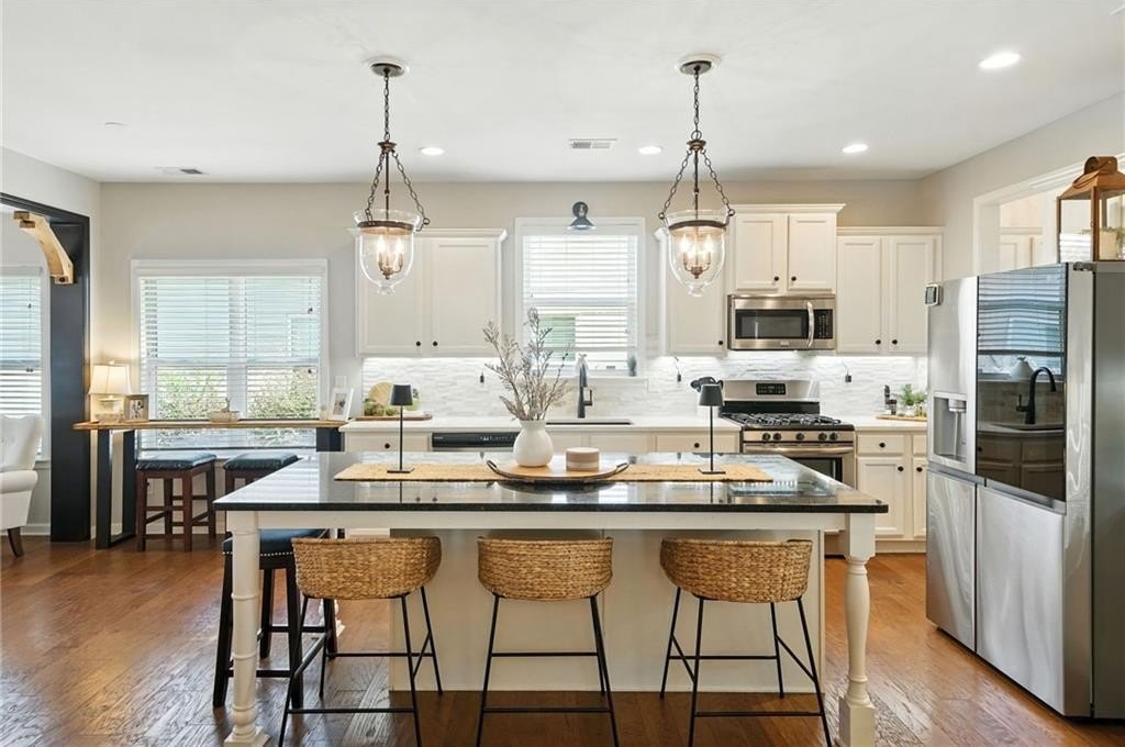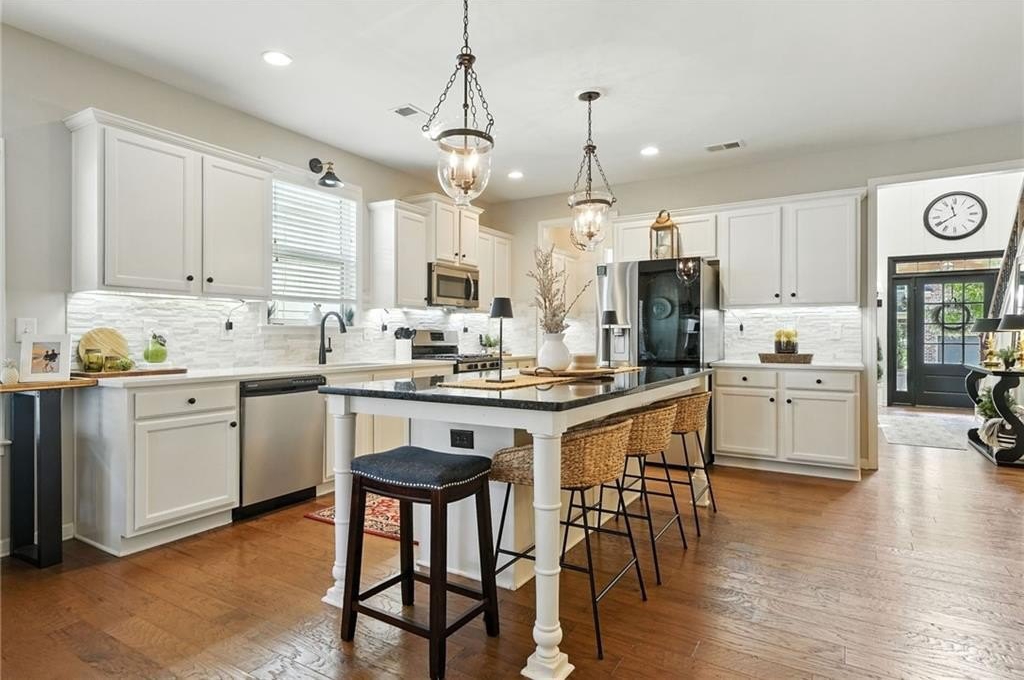 This is the one you have been waiting for. UPGRADES GALORE - inside and out! ALL of the big cost upgrades have been completed. Nothing compares to this beautifully maintained 4-bedroom, 3.5-bath home located on a quiet street in the highly sought after community of Harmony on the Lakes. This is one of the largest homes on the south side of this community at 3,300 sq ft above ground level. This home has timeless charm and many upgrades! From the moment you step inside, you’ll be captivated by the abundance of natural light, rich hardwood floors, and stylish board and batten accent walls throughout the home. The two story foyer has beautiful accent walls and a grand staircase. The open floor plan flows effortlessly from room to room. The spacious family room is big and bright and has one of the two cozy fireplaces. The upgraded kitchen features beautiful quartz countertops, white stacked stone backsplash and white cabinets. The focus of the kitchen is the large island with beautiful glass pendent lights and ample seating with deep cabinets in the island with lots of storage. A spacious and well organized walk-in pantry has plenty of room for all your dry goods. A butler’s pantry with upper and lower cabinets has a quartz countertop that leads to the separate dining room that is perfect for hosting all your gatherings or for everyday dining. Enjoy morning coffee in the keeping room next to the second fireplace on the first floor. Need even more quiet space to work or relax? There is an additional room ideal as a sitting room or office that offers the additional quiet space. Upstairs there is the perfect retreat in the oversized master suite with a relaxing sitting area, two oversized walk-in closets - his and hers that will spoil you for space and privacy. The master bathroom has so much room with two sinks, a huge, tiled walk in shower and a separate soaking tub. One of the secondary bedrooms features its own private bath. Two additional bedrooms share a nice Jack and Jill full bath with separate sinks. In between is a low-step, fully tiled shower. Both these bedrooms offer a nice walk-in closet. Step through the French doors and into your back yard oasis. Entertain or relax on the back deck with a covered area, fan and an an uncovered sun deck area. Enjoy both days and nights with the separate outdoor kitchen area. This raised-deck and outdoor kitchen features accent lighting. In the summer take advantage of the ceiling fan to play darts or watching your favorite sporting event. In the cooler weather, install the heater and this becomes the ideal space for entertaining year-round! Brand new, 30 year architectural shingle roof installed September of 2025. The two HVAC systems were replaced in 2023. Upgraded indoor kitchen in 2023. Exterior kitchen completed in 2024. This home truly has it all—character, functionality, and all the big cost upgrades completed—nestled in a community that has something for everyone. Don’t miss your opportunity to own this exceptional property!