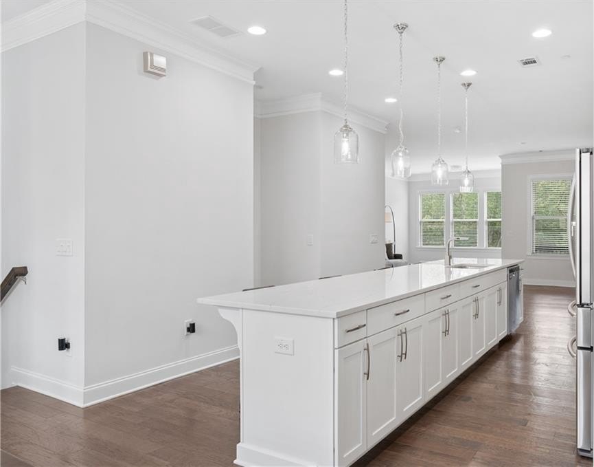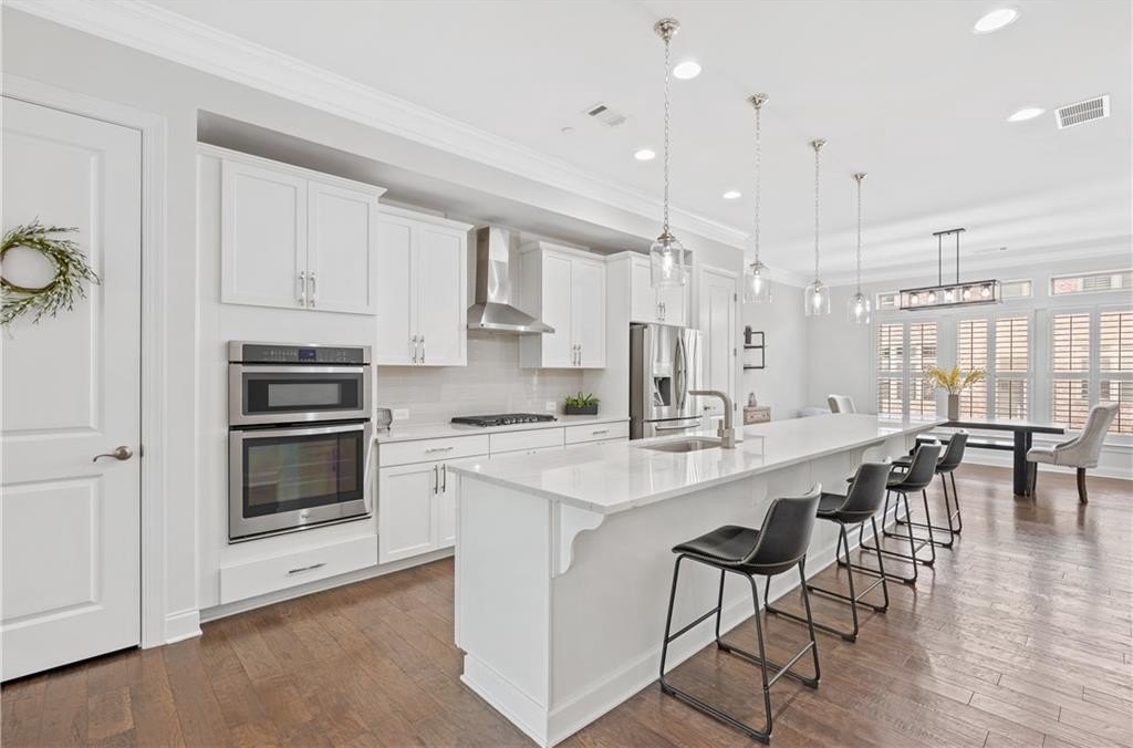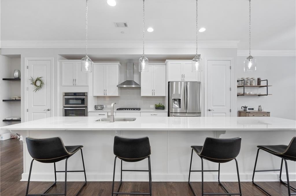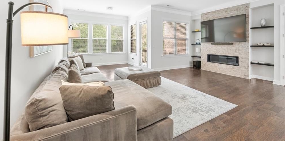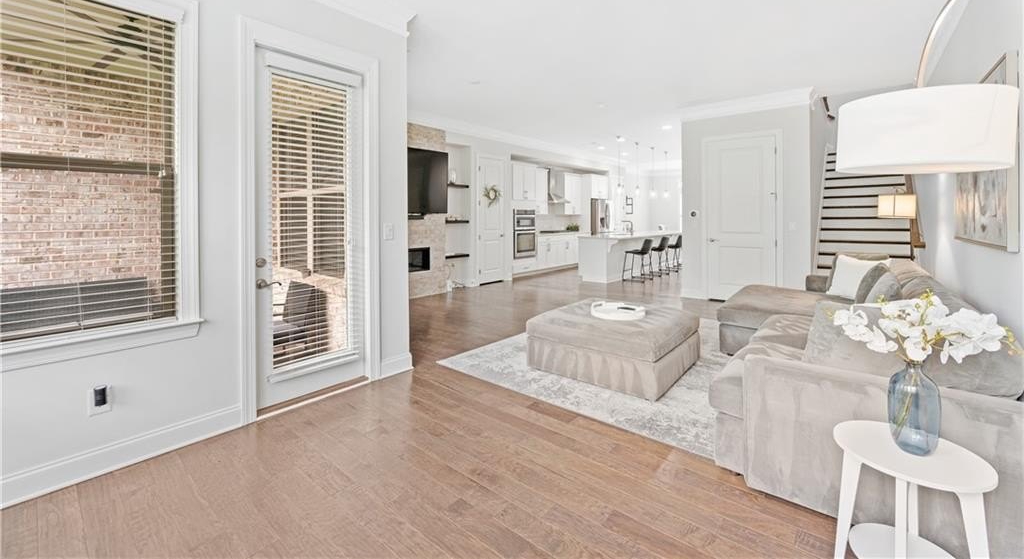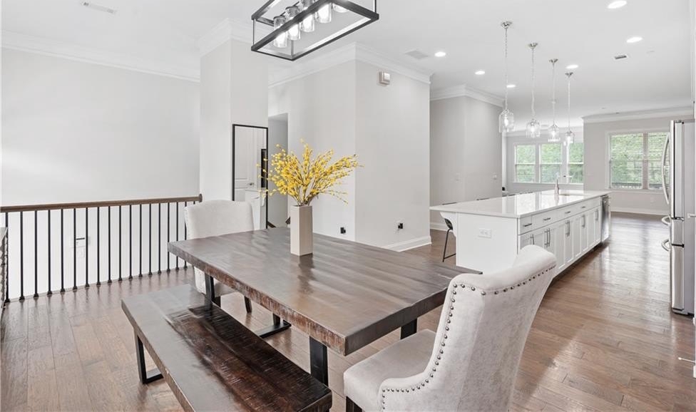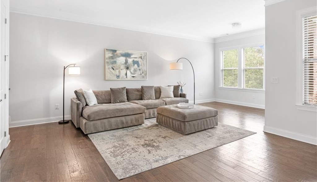 Welcome to this one-of-a-kind, four-story townhome featuring 4 bedrooms and 4 full bathrooms, ideally located in a private community just minutes away from everything Perimeter Center has to offer: Top-rated Dining, Shopping, and Entertainment! This expansive home offers an open floor plan with soaring ceilings, hardwood floors throughout, and elegant crown molding in every room. The updated kitchen features modern finishes and custom pantry shelving, flowing seamlessly into a spacious living area with a custom built-in fireplace. Three private outdoor spaces offer quiet views overlooking a peaceful nature preserve.