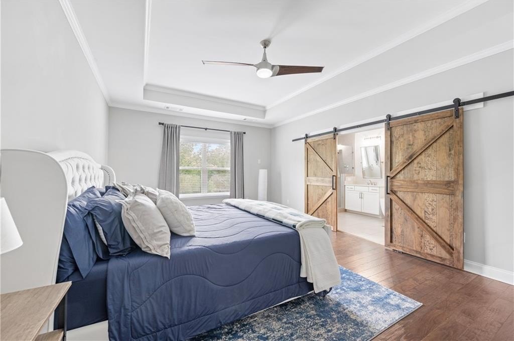 The primary suite is a true retreat, complete with custom barn wood doors, a rainfall shower with Jolie filtered shower head, upgraded vanity lighting and mirrors, and a walk-in closet that has been fully custom designed. Walk-In Level Suite is complete with it's own Full Bath, Living/Work Space and an Outdoor Deck. Perfect for Guests or In-Laws. On the lower level, a private gym space features professional-grade flooring, making it easy to work out from the comfort of home. Conveniently located just OTP that offers easy access to MARTA’s North Springs station, GA 400, and 285. Combining location, lifestyle, and luxury, this home is truly move-in ready and designed for modern living.