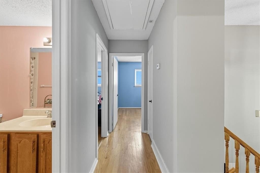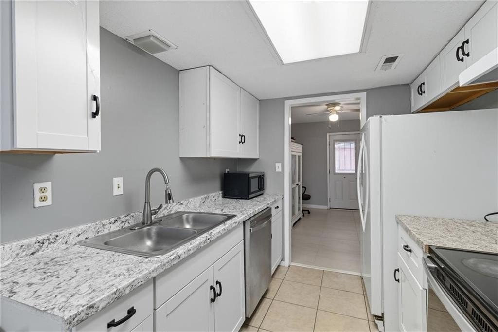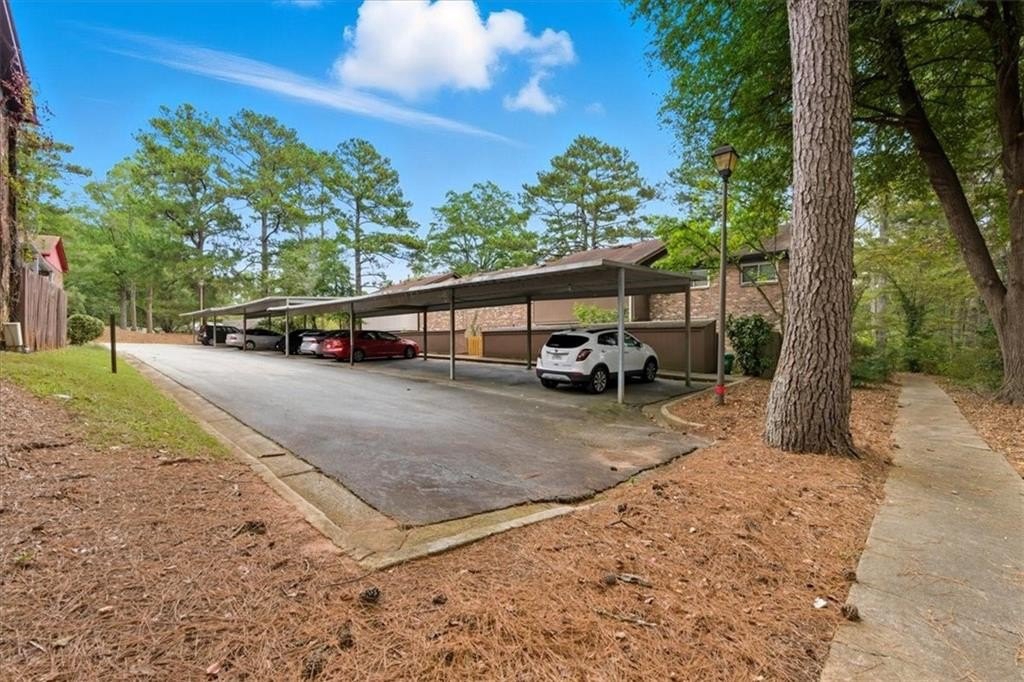 Welcome to 713 Garden View in the desirable Garden Walk community! This all-brick townhome offers 3 bedrooms, 2.5 bathrooms, and a private fenced patio—perfect for hosting friends and family or relaxing outdoors. The main level features a flowing floor plan with a welcoming foyer, spacious living room, and dining/breakfast area that opens to the kitchen. The kitchen has been beautifully updated with NEW white cabinetry, modern countertops, NEW flooring on the main level, and a pantry for additional storage. A convenient powder/laundry room, coat closet, and extra storage closet complete the first floor. Upstairs, the primary suite boasts a generous walk-in closet and private en-suite bath. Two additional bedrooms share a full hall bath, providing separation from the primary suite. Step outside to the fenced back patio with a built-in storage shed and gated access to the reserved 2-car covered carport. Guest parking is available to the side. Garden Walk is ideally located near shopping, dining, and schools, with easy access to Stone Mountain Village, Stone Mountain Park, Decatur, Emory, and Downtown Atlanta. The HOA includes water, basic cable, pool, clubhouse, trash, landscaping, and termite/pest control.