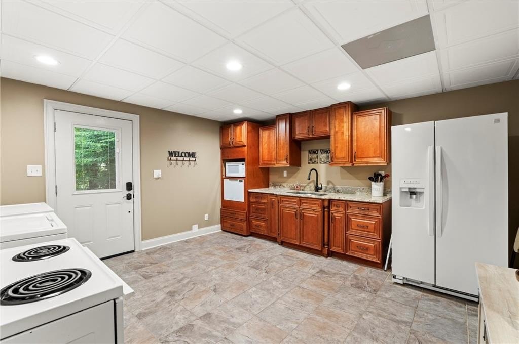 Downstairs, the fully renovated basement level feels like its own private retreat. With a separate entrance, a second full kitchen, its own laundry room, two bedrooms, and a full bath, this space is ideal for hosting extended family, welcoming guests, or even creating a private rental suite. Whether it’s morning coffee on the patio, movie nights in the lower level, or weekend dinners with loved ones, every corner of this home invites you to live with comfort and flexibility.