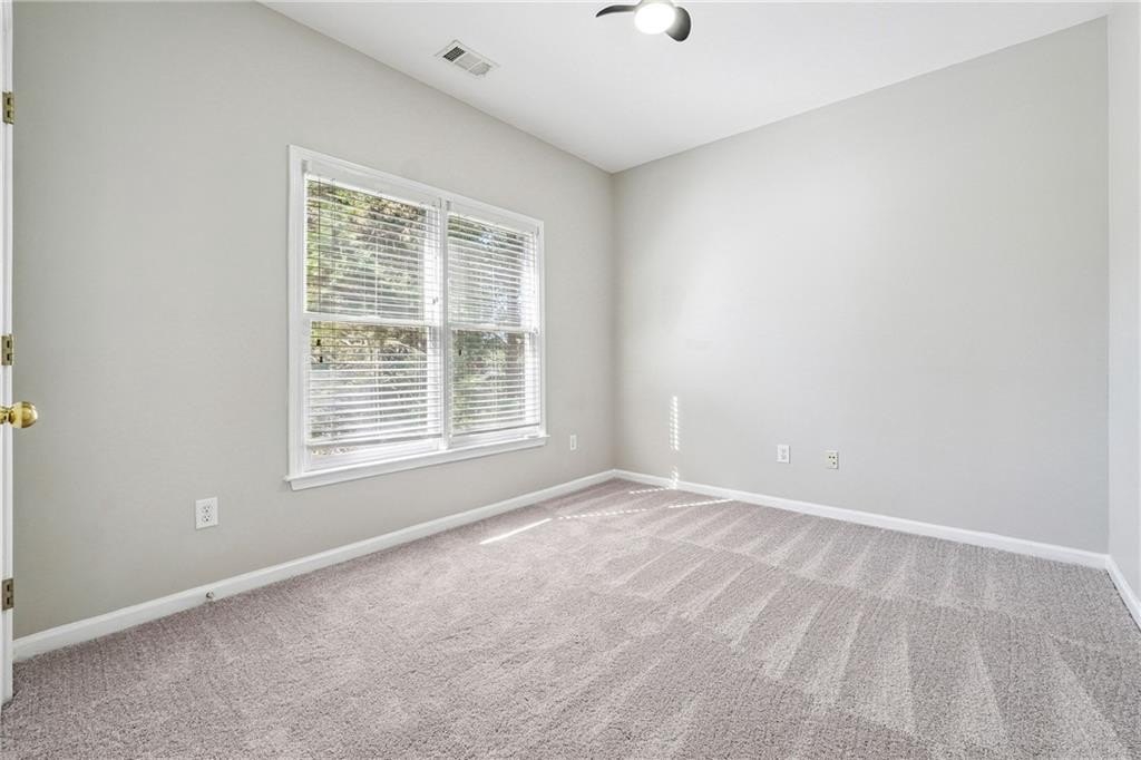 North facing. New carpet. Freshly painted. No rental restrictions. ASSUMABLE 2.85% FHA interest rate. 3 level townhouse with 3 bedrooms and 2.5 bathrooms. 2 car garage with a media room/ office/ den on the main level. Private back yard. 2nd level features a well lit Family Room with a Fireplace, Built-In Bookshelves. Formal Dining Room w/Custom Tile Flooring with French Doors Leading out to the NEW Deck. The kitchen features Maple Cabinets, Granite Counter Tops w/Separate Island, Double Oven, Built-In Microwave, Refrigerator, breakfast bar. Hardwood Flooring. The 3rd level offers a Spacious Master with Double Trey Ceilings & Walk-In Closet. Large Master Bath, Tub Double Vanity & Separate Shower. 2 secondary bedrooms and a shared bathroom make it perfect for a cozy living. Centrally located off Old Alabama and Jones Bridge Rd. Steps from restaurants, shopping and trails at the Autry Mill Nature Preserve. Excellent Johns Creek school district - Dolvin, Autry Mill and Johns Creek High.