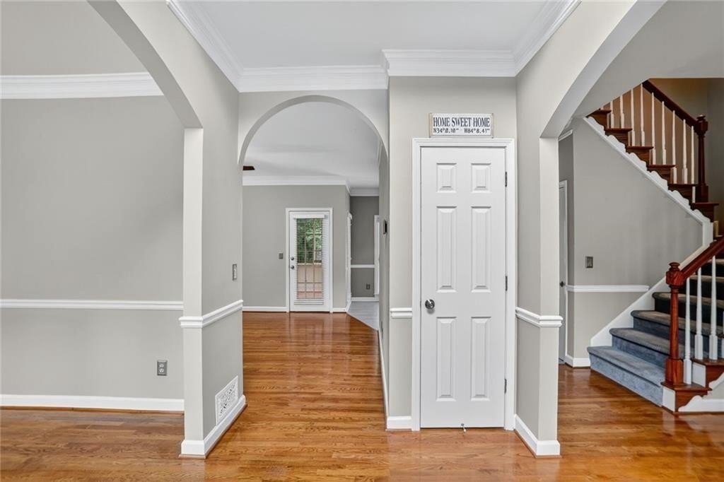 FANTASTIC Location & FANTASTIC Opportunity! Located in the highly sought-after Bridlewood neighborhood of Duluth and just minutes from Historic Downtown Duluth, this stunning home blends timeless design with modern upgrades. Step inside through the beautiful wrought iron front door and be greeted by gleaming hardwoods, abundant natural light, and unique architectural details that set this home apart. The main level features a spacious family room that flows seamlessly into the kitchen & dining areas. Just off the family room, you’ll enjoy a screened-in porch and an extended, Trex deck—perfect for outdoor entertaining or peaceful mornings. The kitchen offers ample cabinetry, a breakfast area with views of the backyard & deck, and is located conveniently to a large laundry room with additional storage. A spacious half bath sits centrally in the home for everyday convenience.