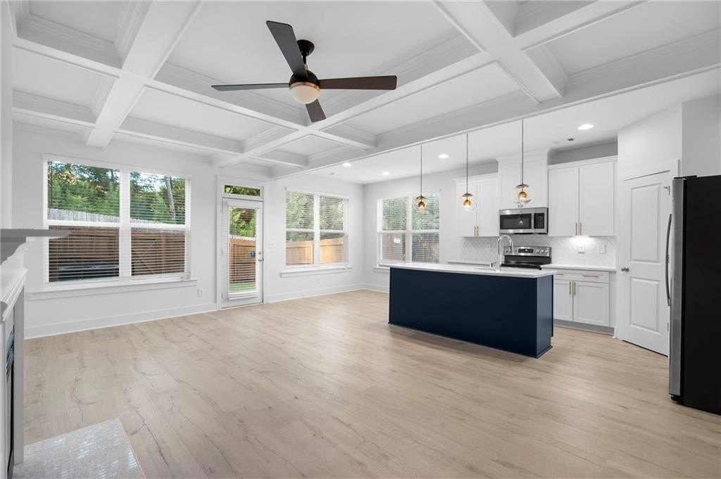 FORMER MODEL HOUSE Step into luxury with this immaculate townhome for rent, meticulously designed to captivate. Revel in abundant natural light flowing through this 3-bedroom, 2.5-bathroom haven, boasting a vast loft on the second floor, ideal for a secondary living space, home office, or whatever your heart desires. Your convenience is prioritized with a 2-car garage and an expansive driveway accommodating two additional vehicles. The heart of the home resides on the main level, where an open concept floor plan seamlessly connects the kitchen, adorned with sleek granite countertops, pristine white cabinets, and stainless steel appliances, including a side-by-side refrigerator. Hardwood flooring graces the main level, while plush carpeting enhances the upper floors for comfort and elegance. Retreat to the master suite, where relaxation awaits in the lavish master bath featuring a separate tub and shower, double vanity, and a generously sized walk-in closet. Two additional spacious bedrooms on the upper level ensure ample space for all. Outside, a fully fenced yard beckons pet owners and offers a private sanctuary. The community's HOA meticulously maintains the lawn, granting you more time to enjoy your surroundings. Nestled in the vibrant community of Lithonia, enjoy proximity to shopping, grocery stores, and easy access to I-20. Situated just off Covington Hwy, this opportunity is not to be missed! Take a virtual tour and envision yourself living in this unparalleled blend of comfort and style.