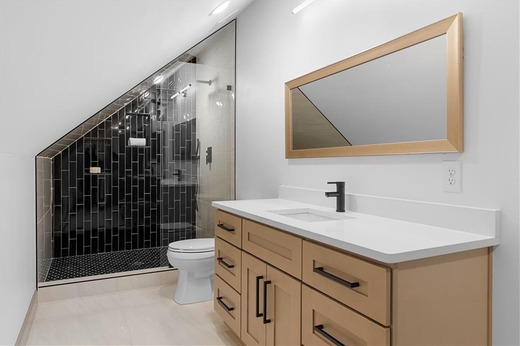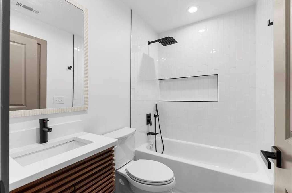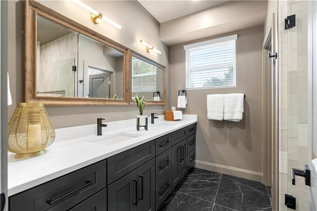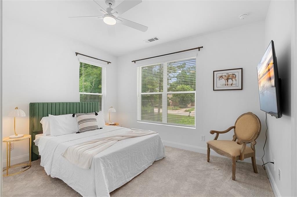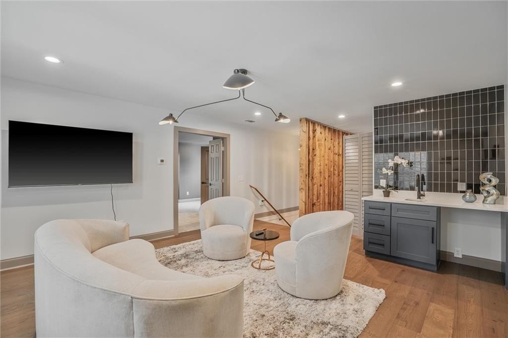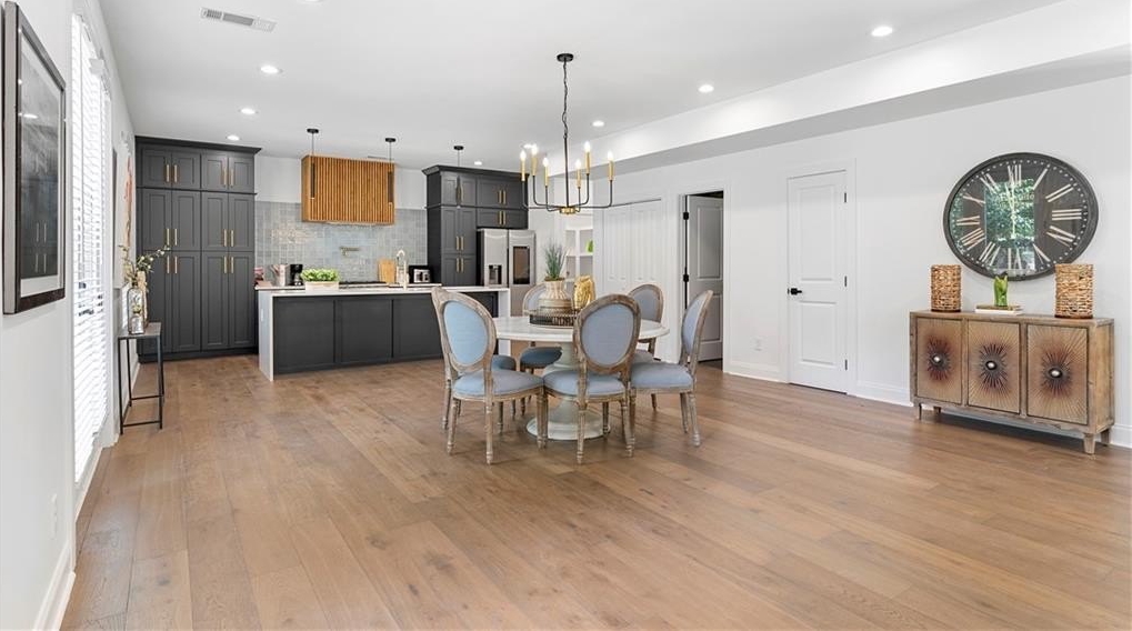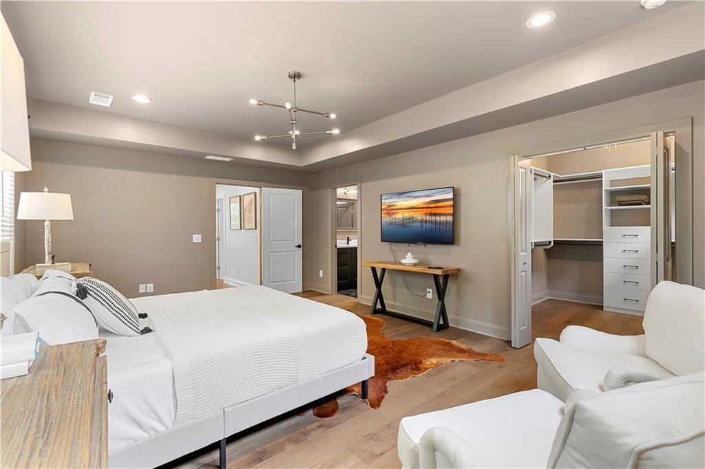 The main level features rich hardwood flooring, soaring ceilings, wide staircase and sun-filled living spaces that flow seamlessly for both everyday living and entertaining. The chef’s kitchen is equipped with professional-grade stainless steel appliances, an LCD side-by-side refrigerator, quartz countertops, a designer tile backsplash, an oversized waterfall island with built-in microwave, a custom vent hood, and a pot filler above the cooktop. A stylish wet bar with wine fridge (to be installed before closing) elevates the home’s entertaining appeal. Upstairs, the oversized primary suite includes a massive custom walk-in closet and a spa-inspired bathroom with floor-to-ceiling tile, dual quartz vanities, a soaking tub, and a large glass-enclosed shower. Three additional bedrooms with private full baths ensure comfort and privacy for guests or family, while the large laundry room with cabinetry and a built-in doggy shower adds convenience. The third level provides exceptional flexibility for multi-generational living, guest suites, or work-from-home setups, featuring two additional bedrooms, two full bathrooms, a secondary living space, and a wet bar. Buyers will also enjoy the opportunity to select custom paint colors for the pantry and third floor, adding a personalized designer touch. Outdoor living is equally impressive with a professionally landscaped yard, a wooden privacy fence, and a newly installed electric front gate for enhanced security. The driveway includes a convenient turn-around, ideal for urban living. With 6 bedrooms, 6 baths, multiple living areas, luxury upgrades, and an unbeatable location, this home stands out as one of East Lake Terrace’s most desirable properties.